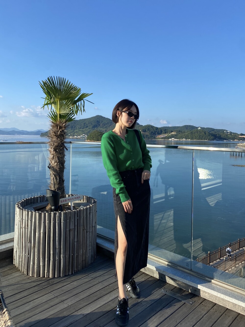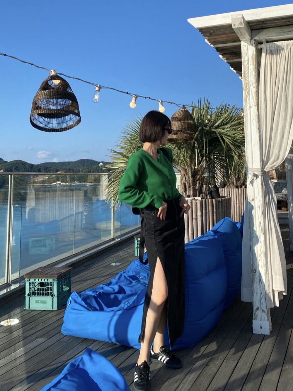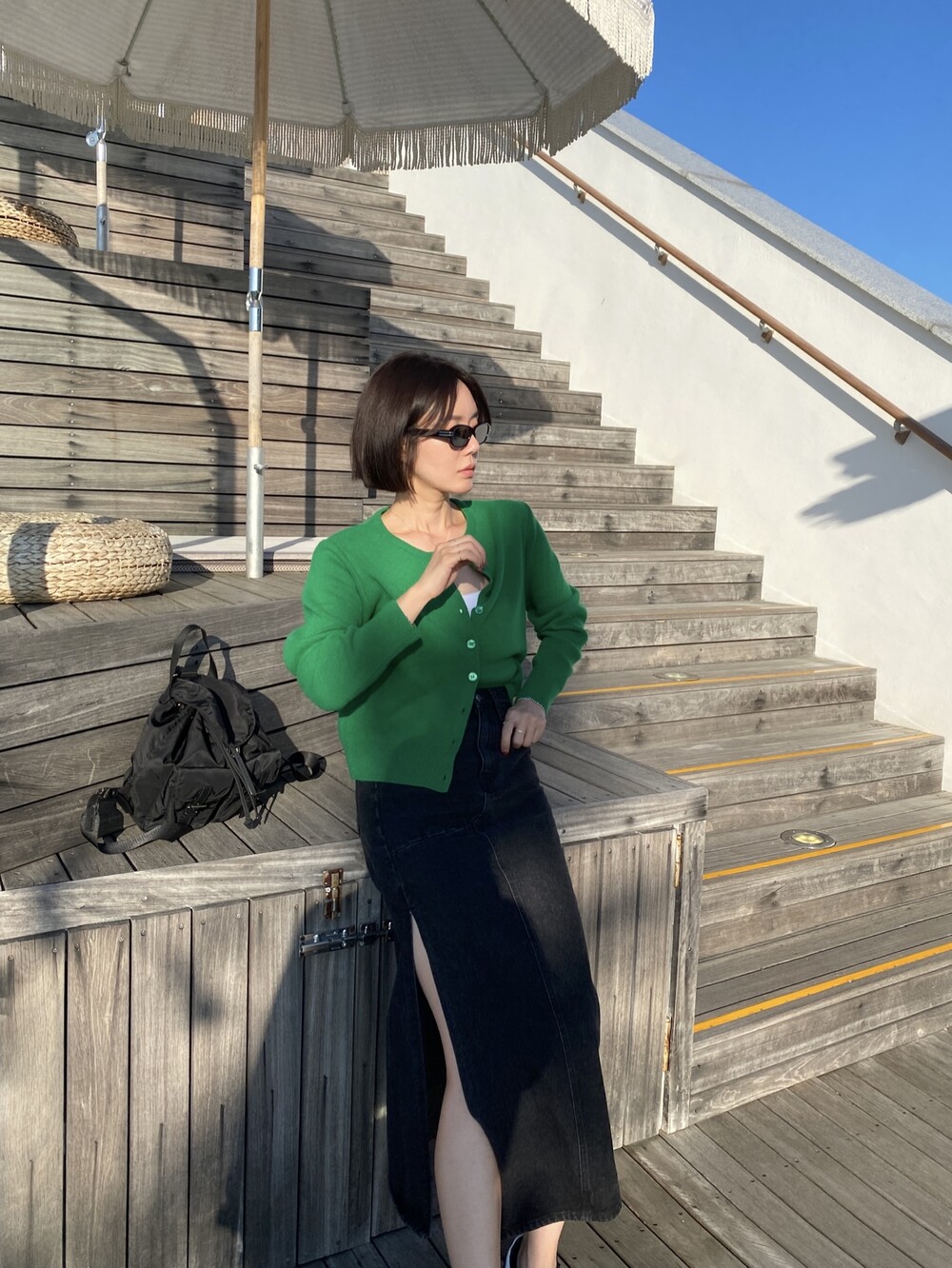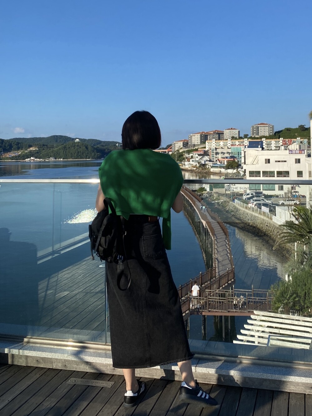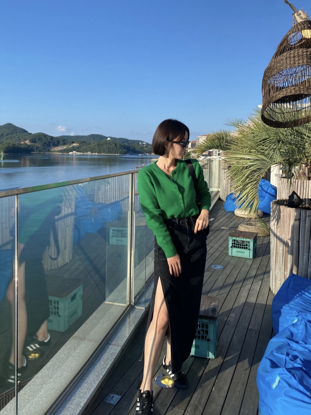 멋스럽게 떨어지는 흑청 롱스커트예요