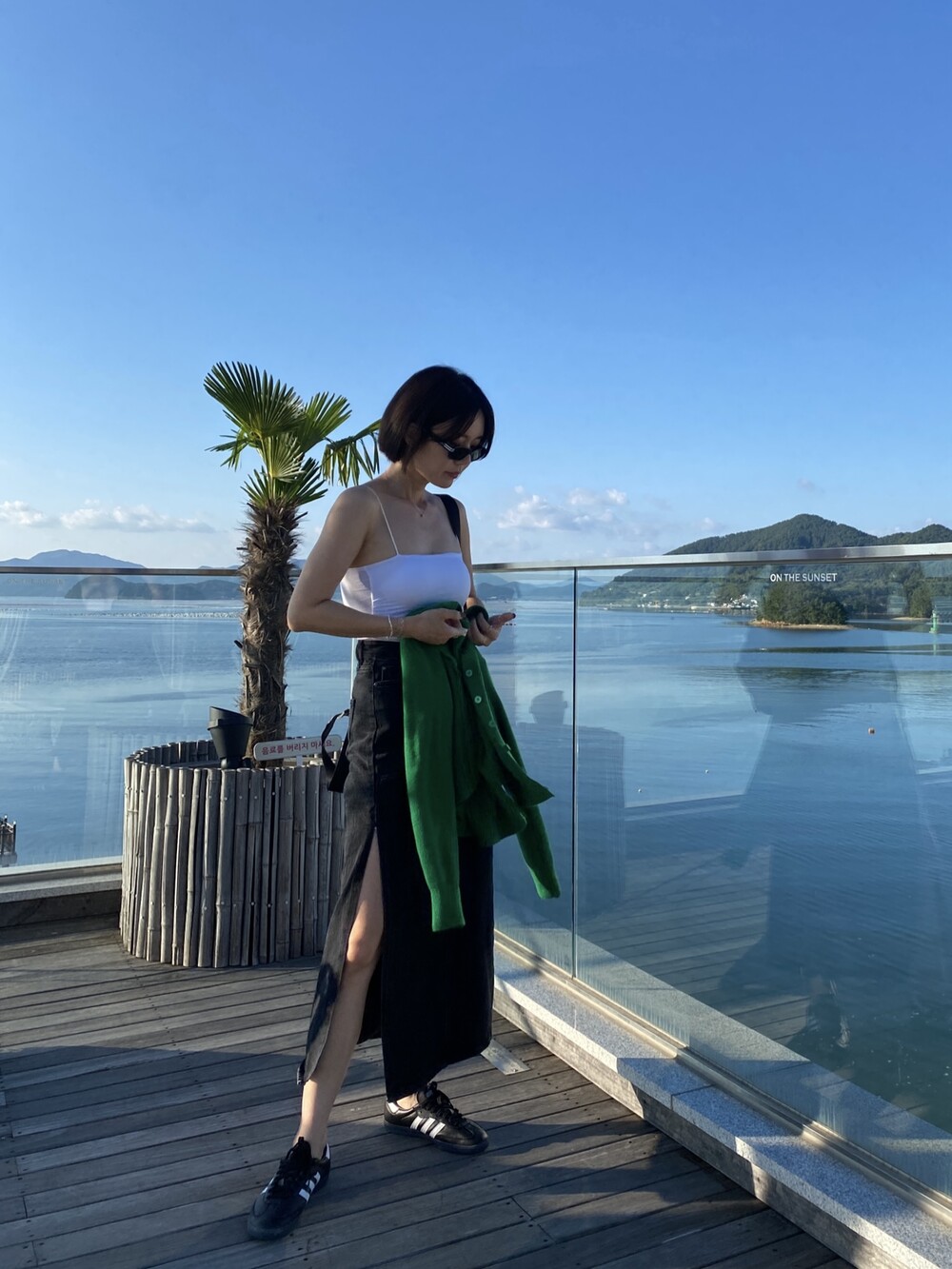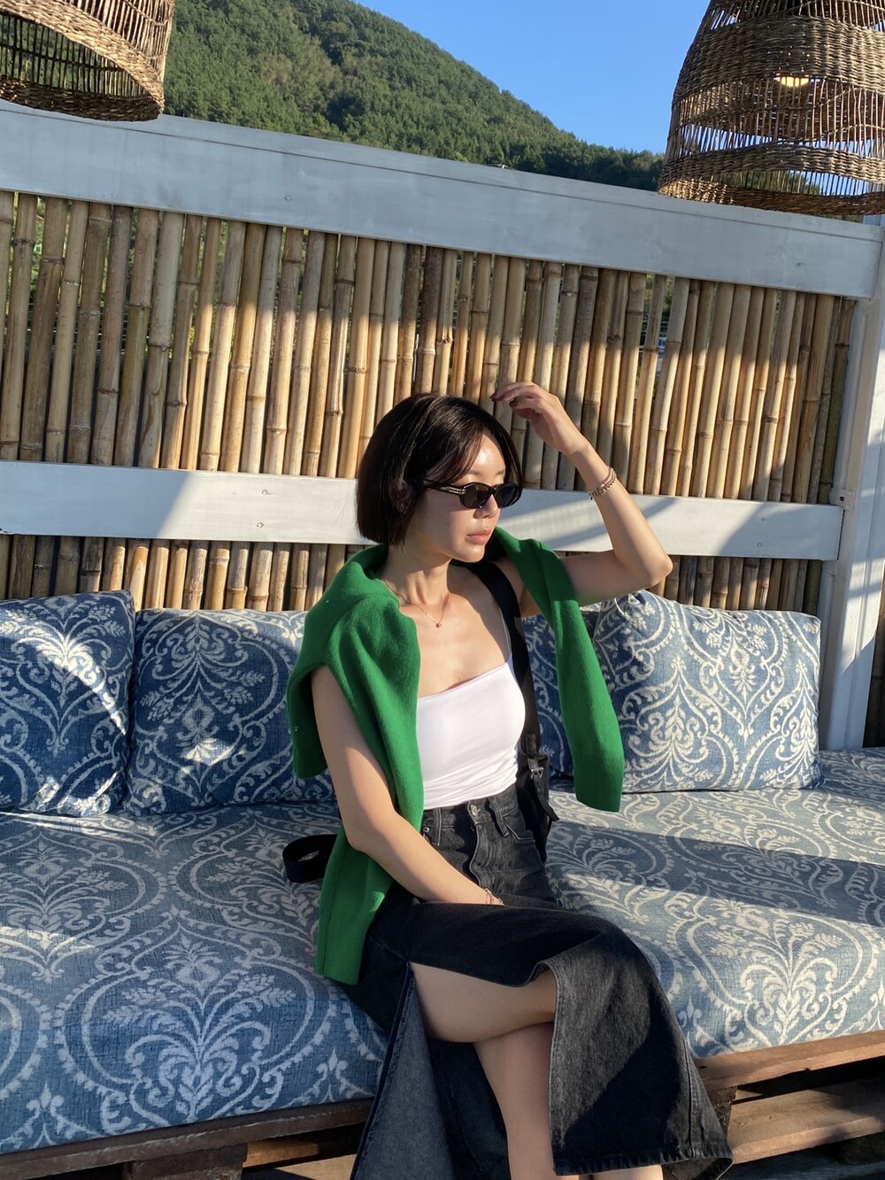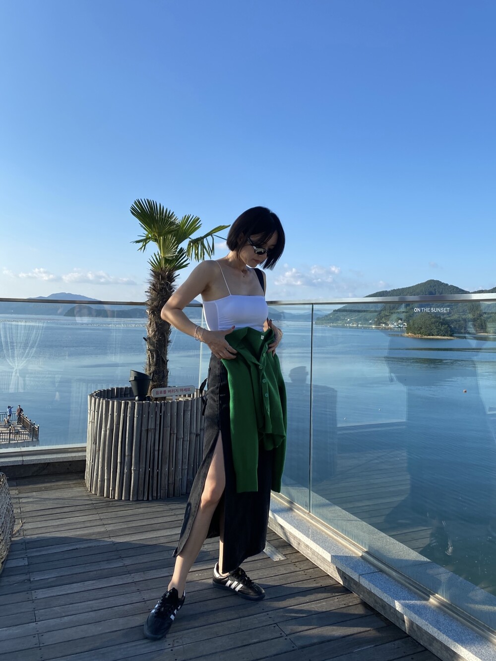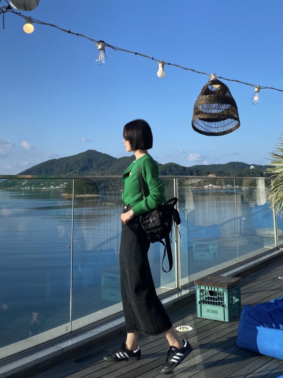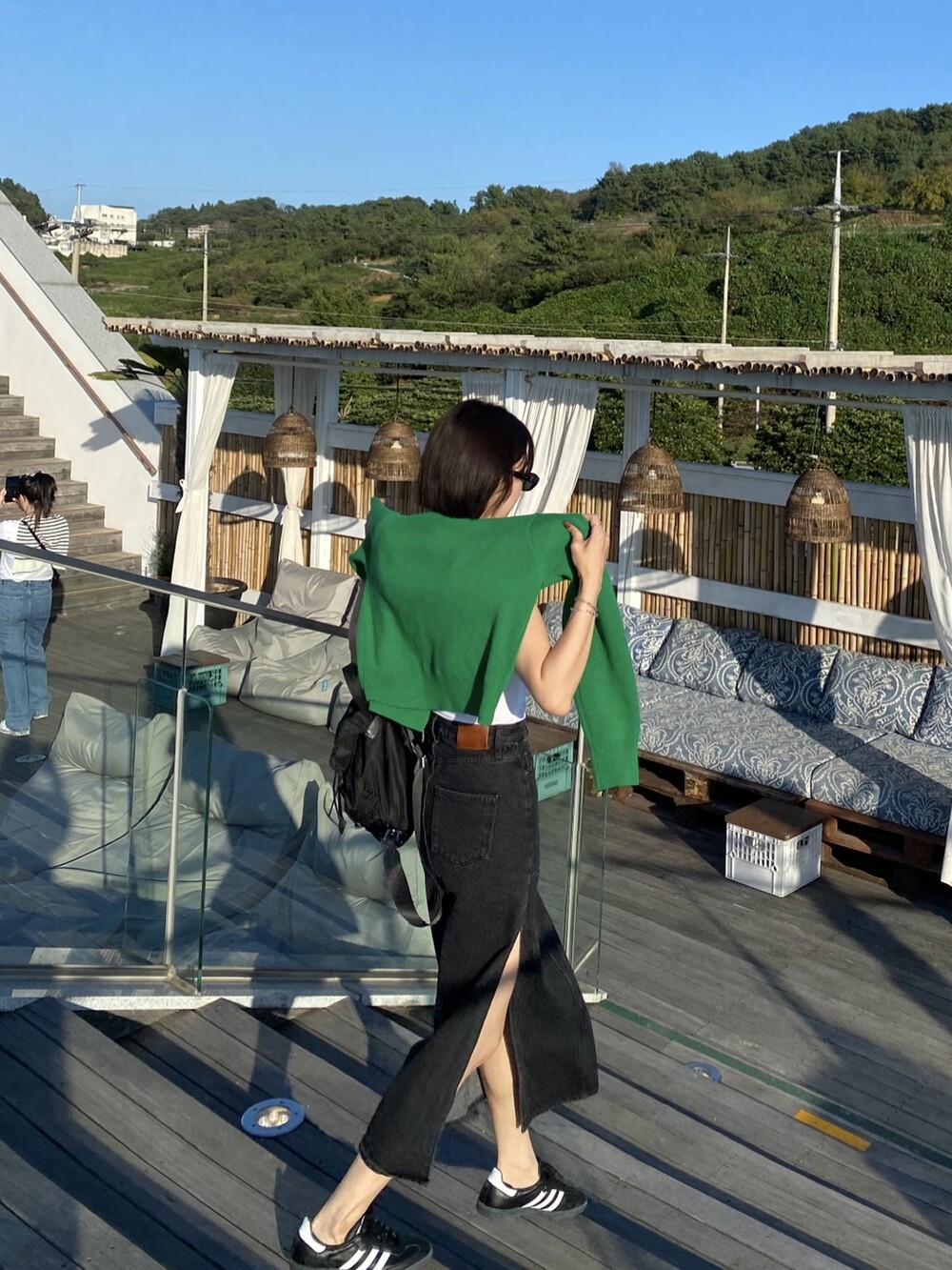 멋스럽게 떨어지는 흑청 롱스커트예요