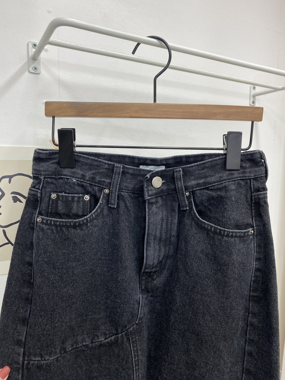 시크한 흑청 데님 워싱에 사이드 라인 딥한