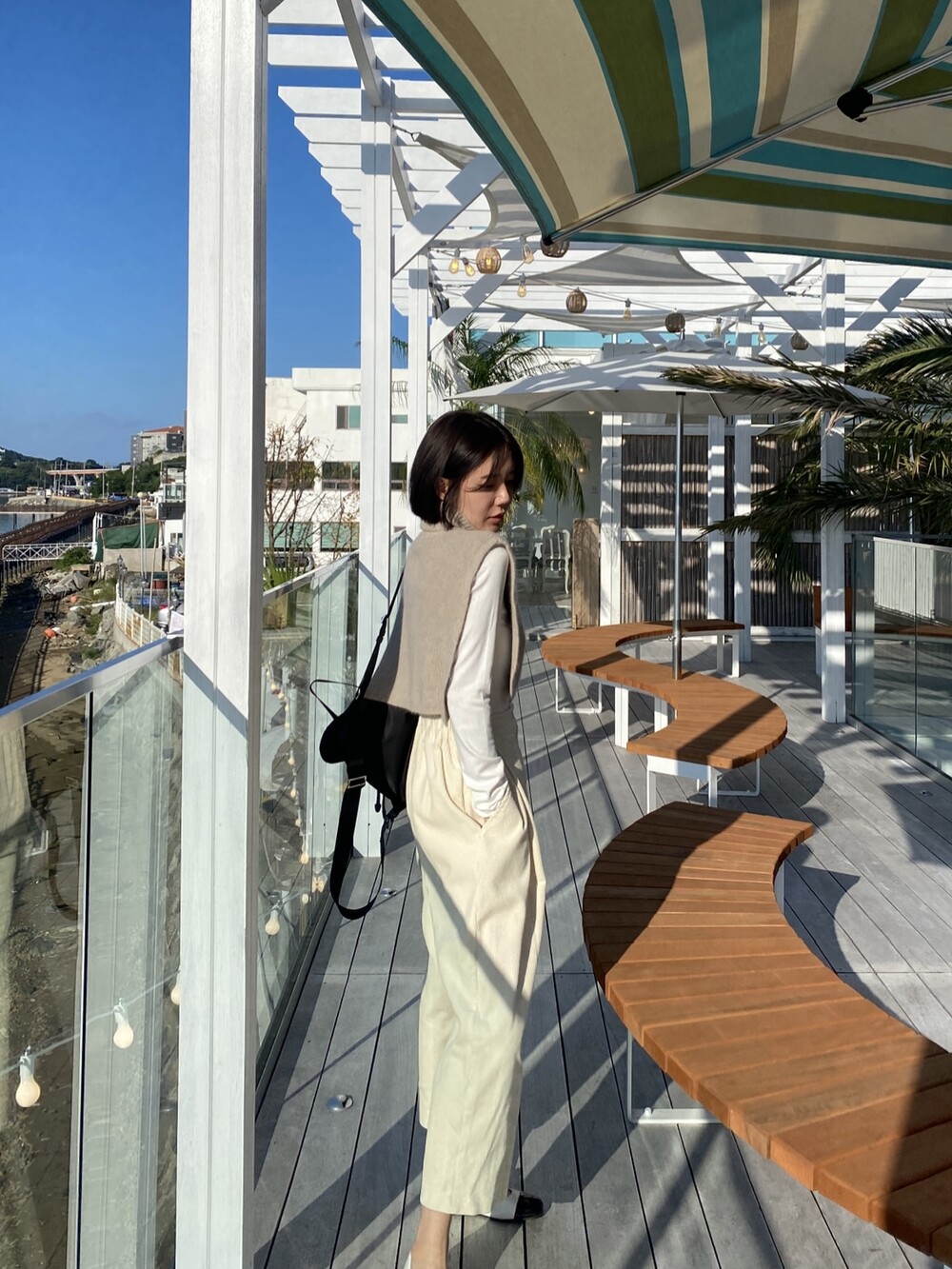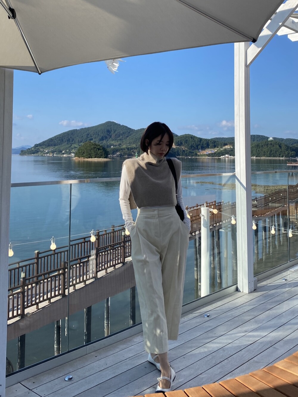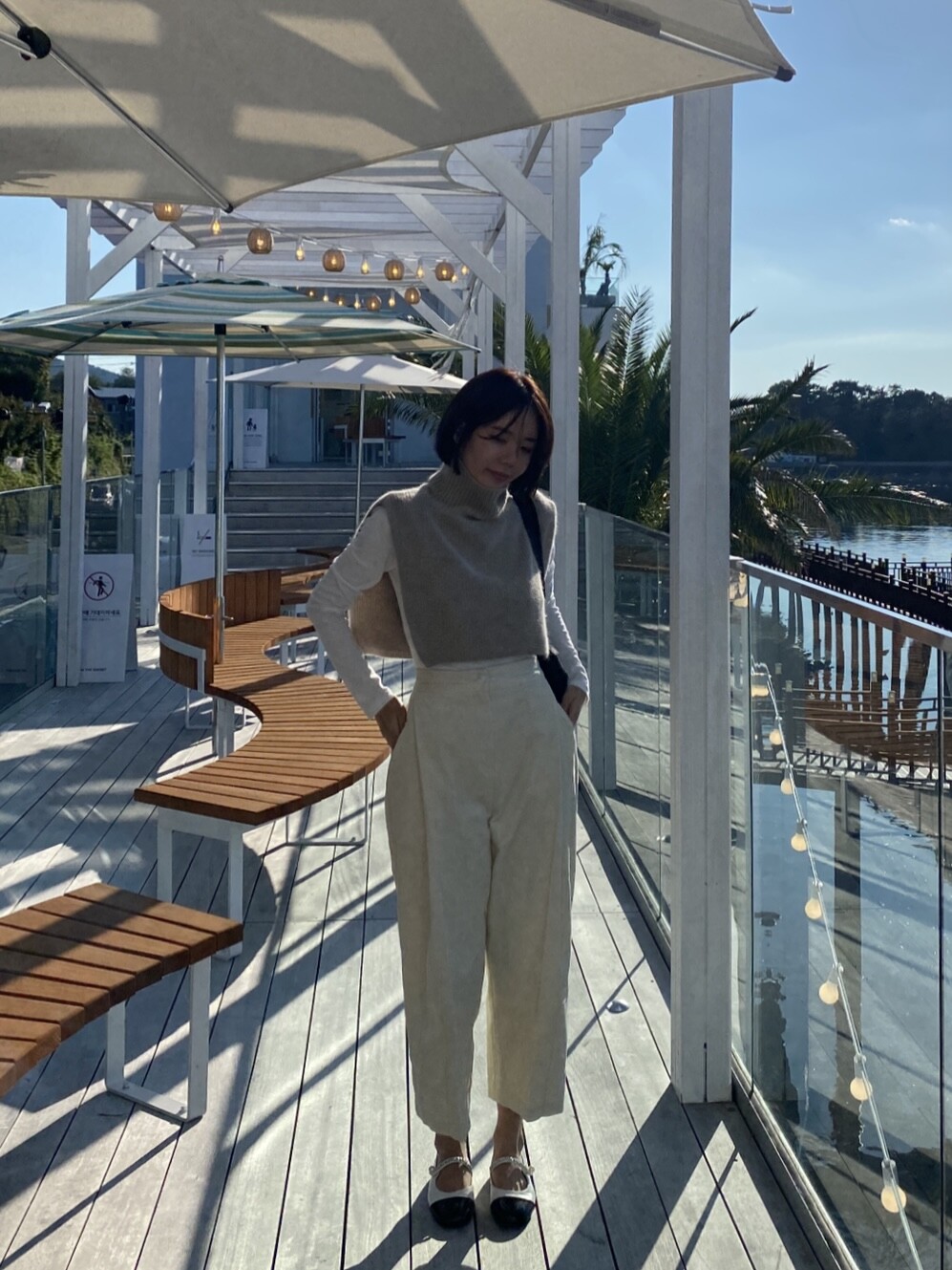 특징: 신축성 O , 비침 X, 안감 X , 두께감 보통, 무게감 보통