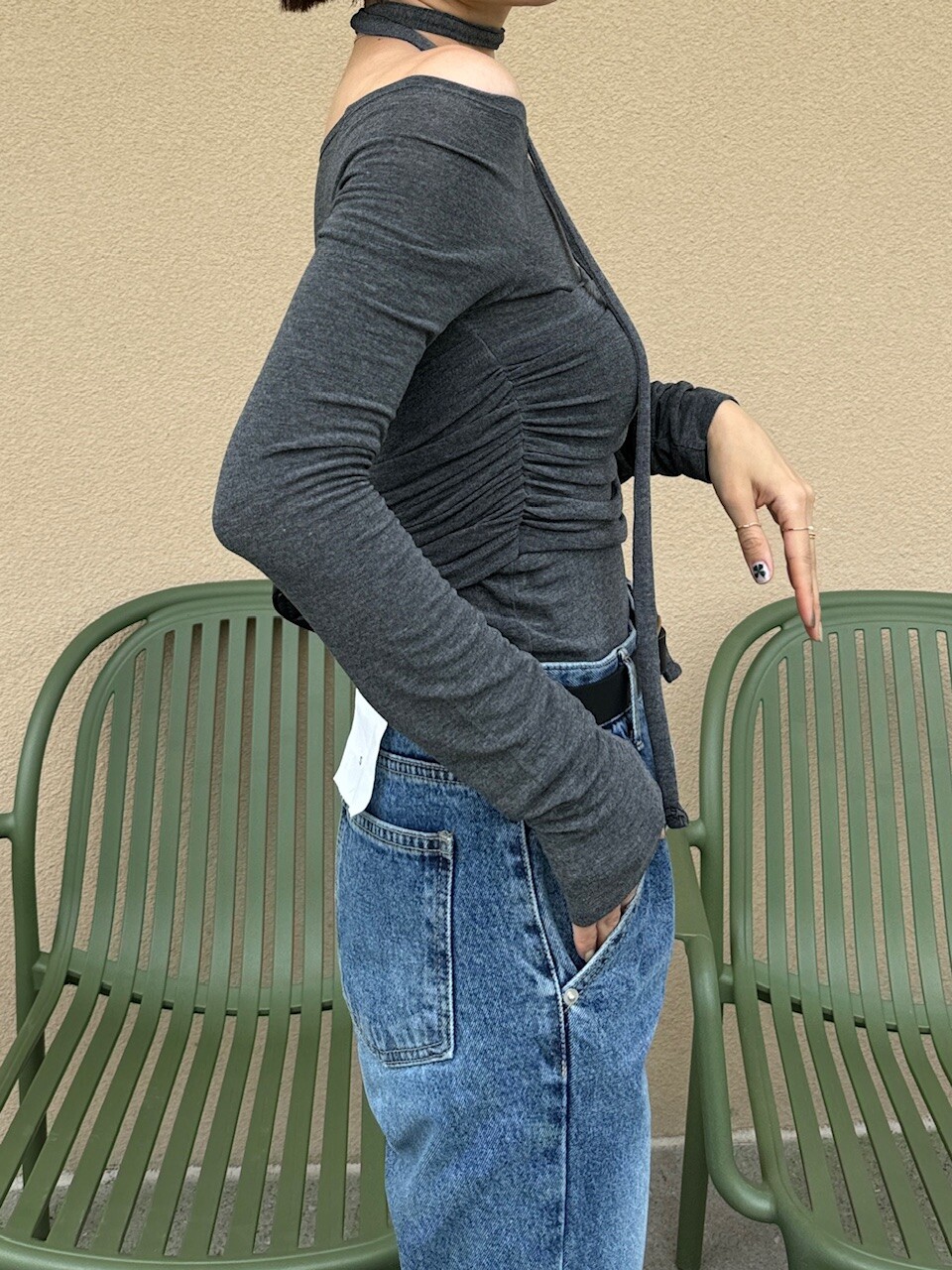 다양하게 코디 가능한 셔링 티셔츠