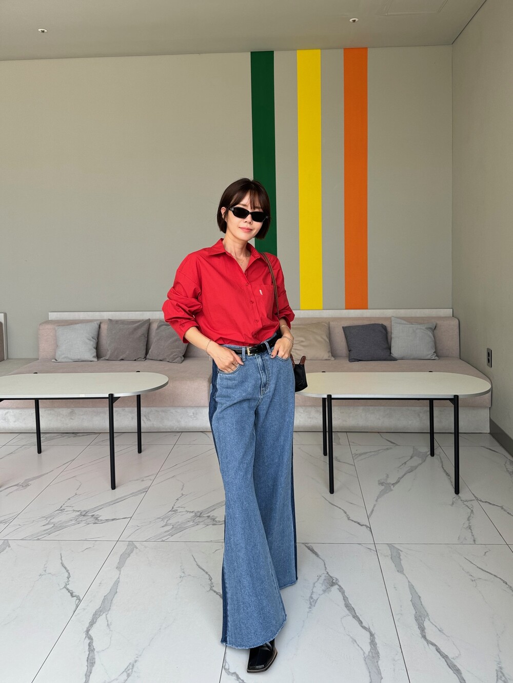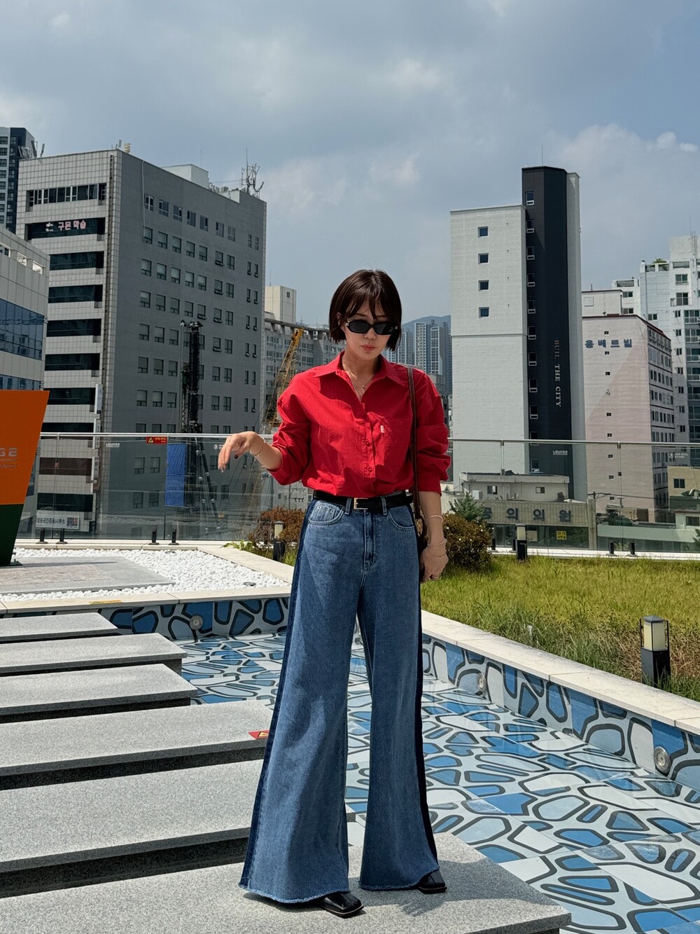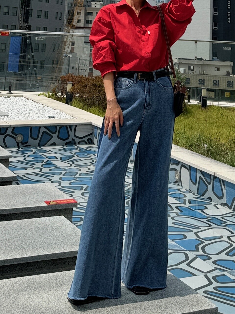 쭉 입으실 수 있는 와이드 데님팬츠예요