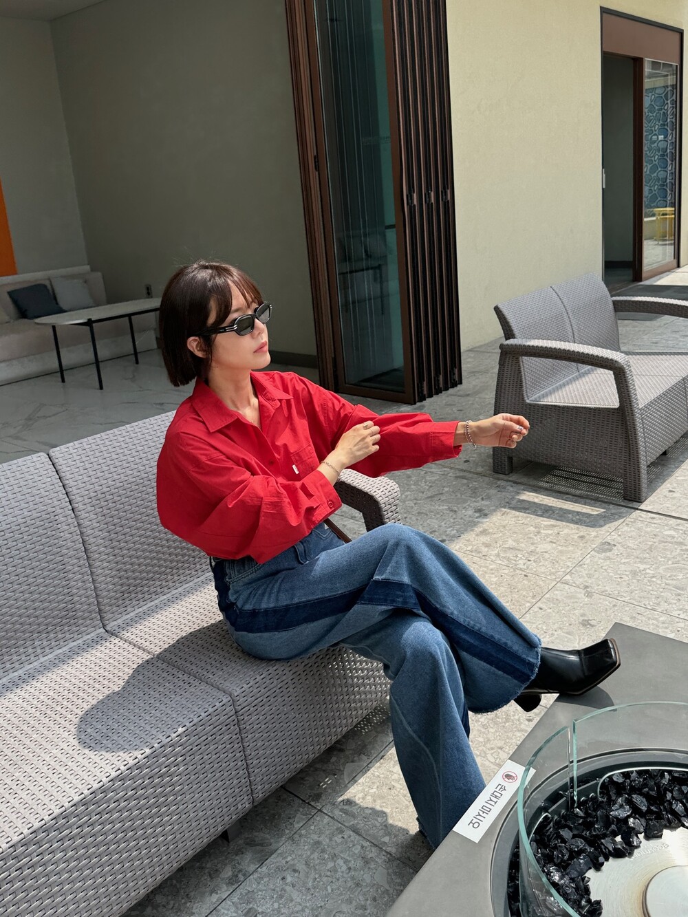 특징: 신축성 X, 비침 X , 안감 X , 두께감 보통, 무게감 보통