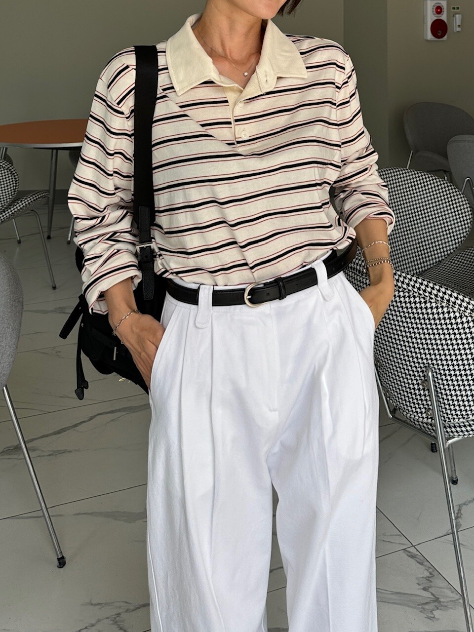 면바지, 청바지 등 심심한 옷차림에