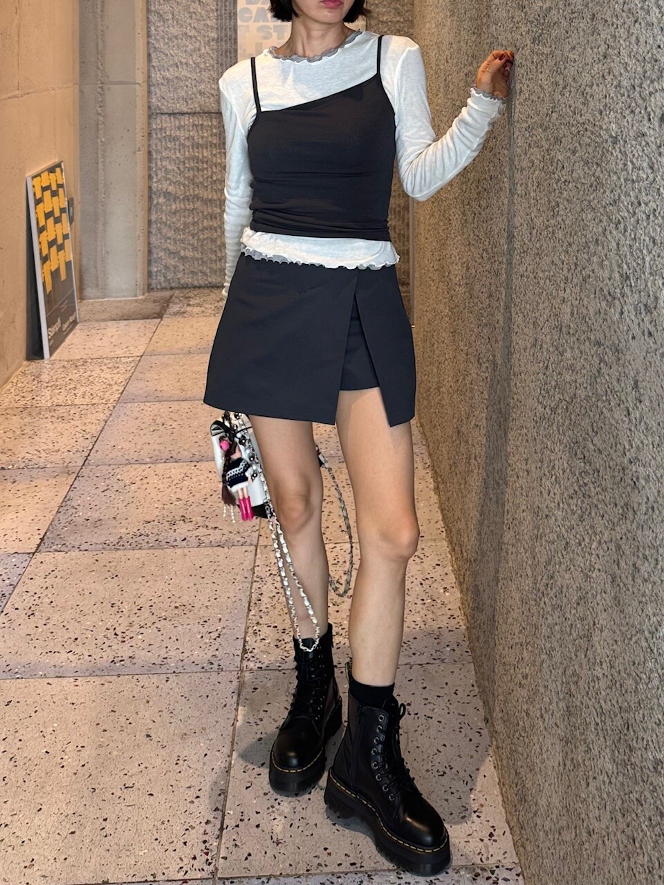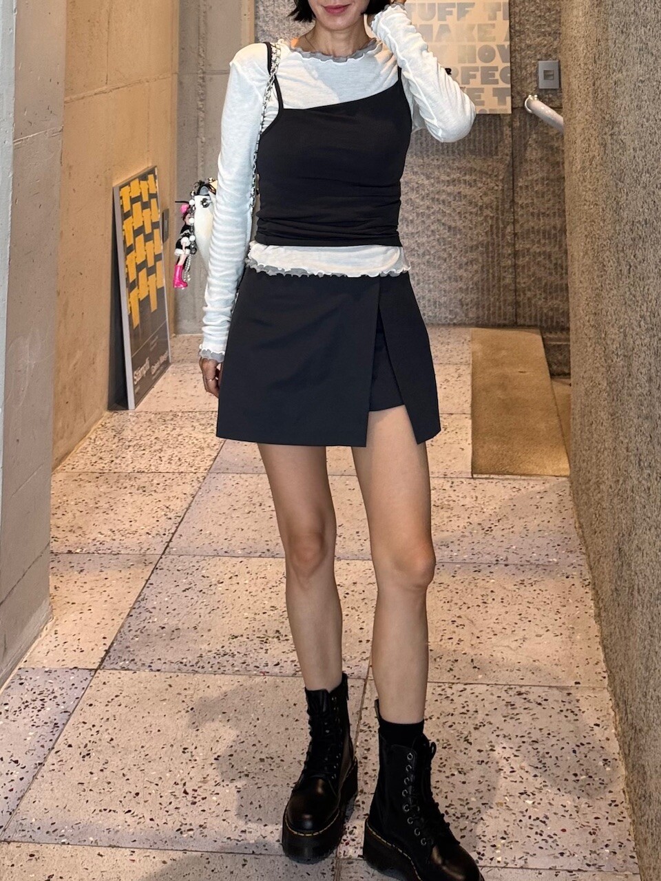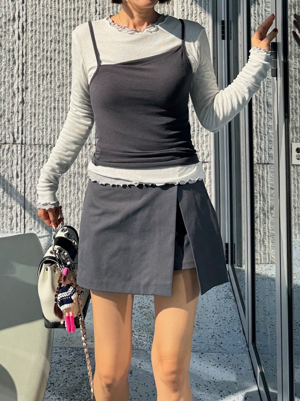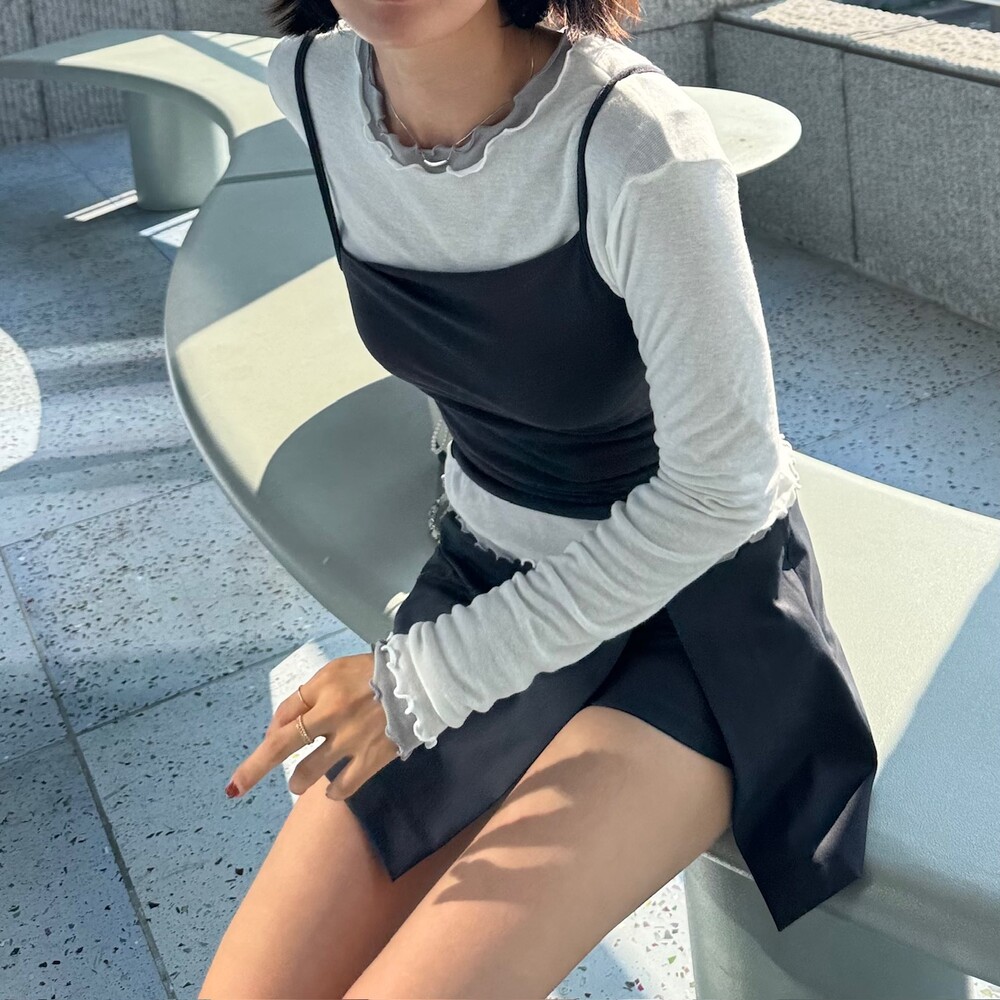 미니한 기장감의 랩스타일의 치마바지