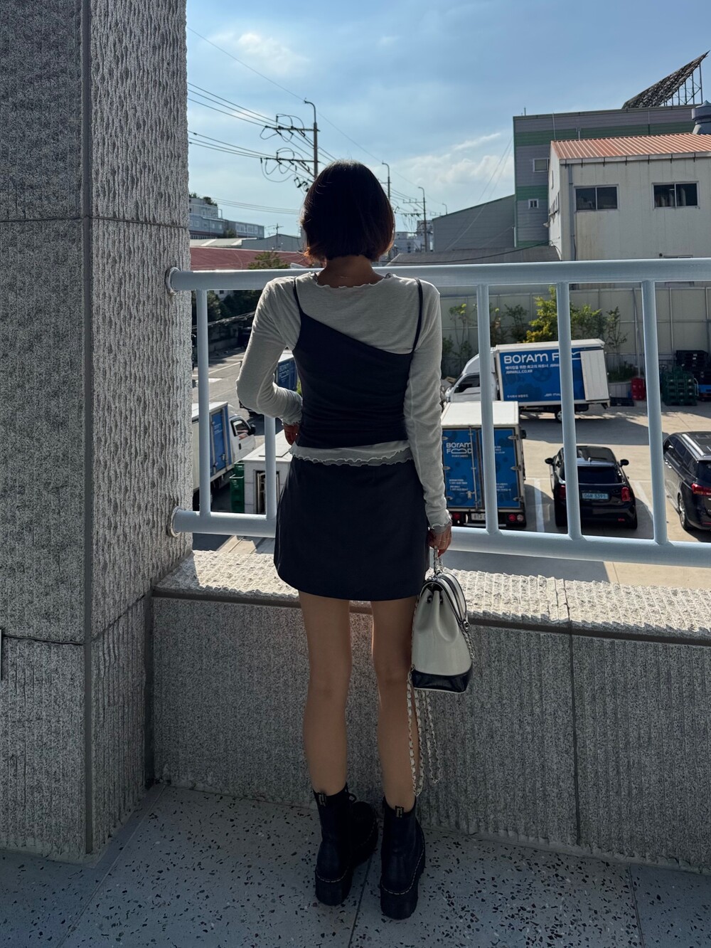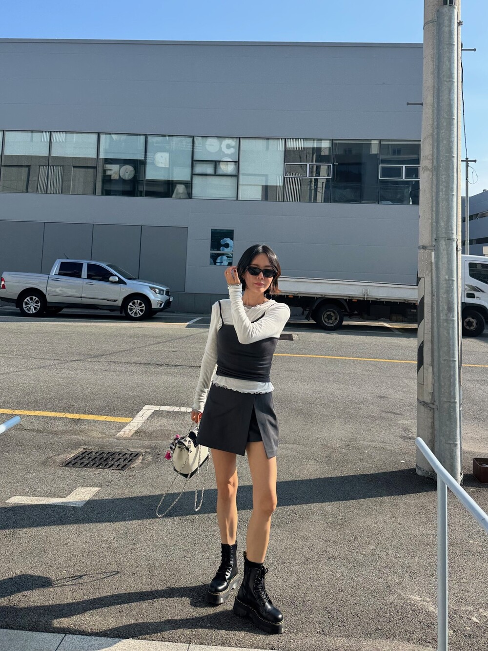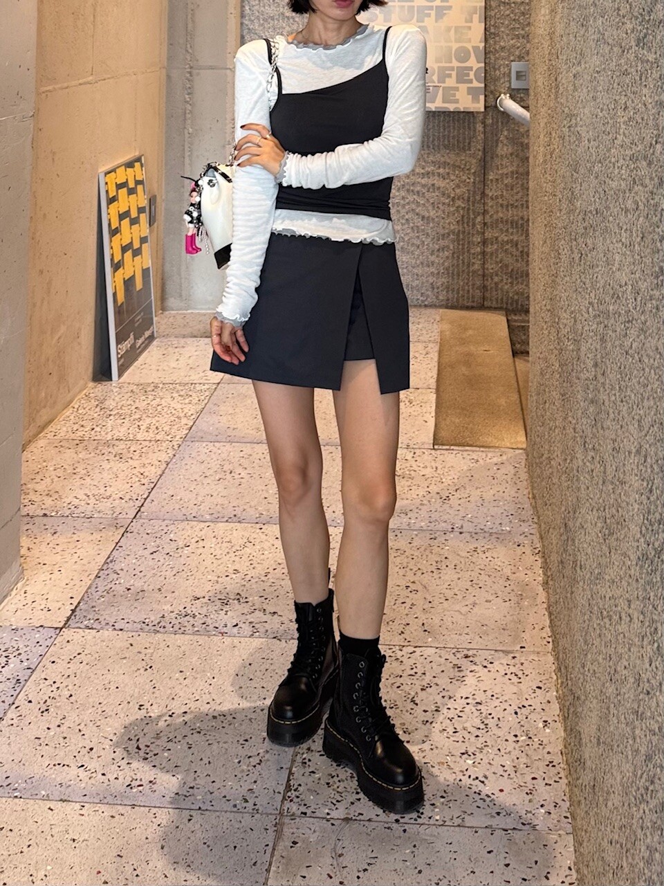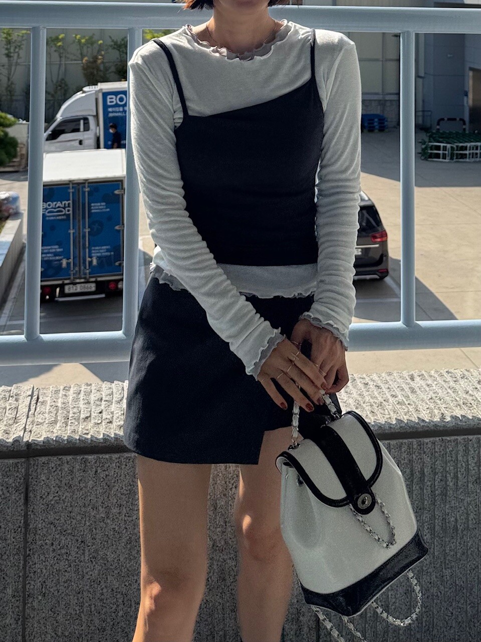 미니한 기장감의 랩스타일의 치마바지
