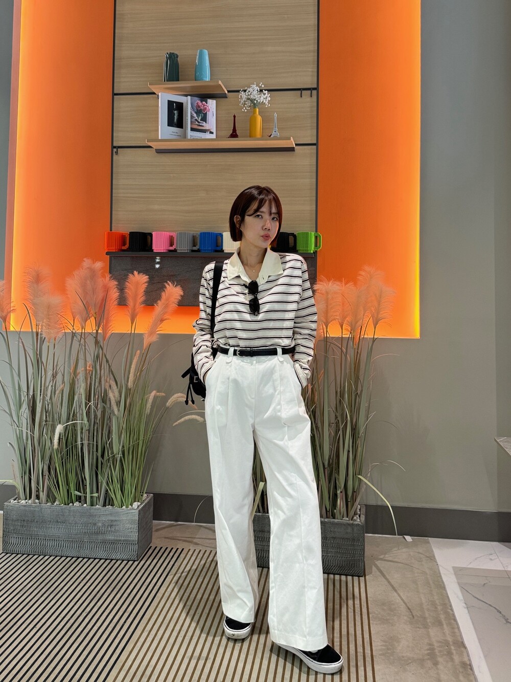 특징: 신축성 O, 비침 X , 안감 X , 두께감 보통, 무게감 보통