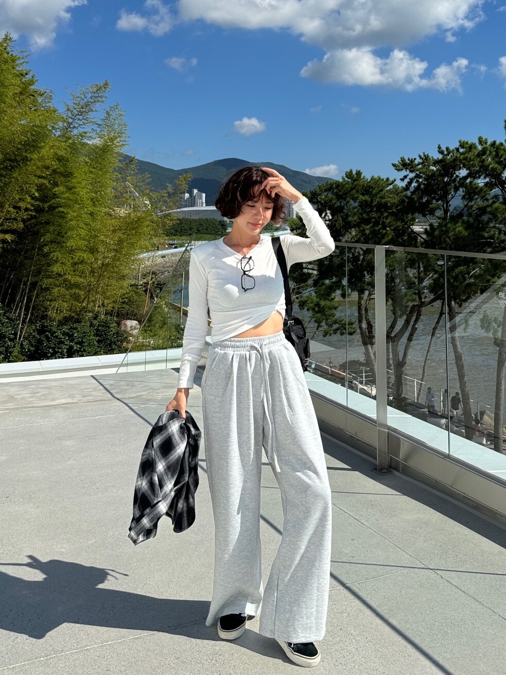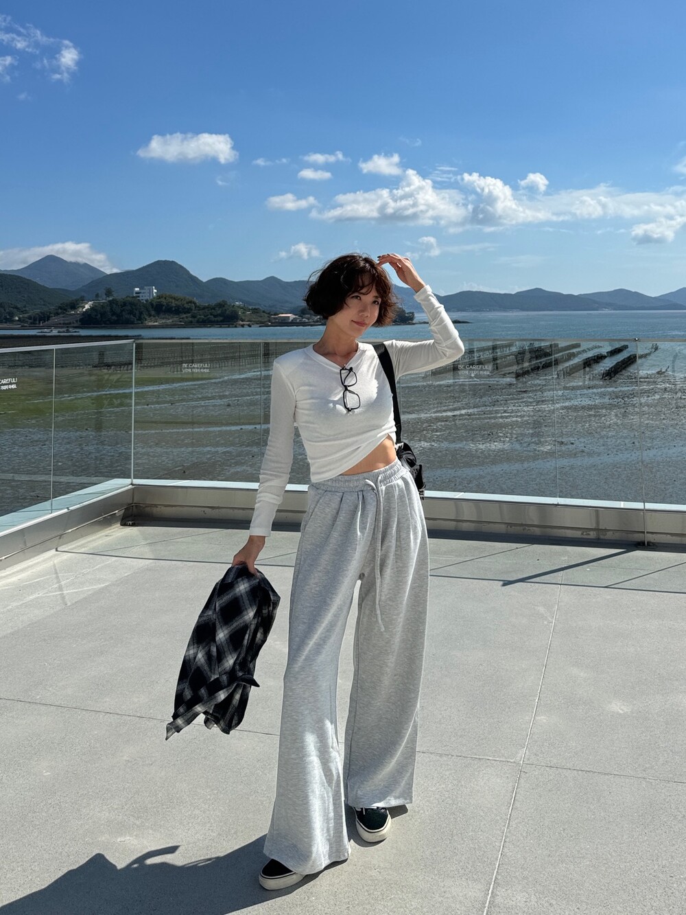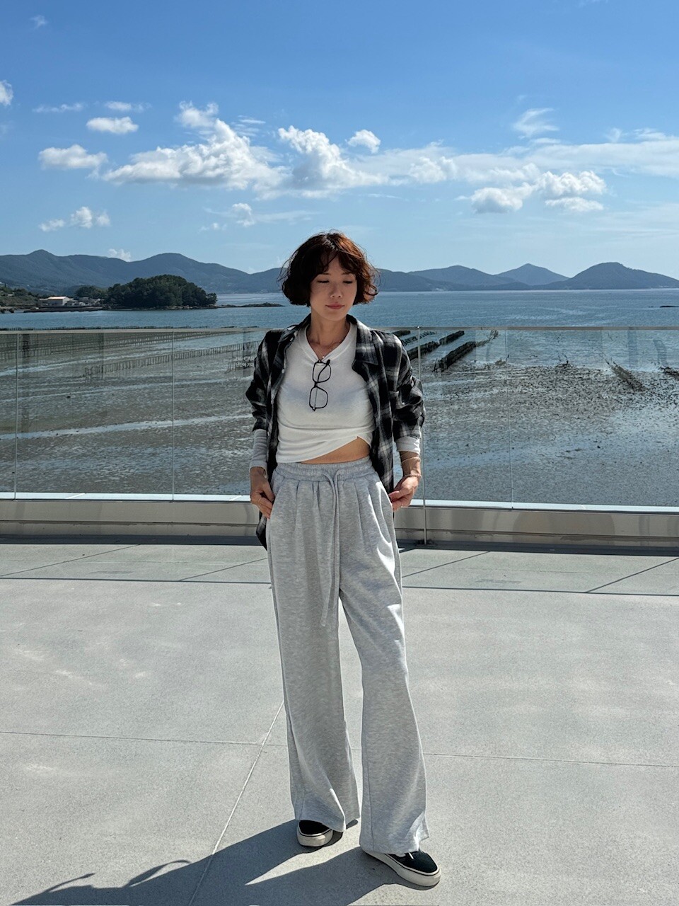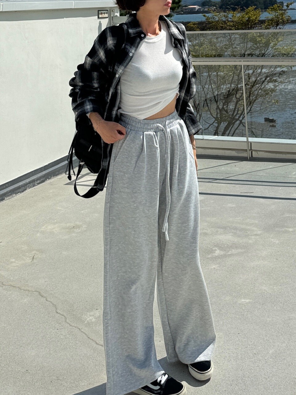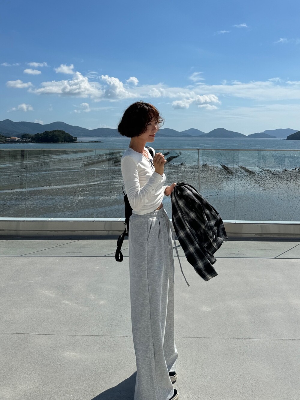 무릎이 튀어나오지 않는 베이직한 와이드 밴딩 팬츠