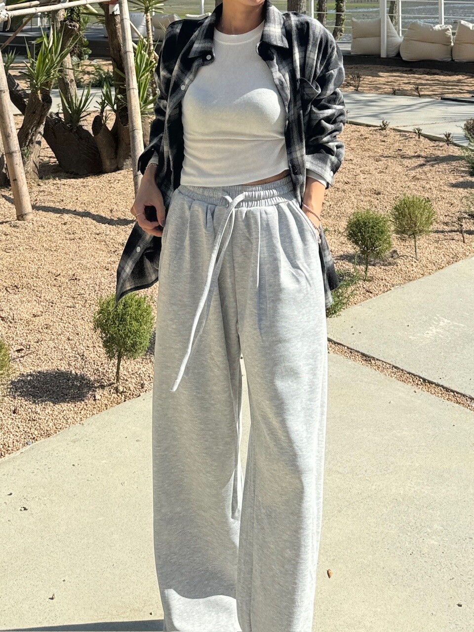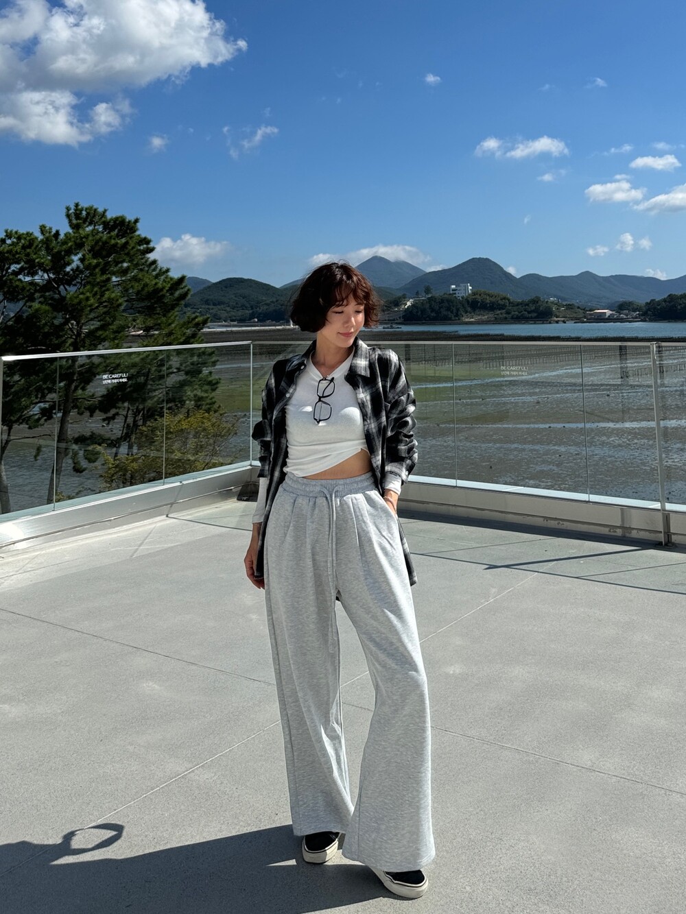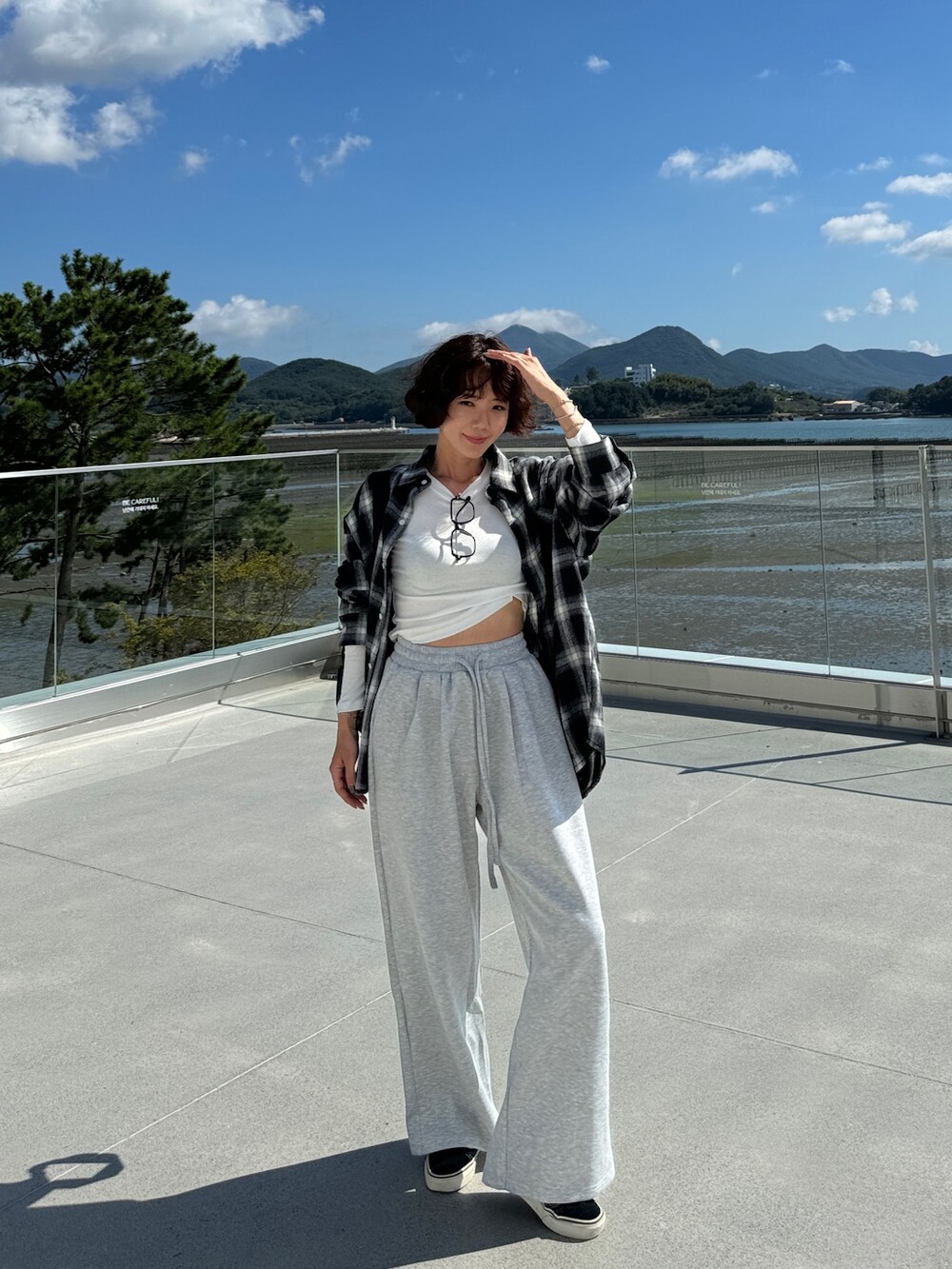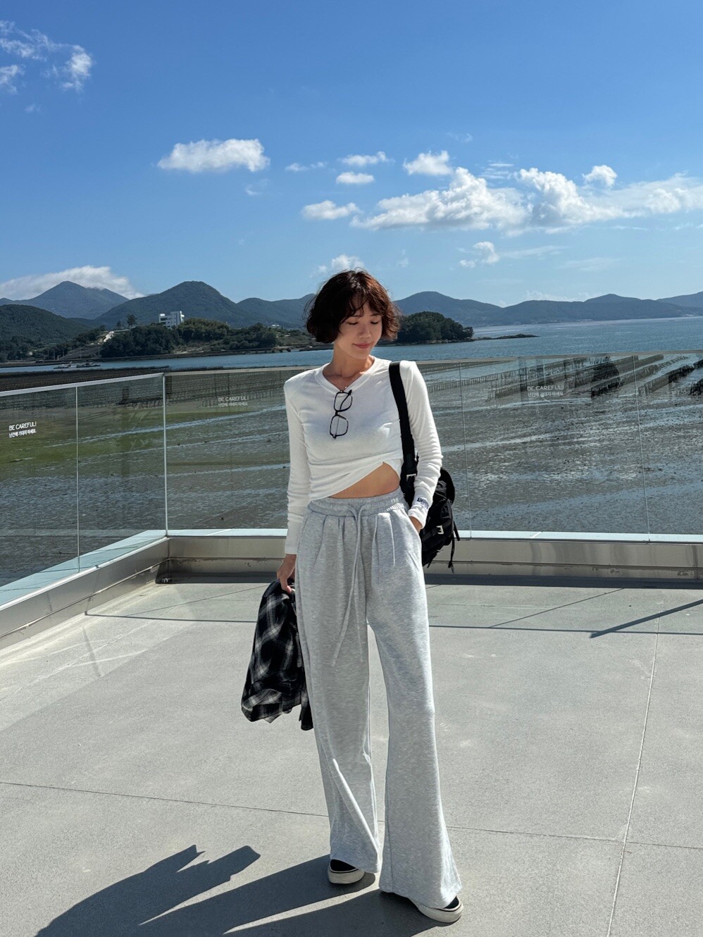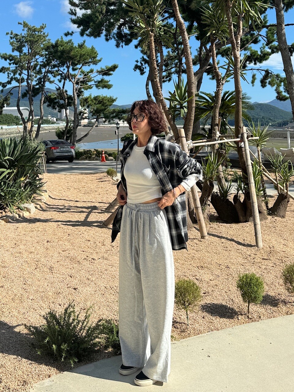 무릎이 튀어나오지 않는 베이직한 와이드 밴딩 팬츠