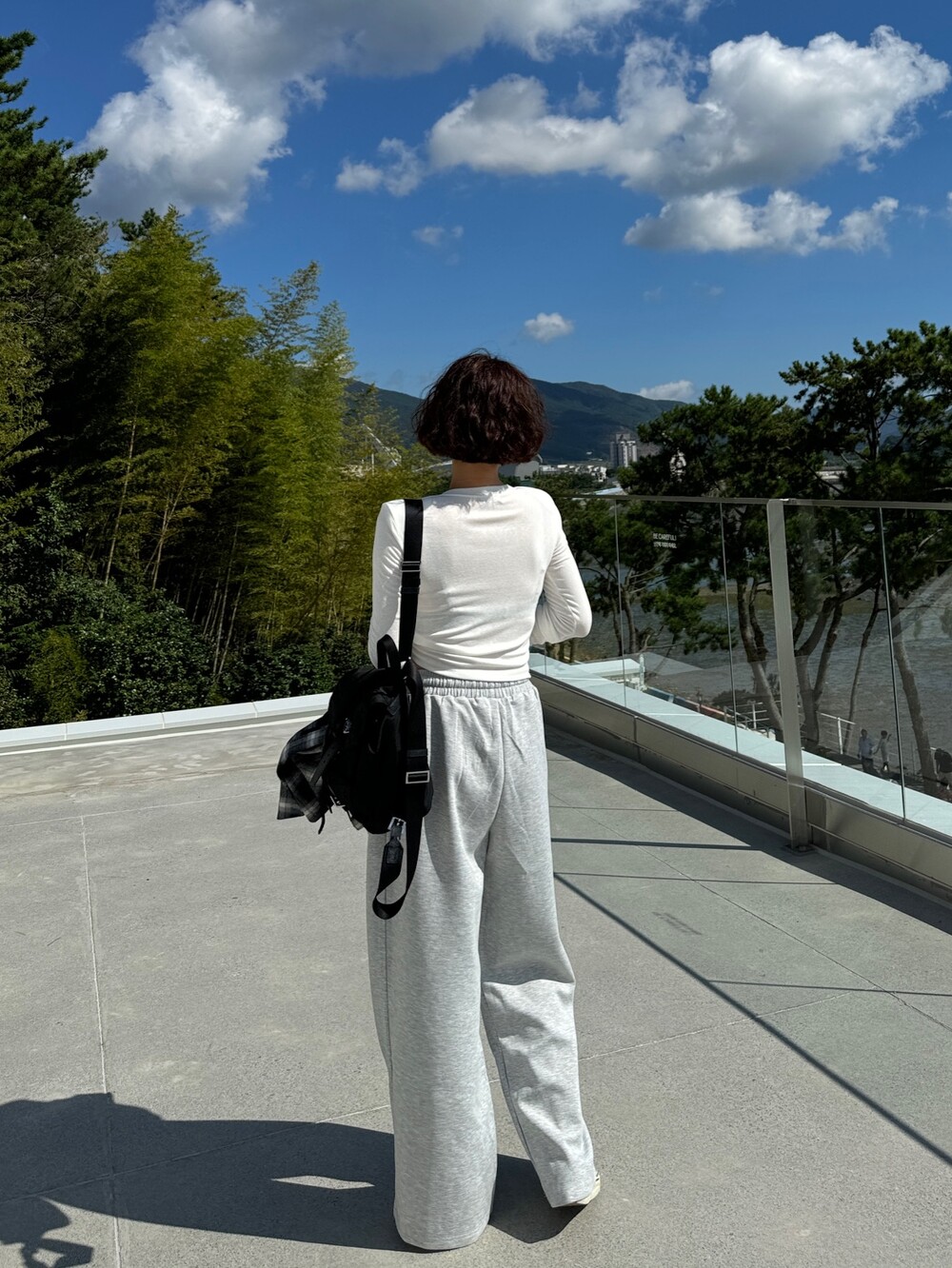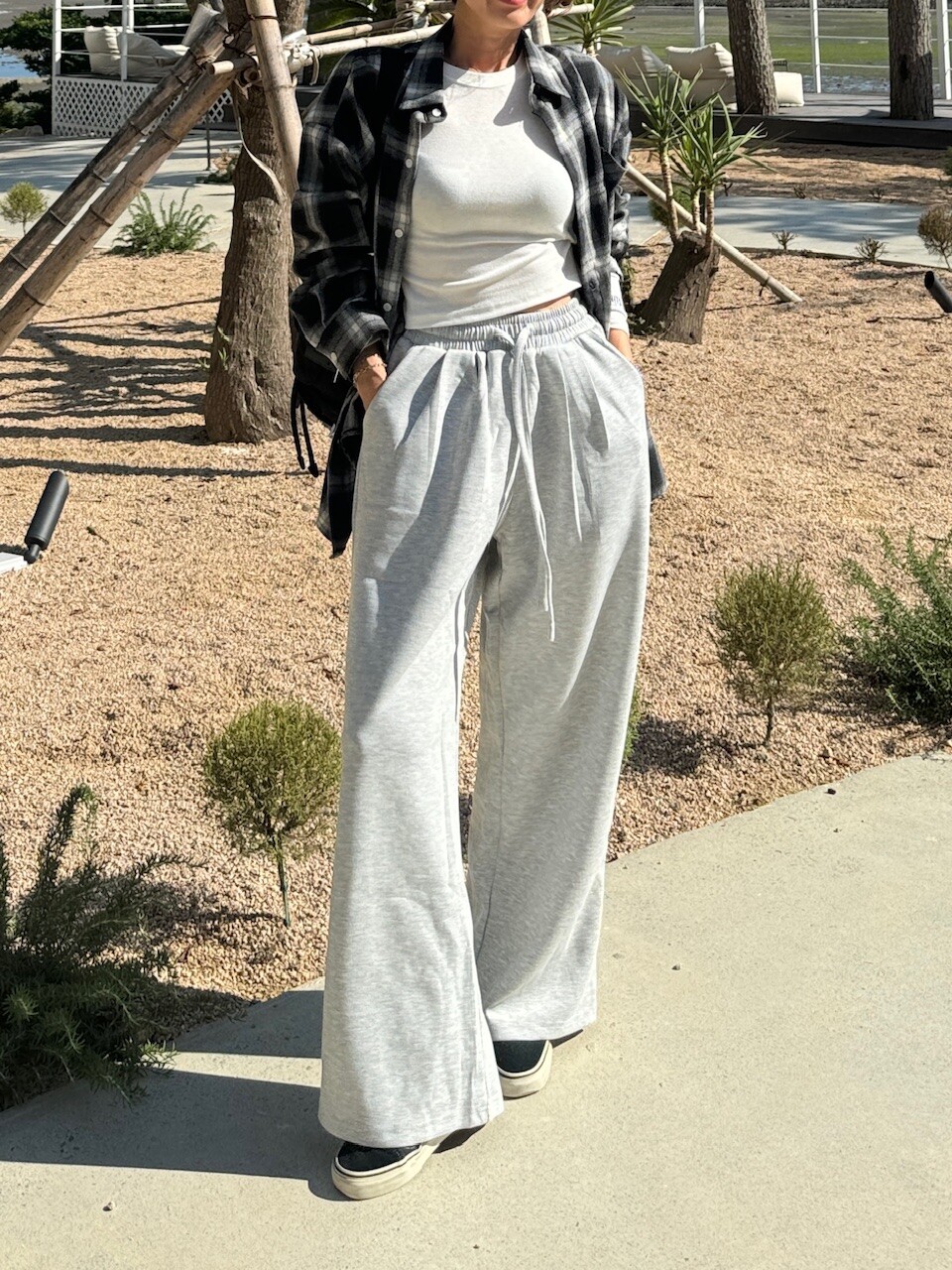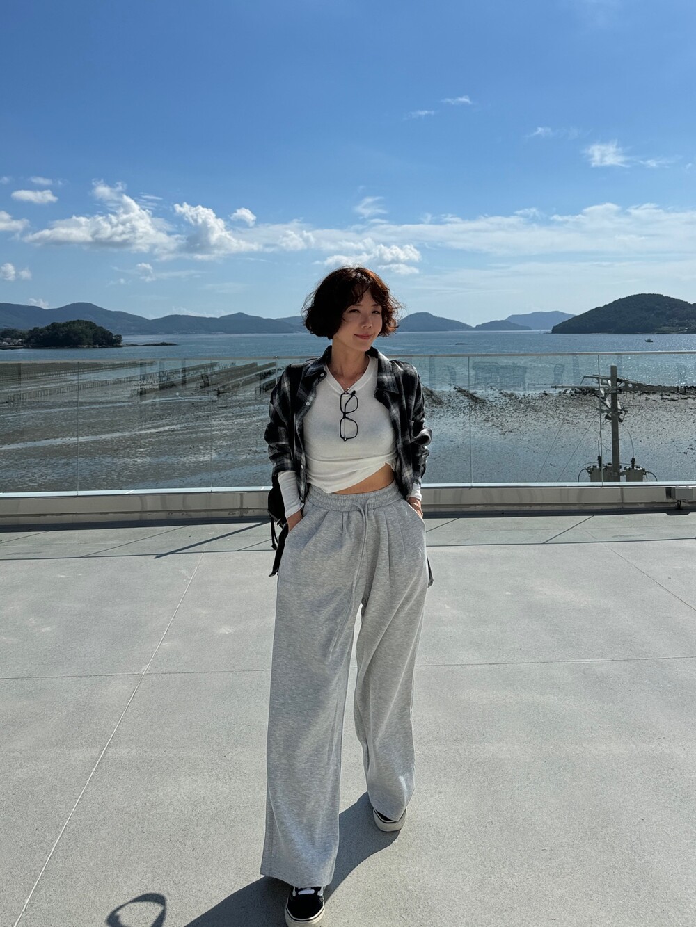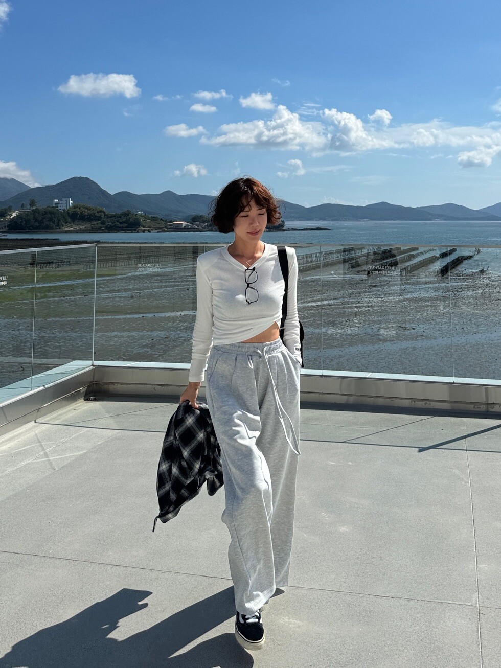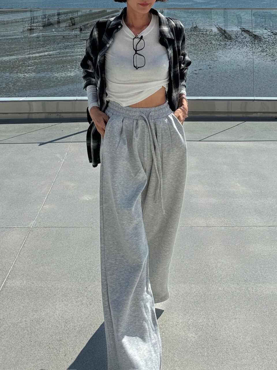 무릎이 튀어나오지 않는 베이직한 와이드 밴딩 팬츠