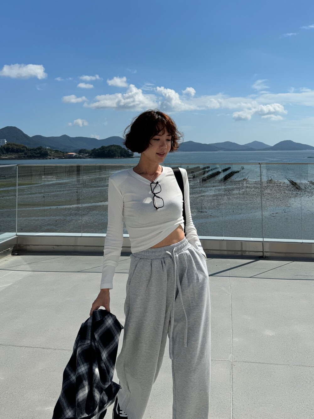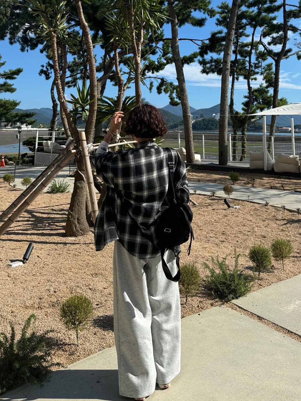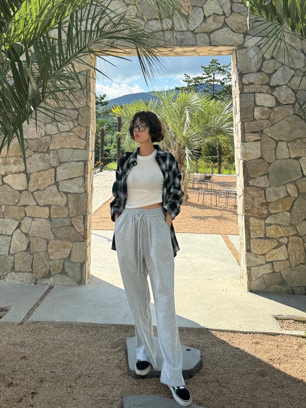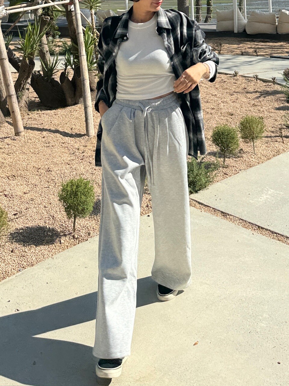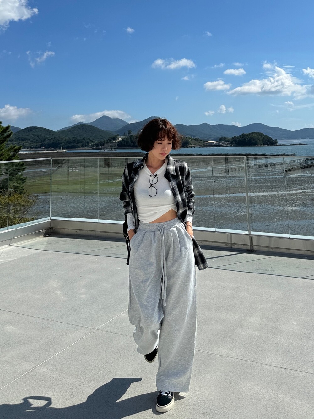 무릎이 튀어나오지 않는 베이직한 와이드 밴딩 팬츠