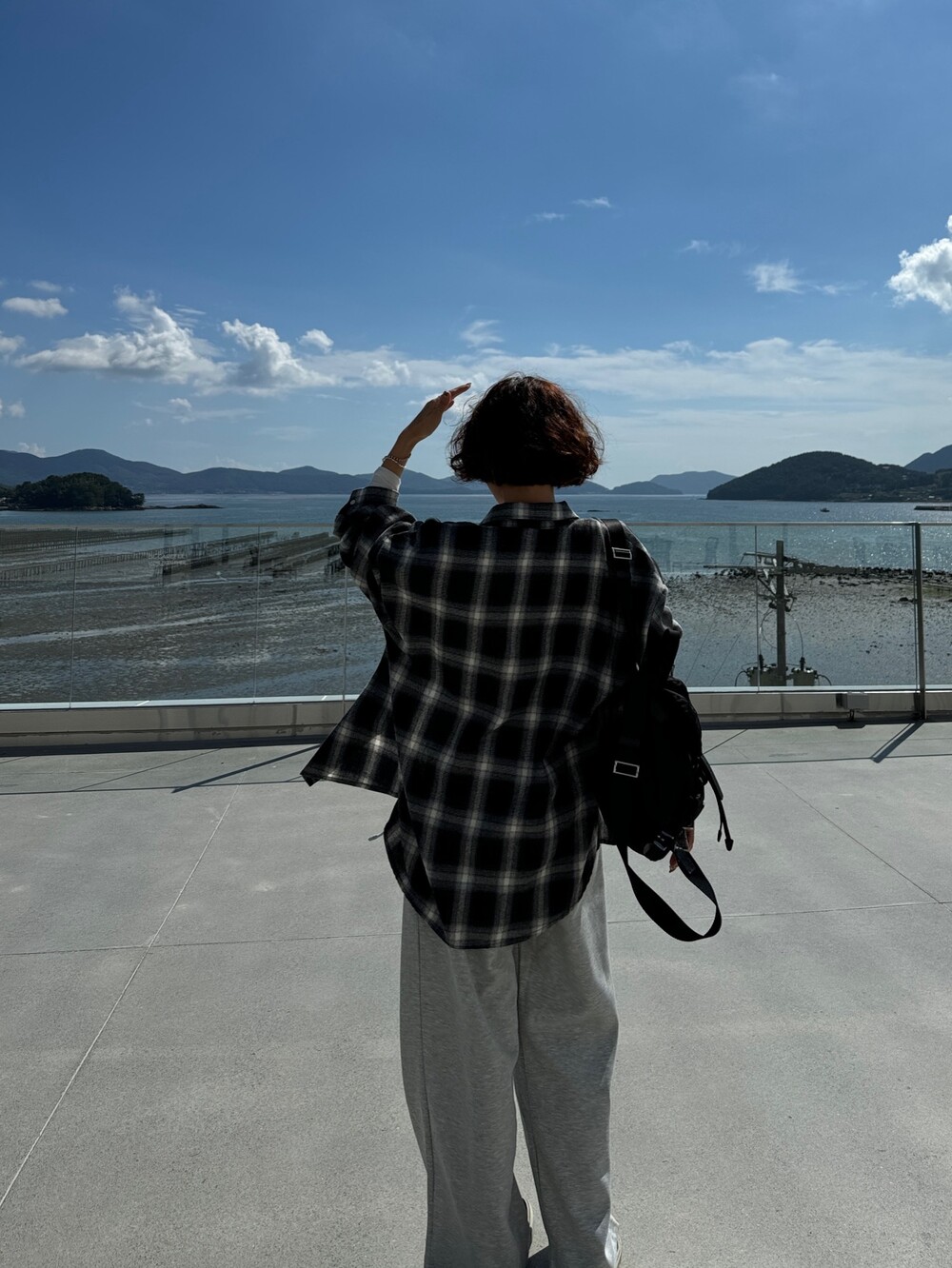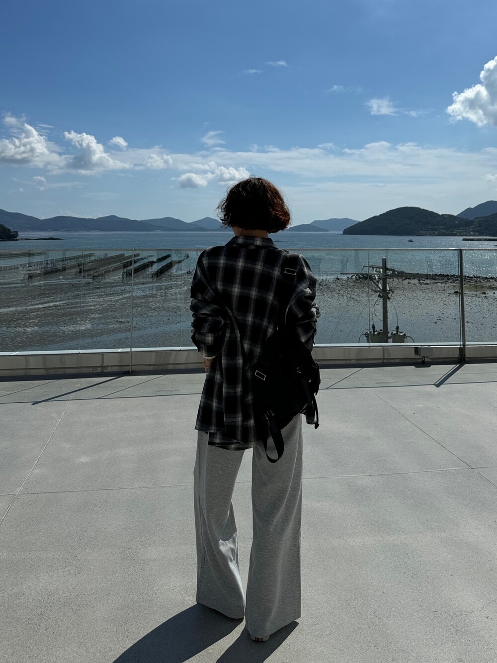 특징: 신축성 O, 비침 X , 안감 X , 두께감 보통, 무게감 보통