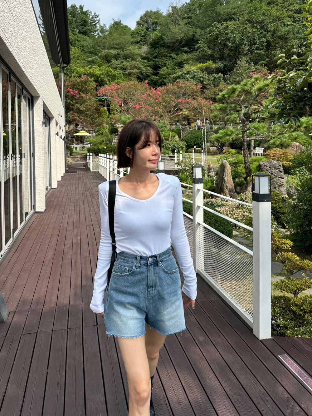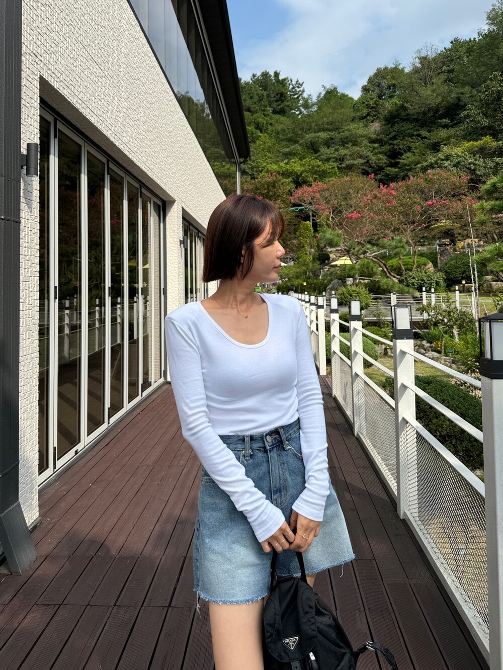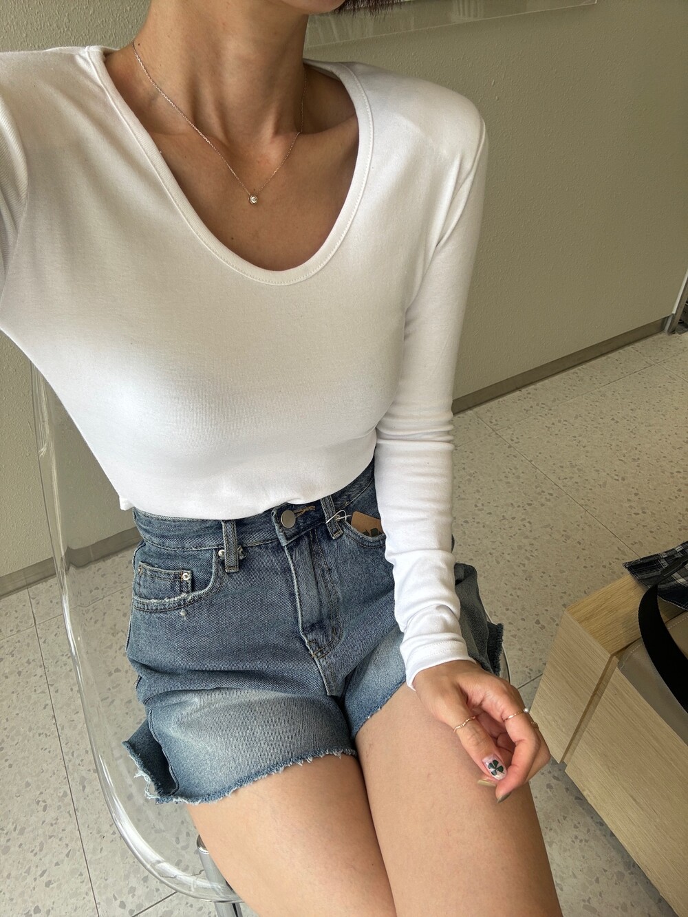 베이직한 기본 스타일의 유넥 티셔츠예요
