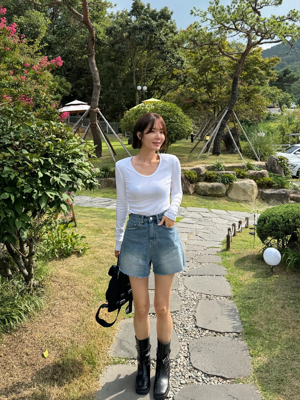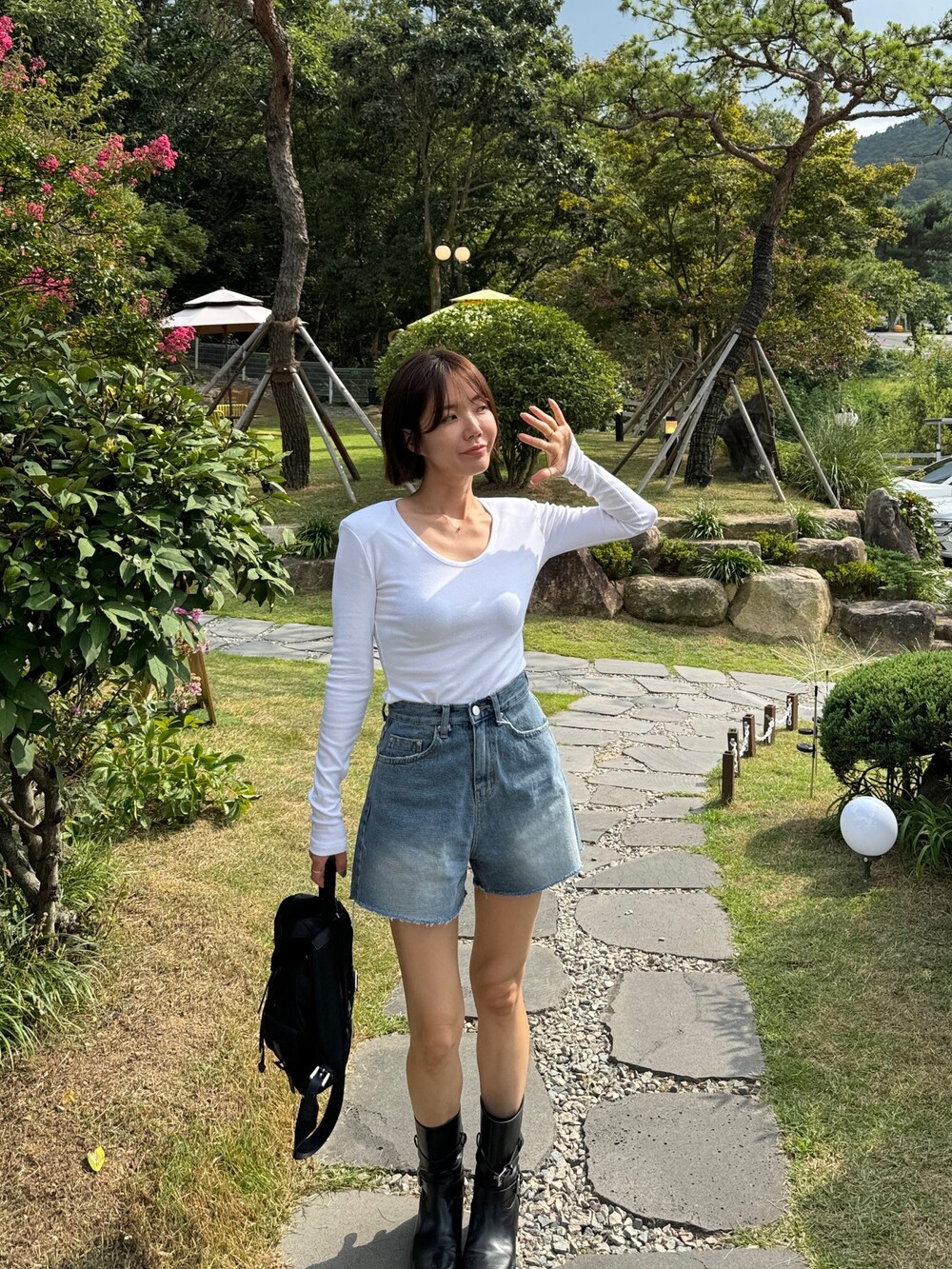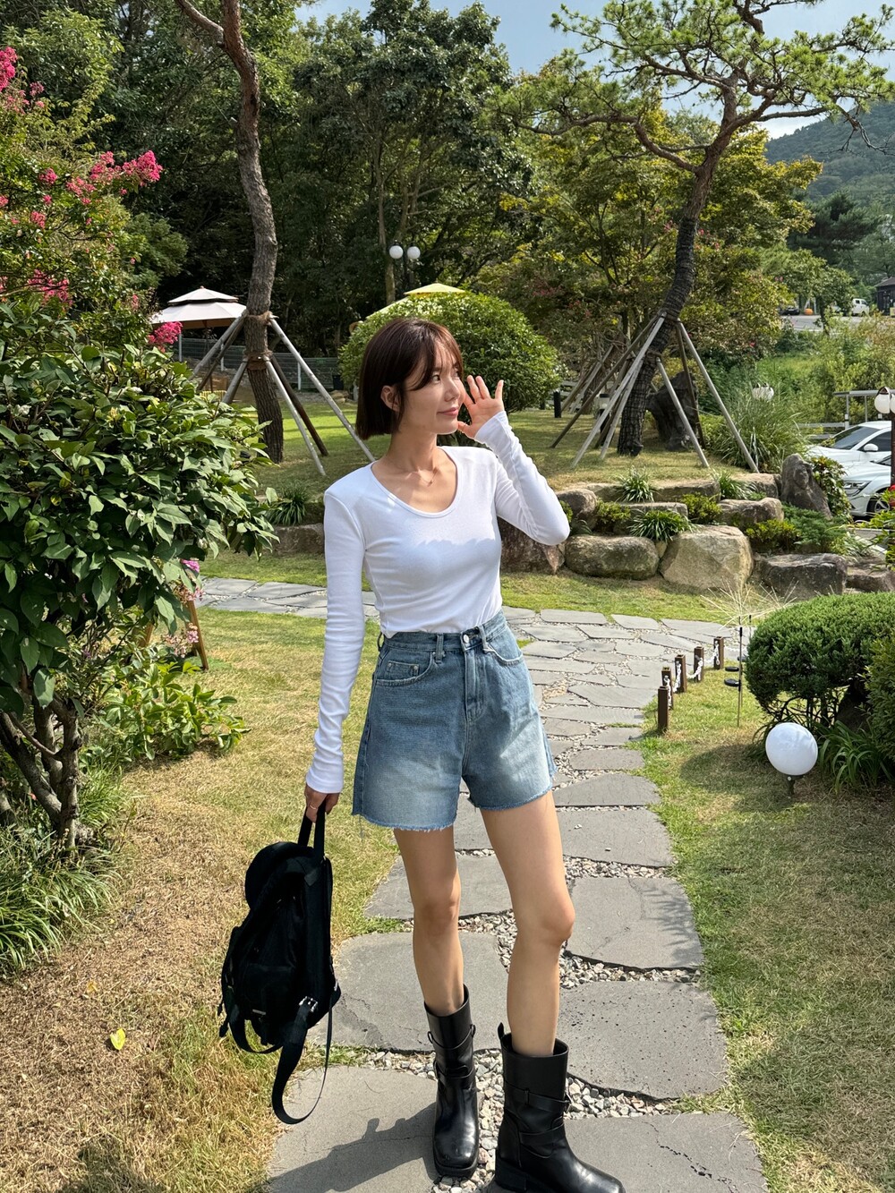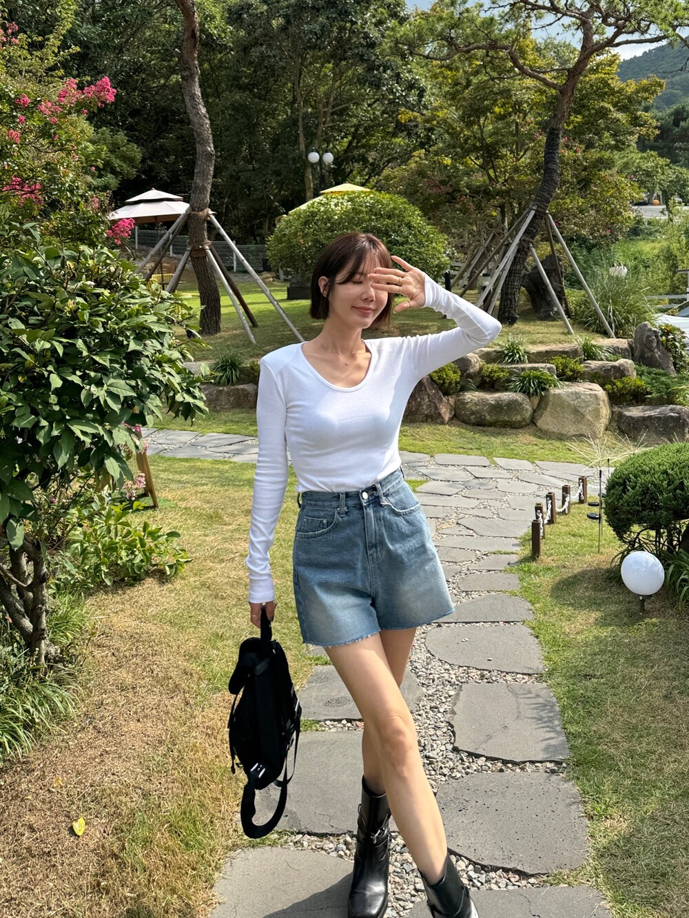 베이직한 기본 스타일의 유넥 티셔츠예요