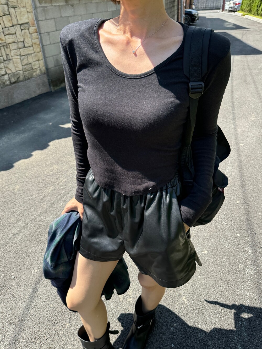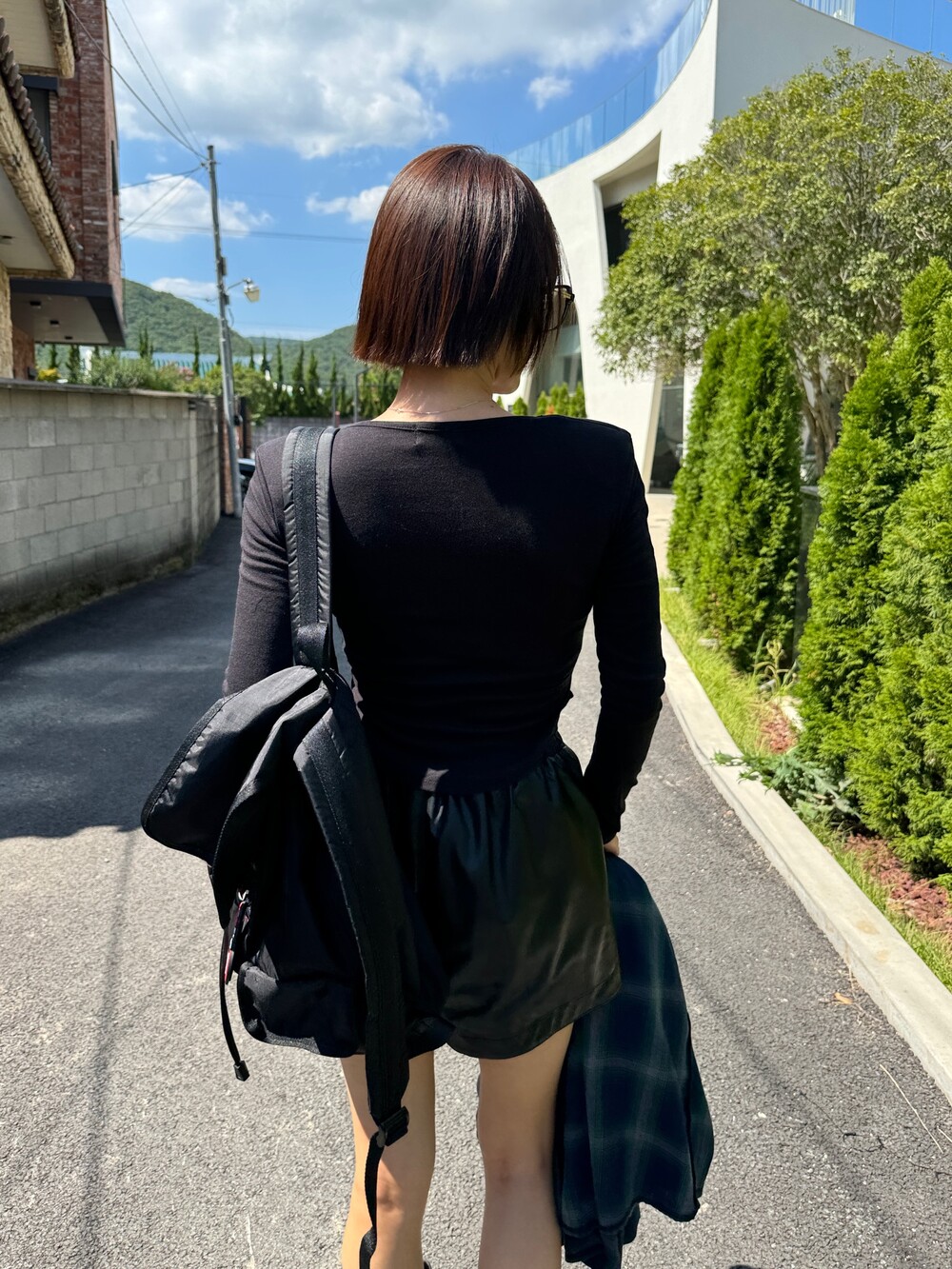 특징: 신축성 O, 비침 X , 안감 X , 두께감 보통, 무게감 보통