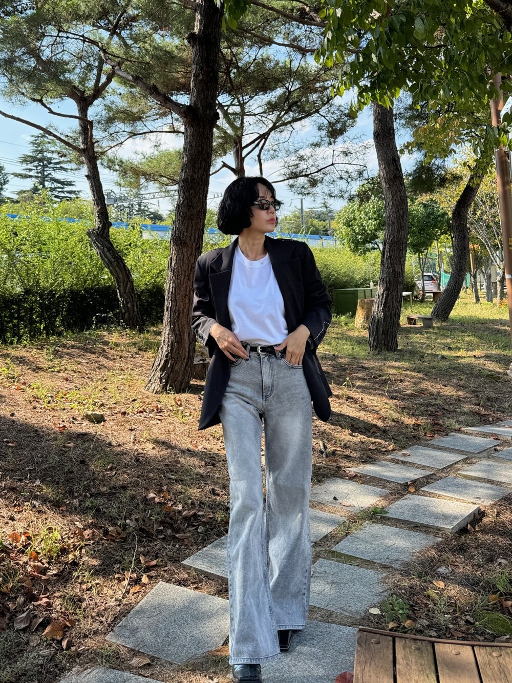 특징: 신축성 O, 비침 X, 안감 X , 두께감 보통, 무게감 보통