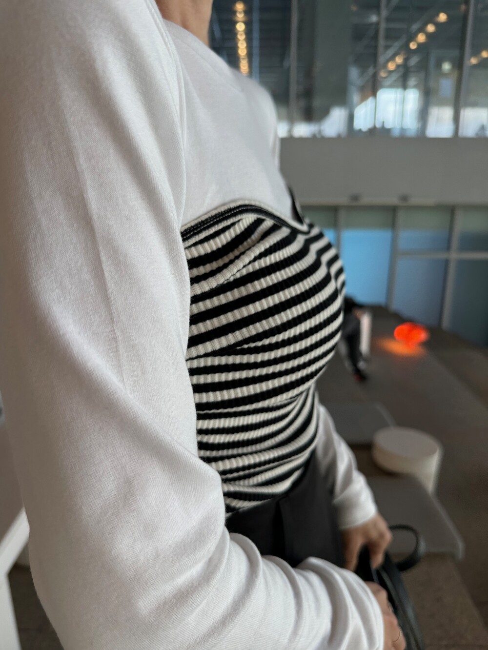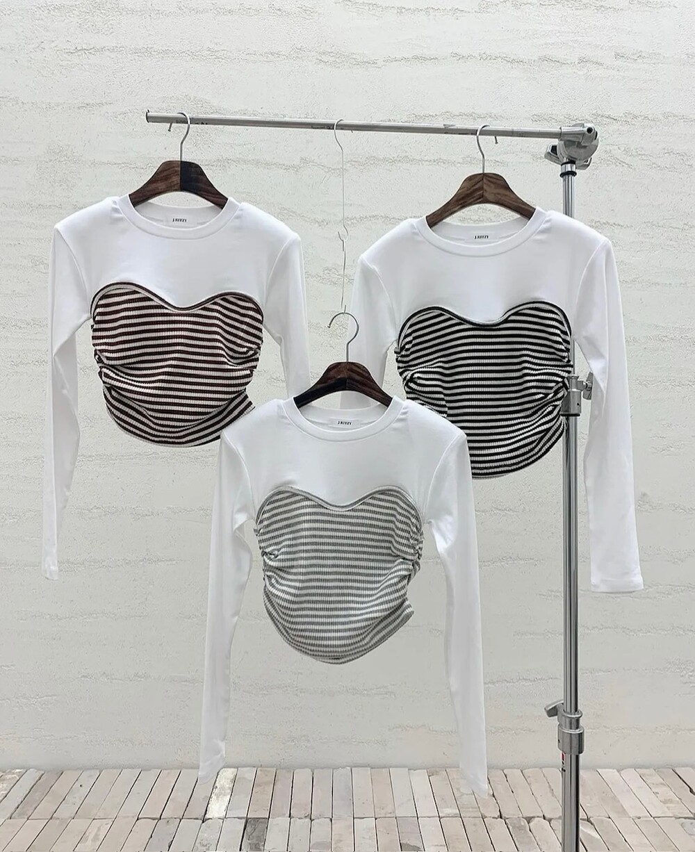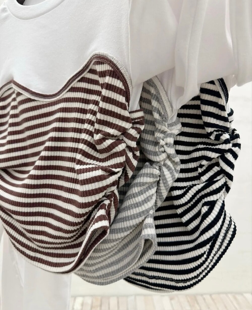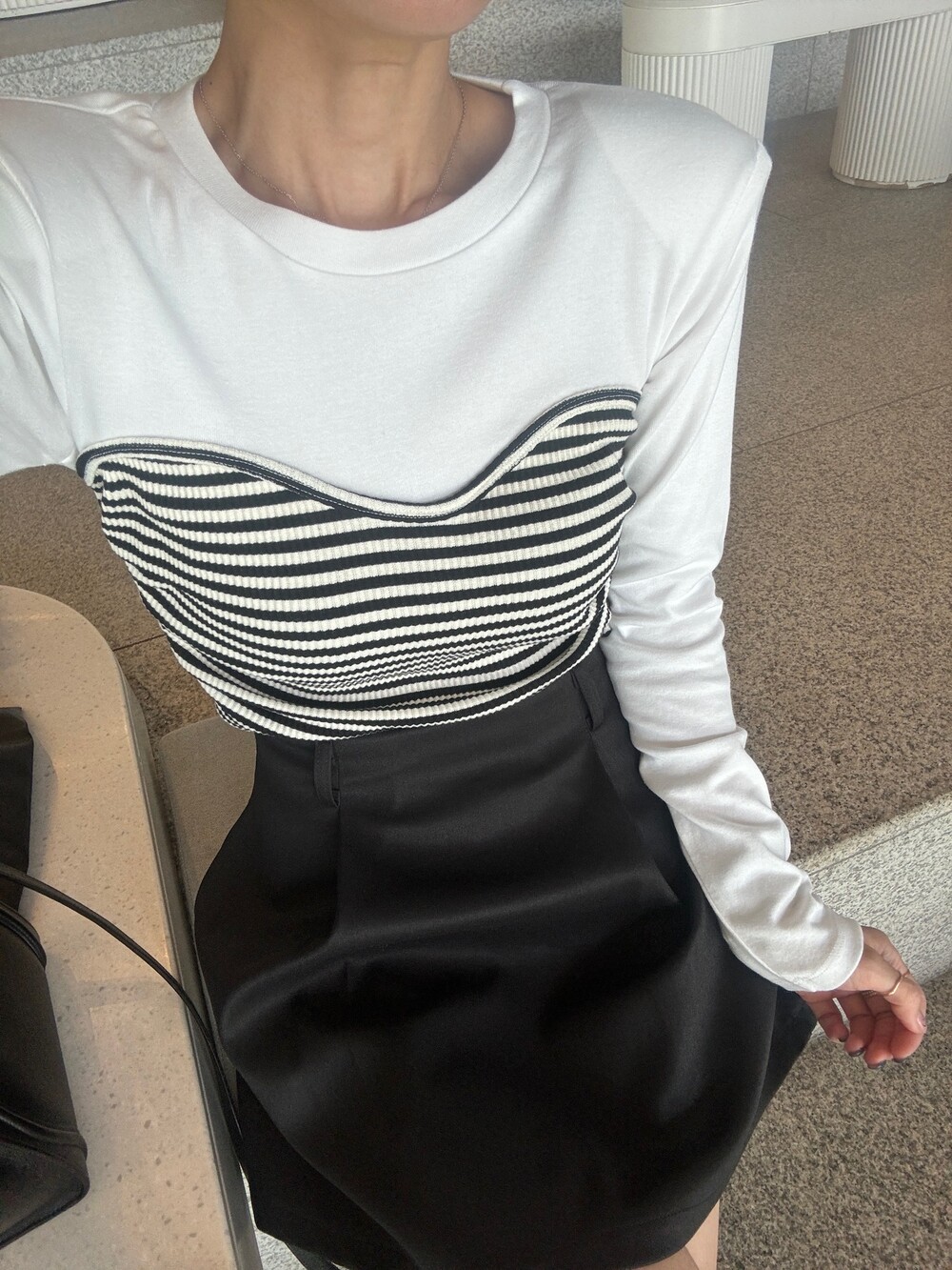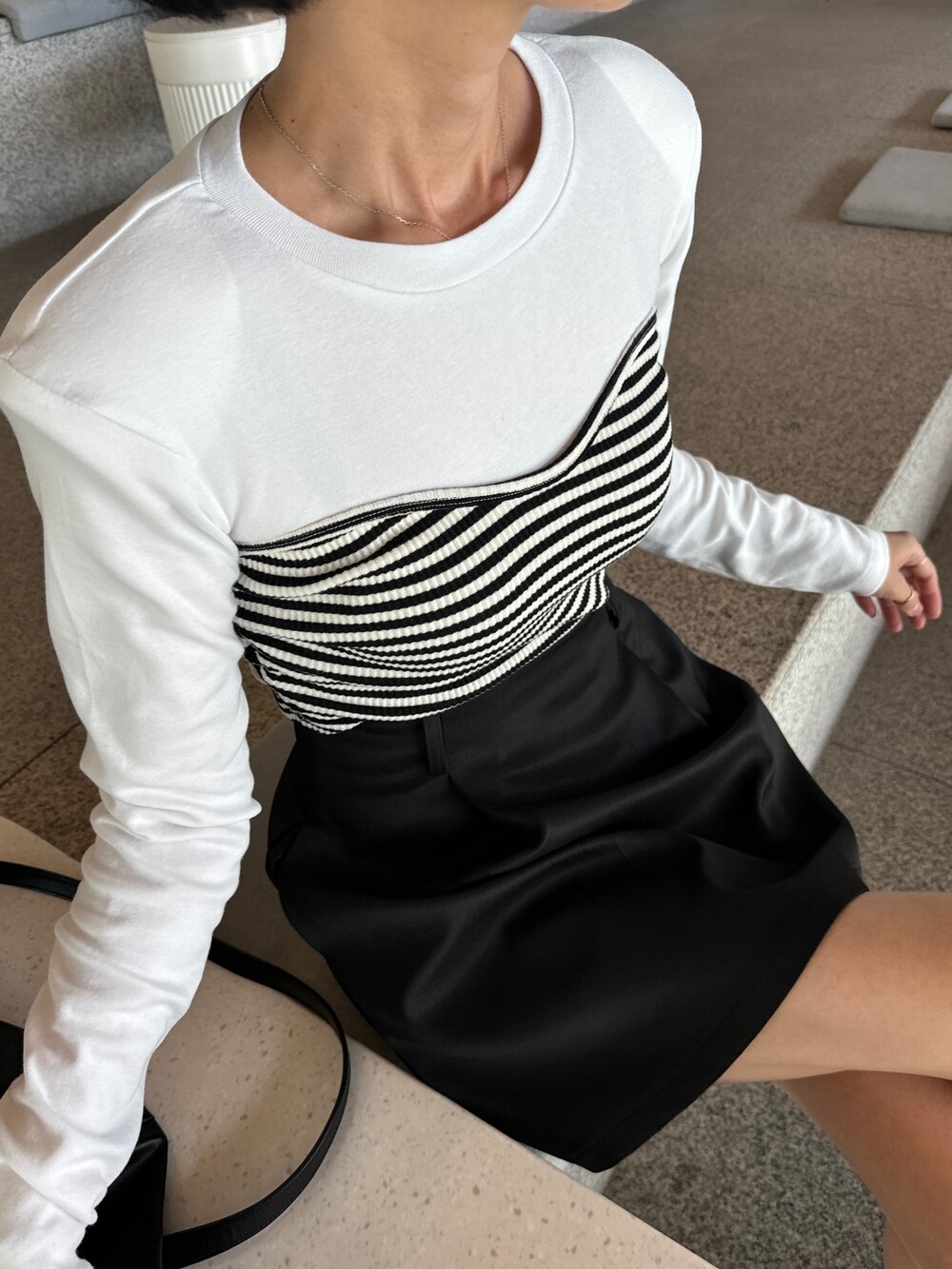 사이드 셔링 스트라이프 레이어드 티셔츠