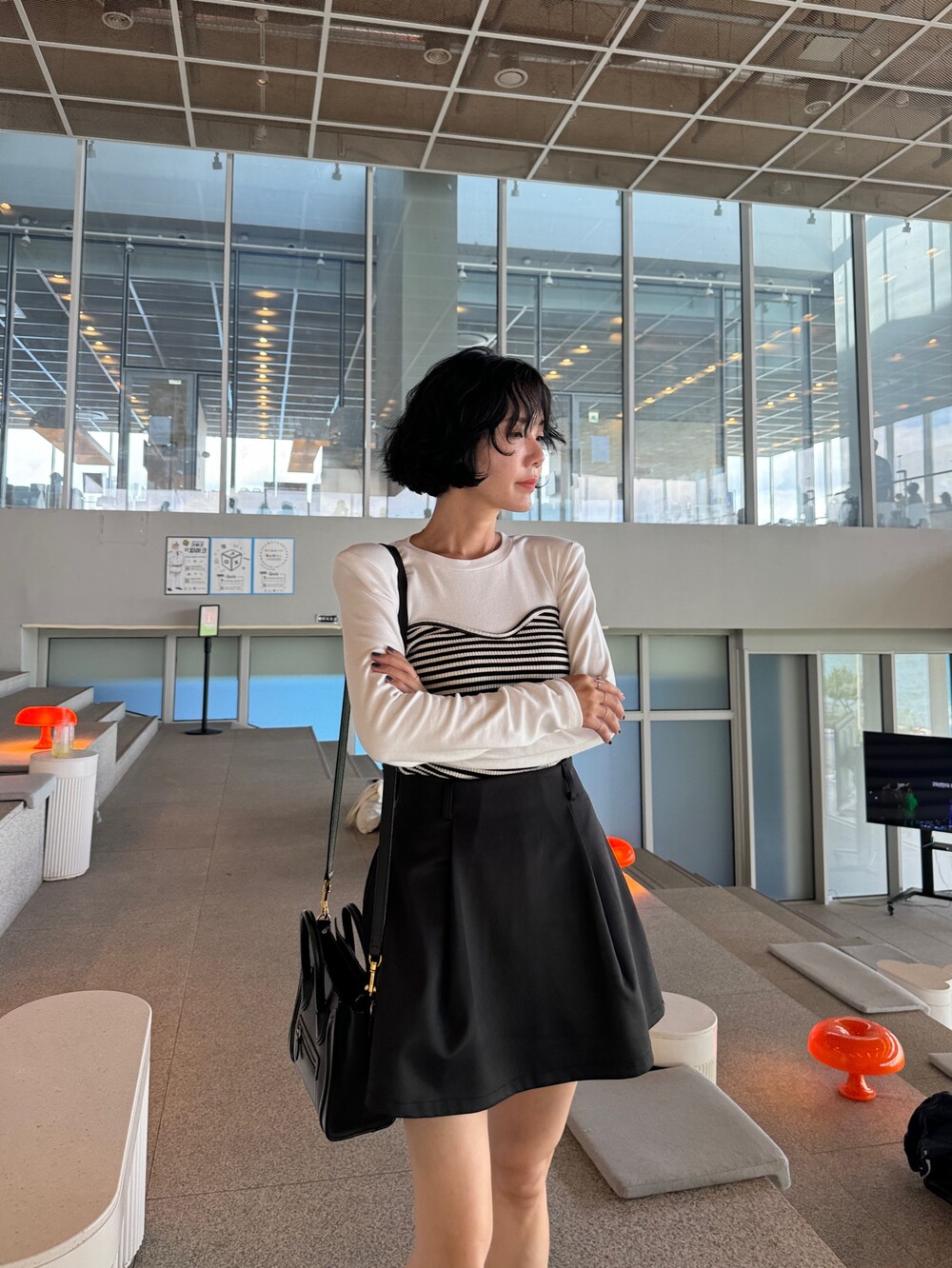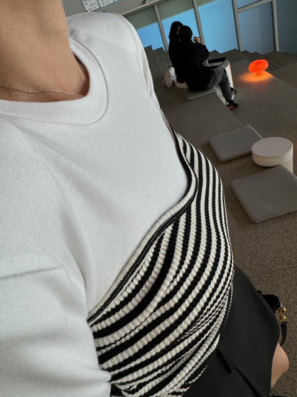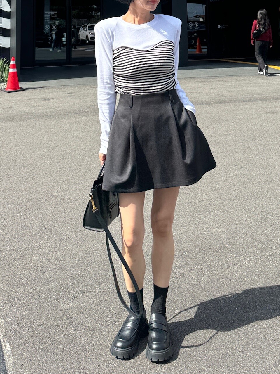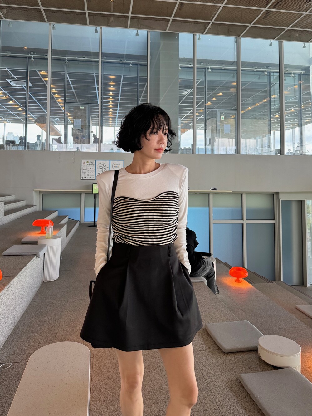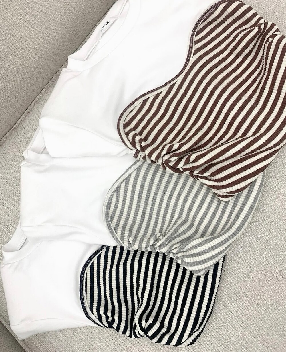 사이드 셔링 스트라이프 레이어드 티셔츠