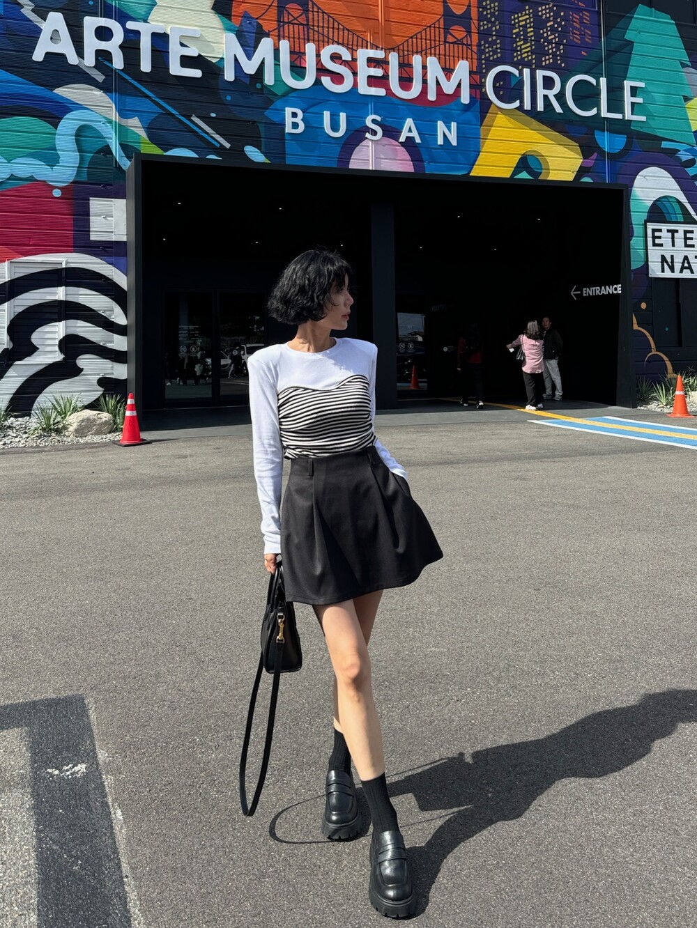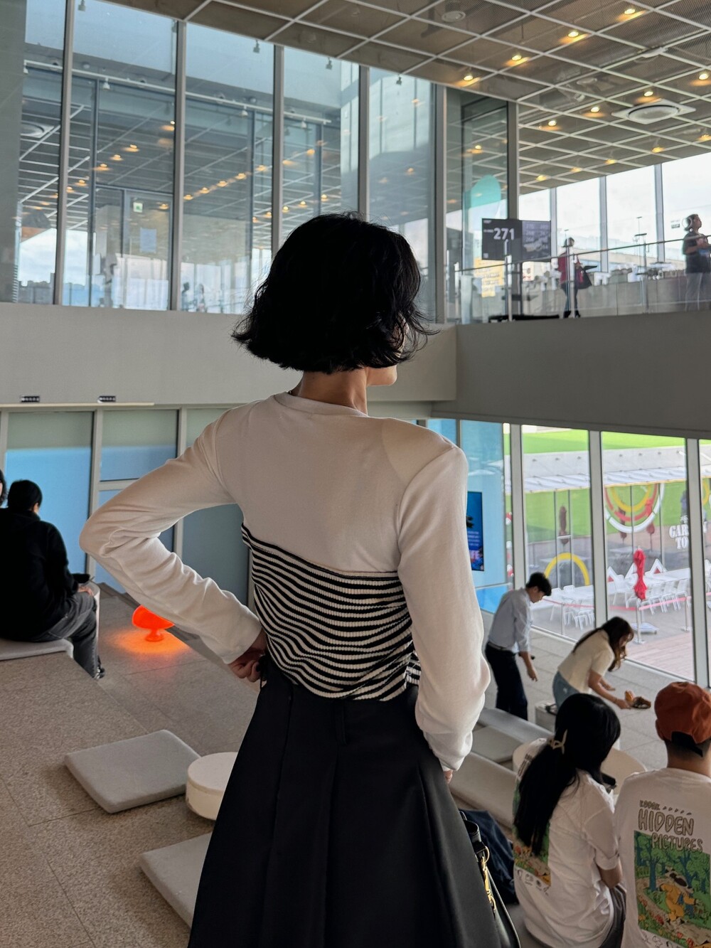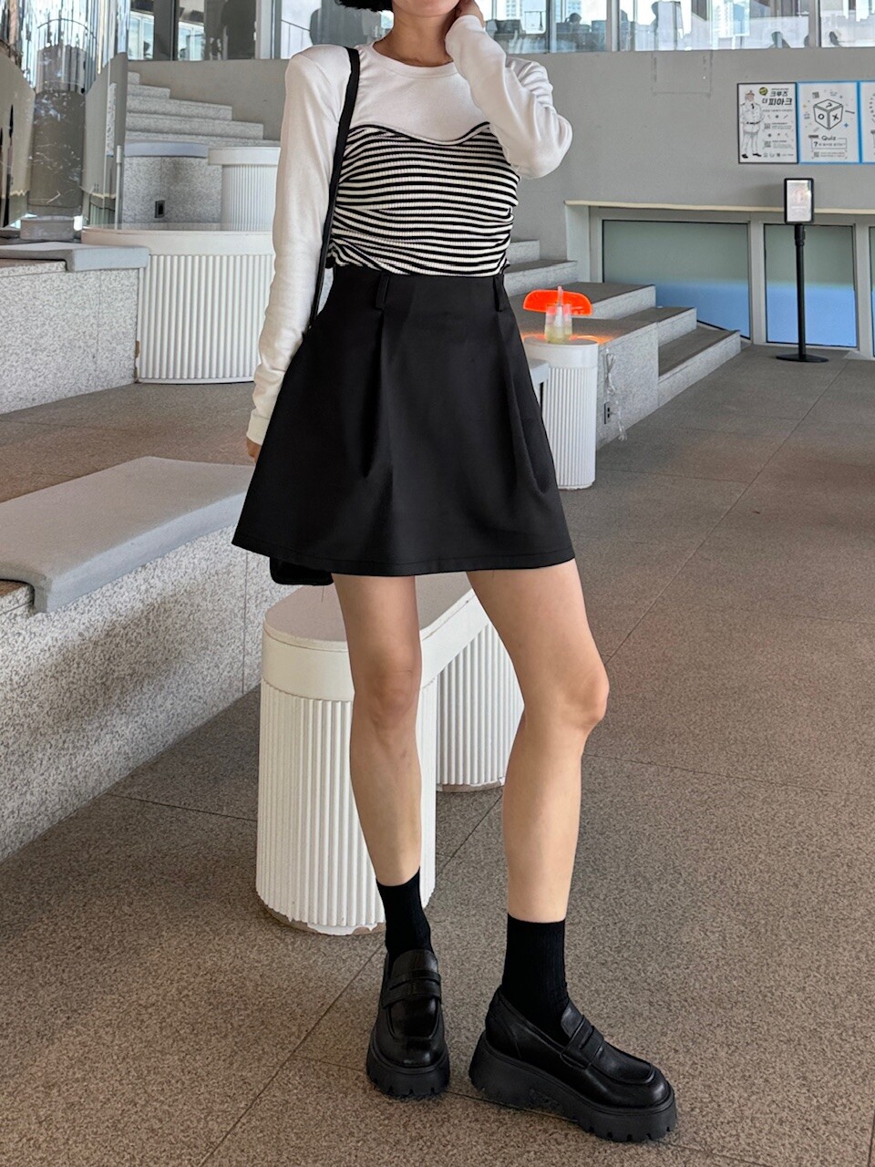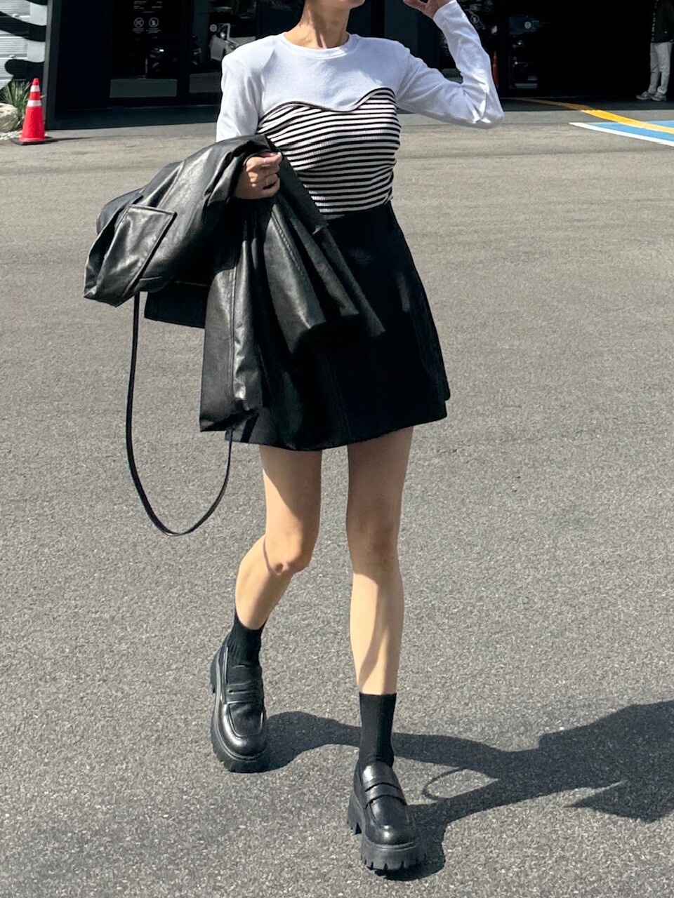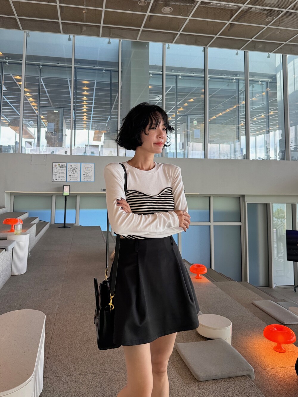사이드 셔링 스트라이프 레이어드 티셔츠