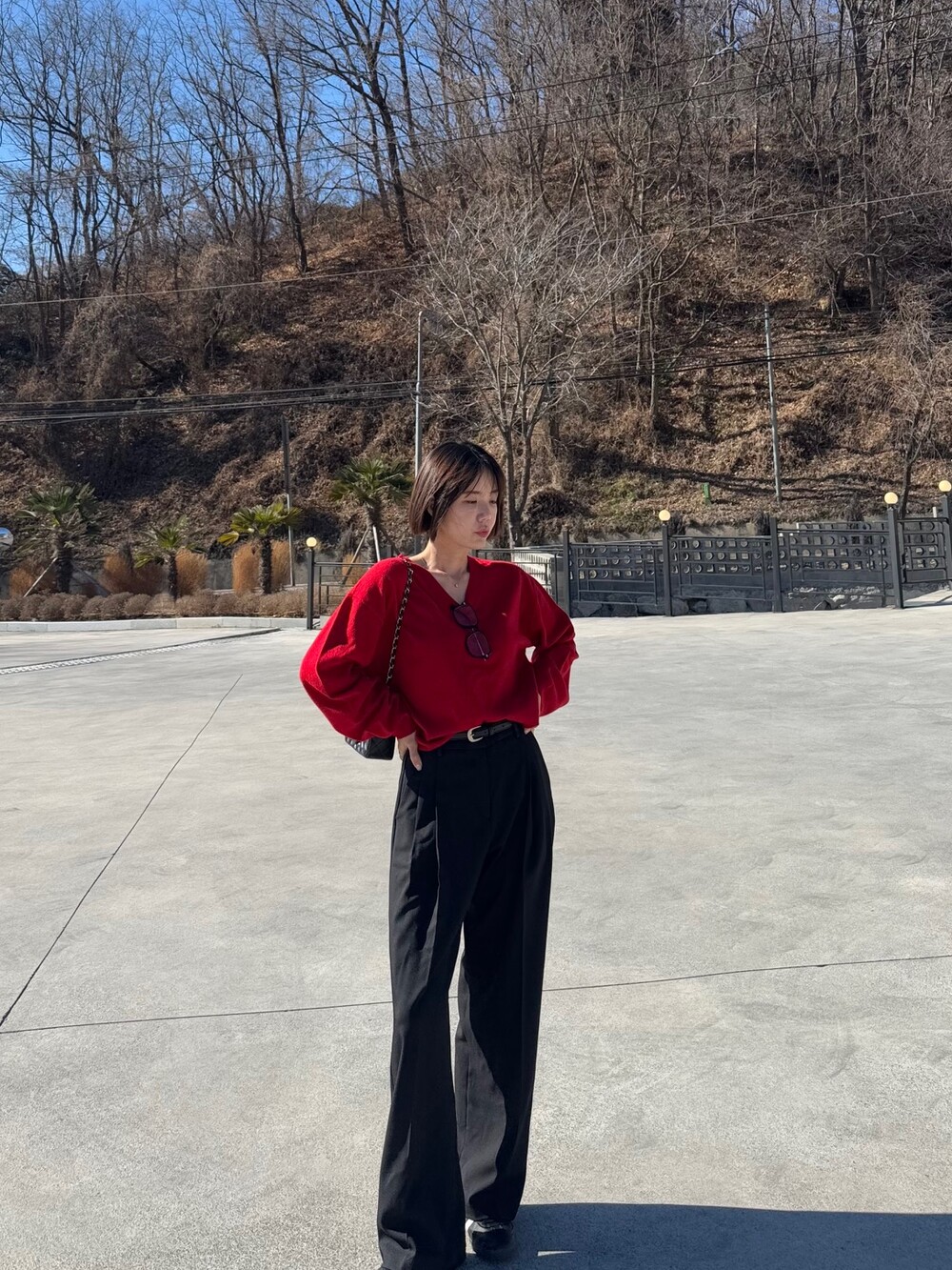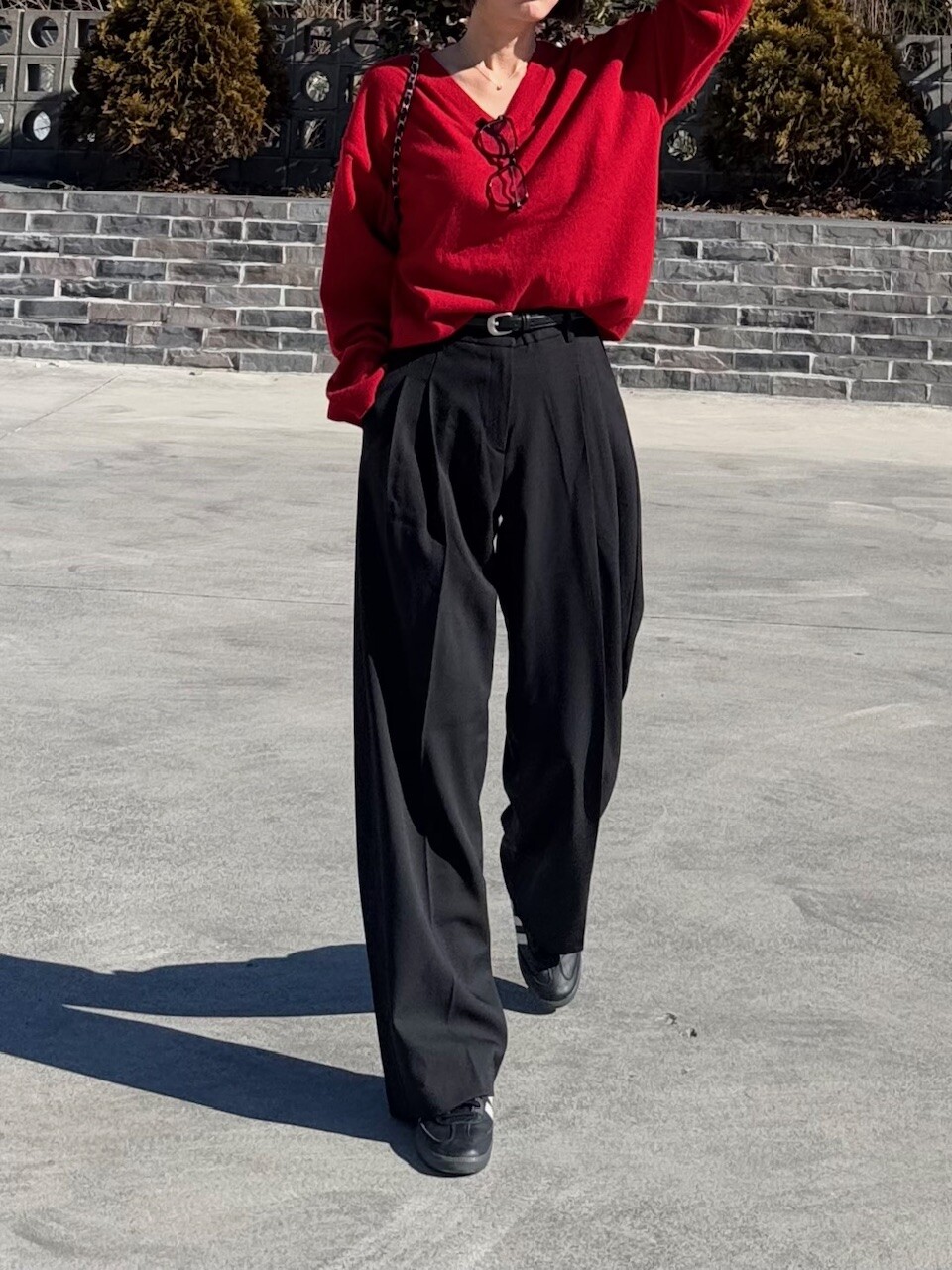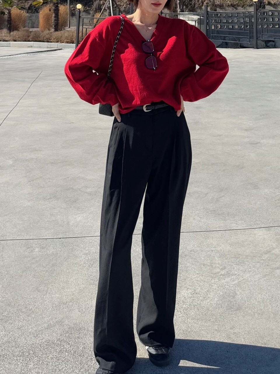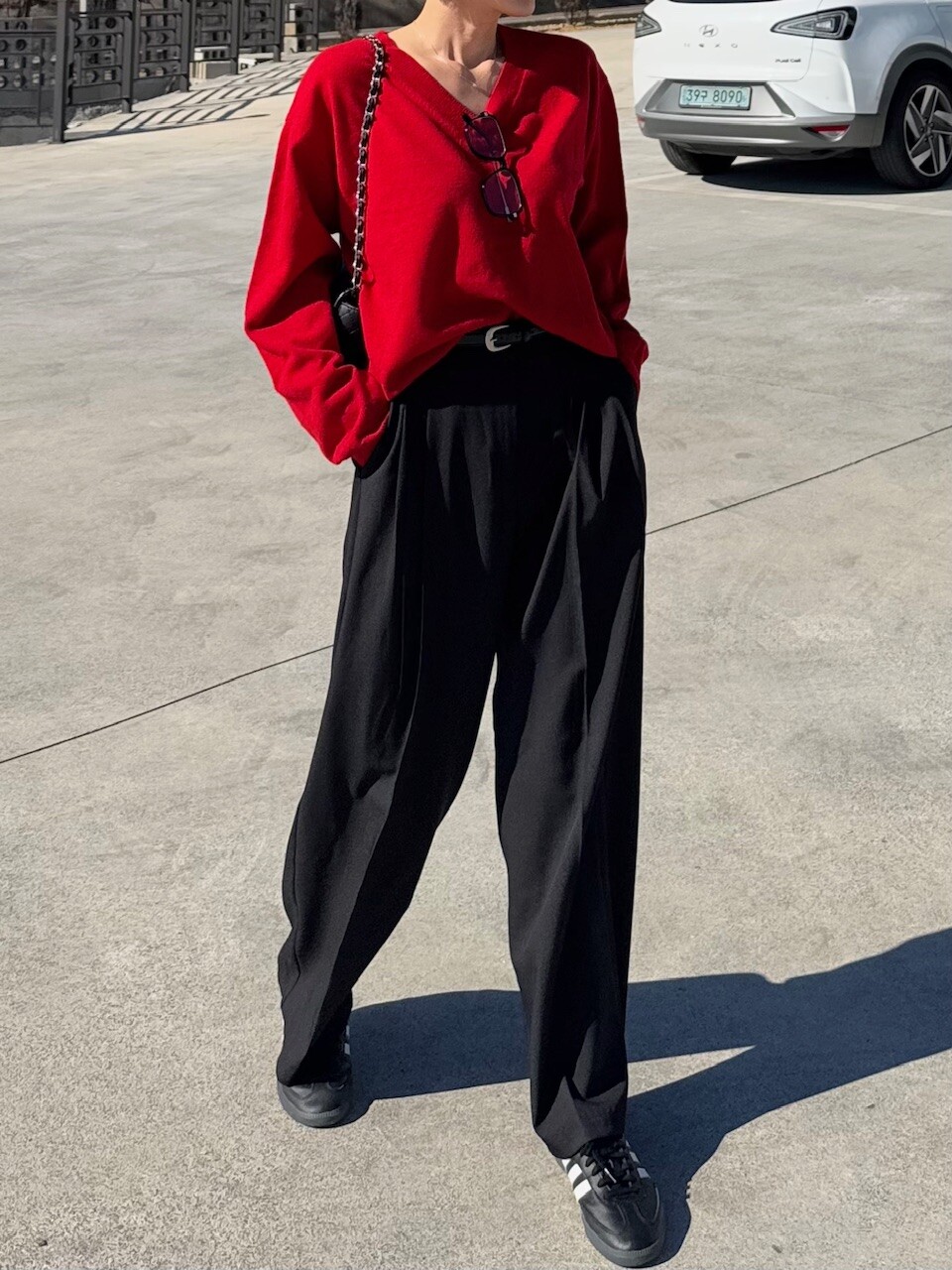 특징: 신축성 O, 비침 X, 안감 X , 두께감 보통, 무게감 보통