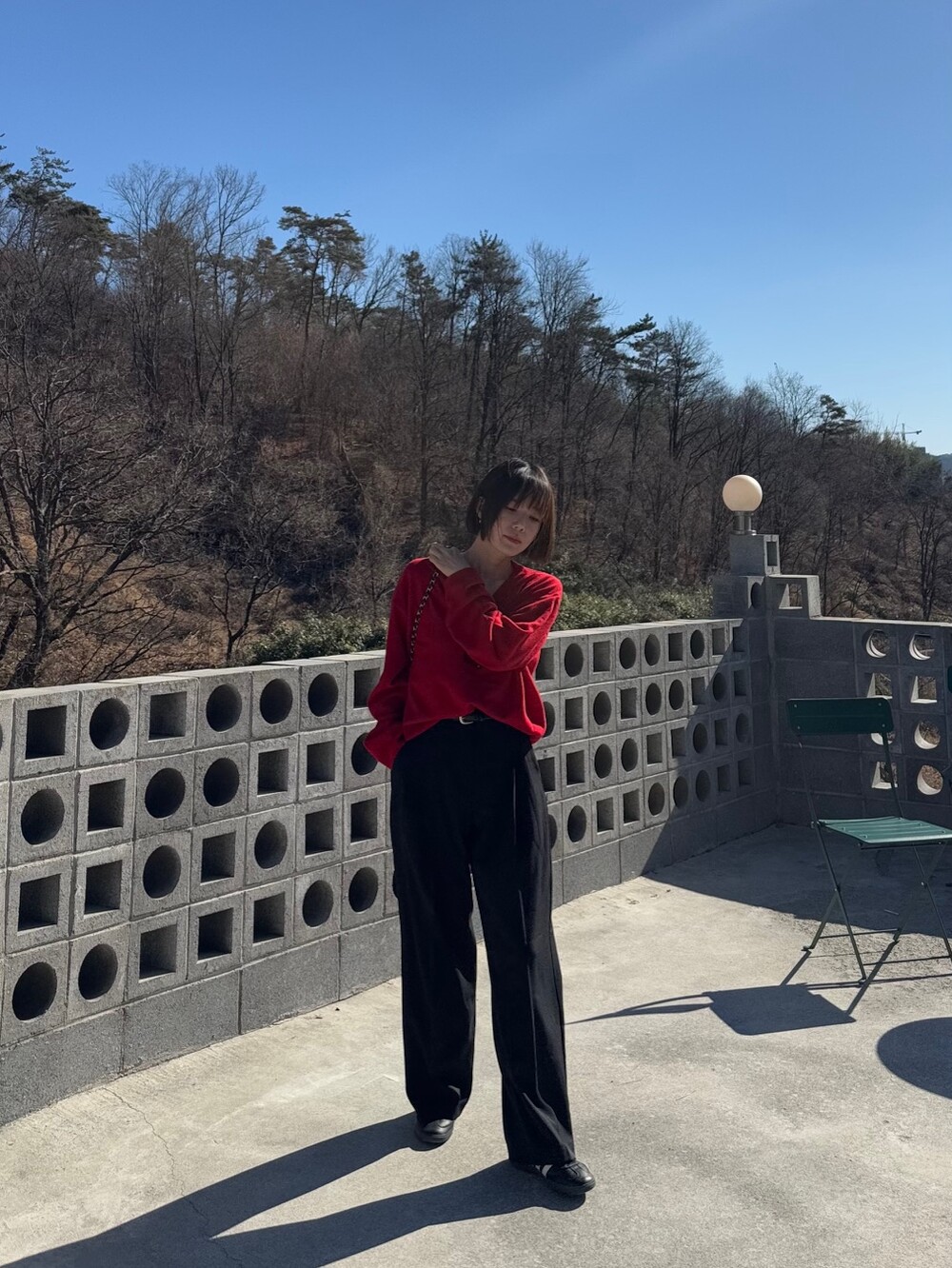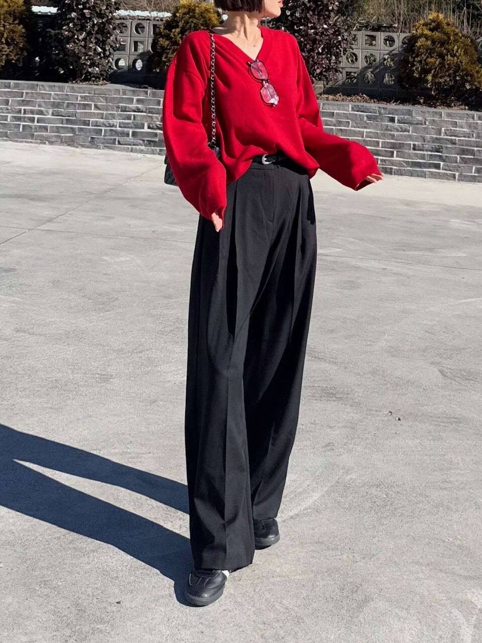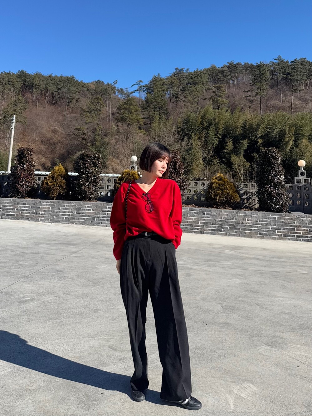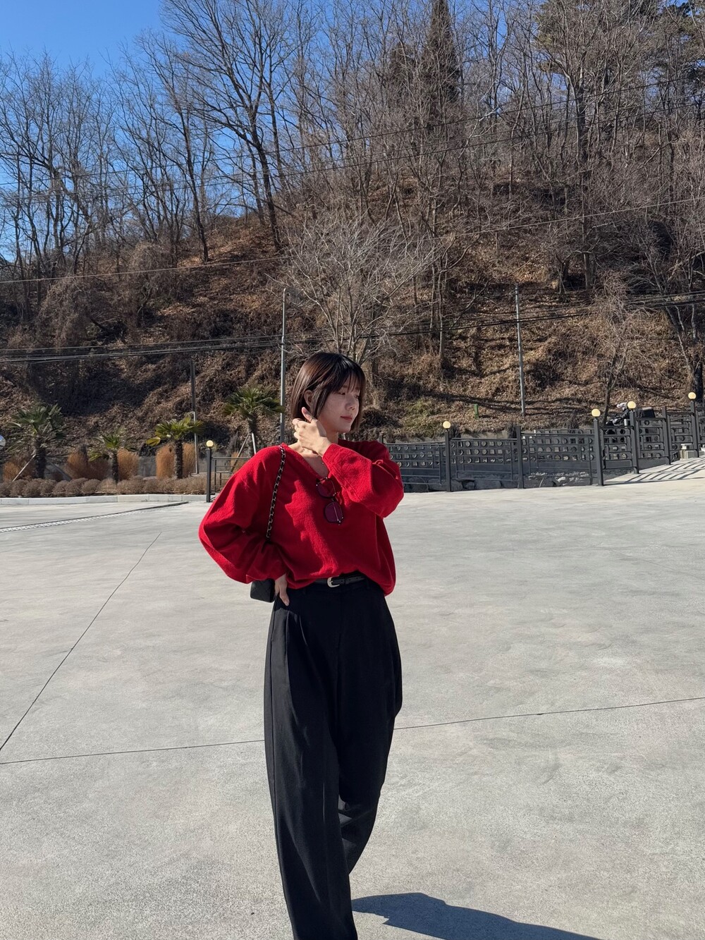 특징: 신축성 O, 비침 X, 안감 X , 두께감 보통, 무게감 보통
