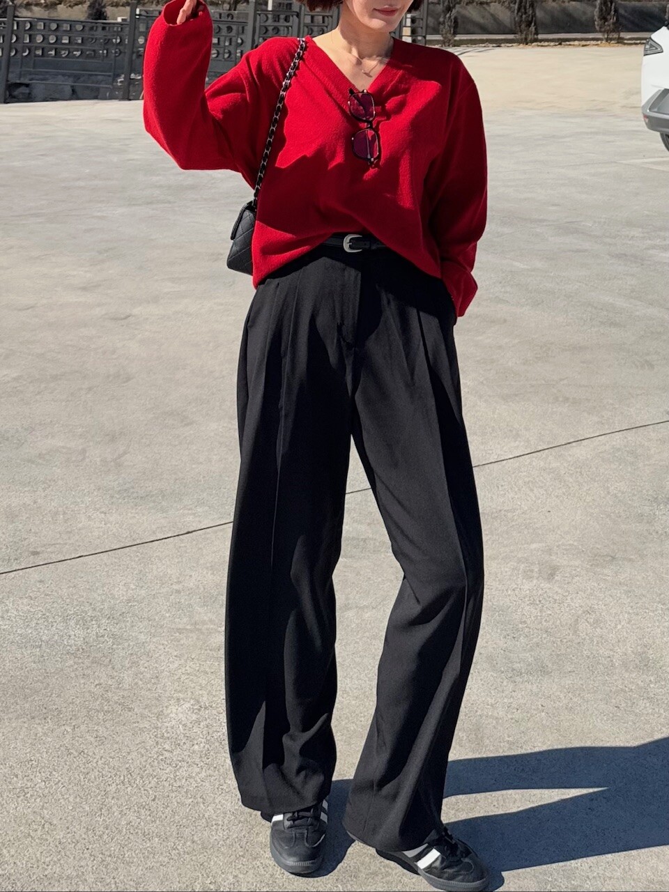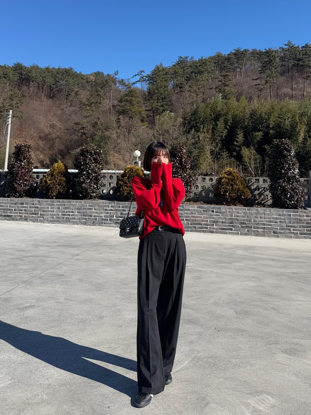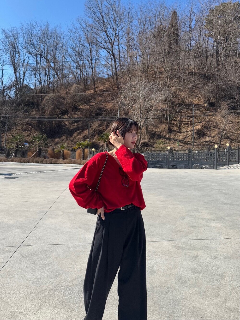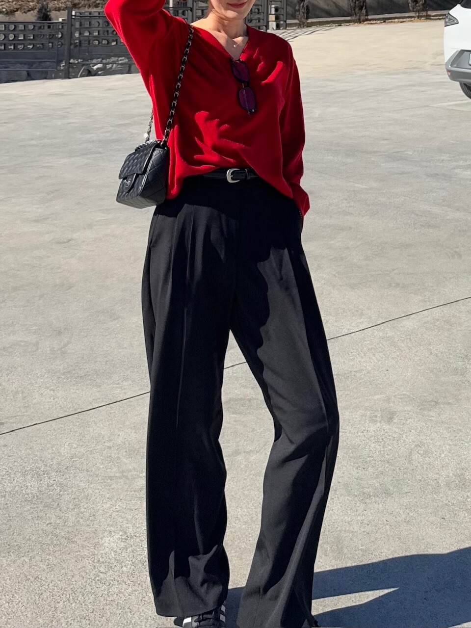 특징: 신축성 O, 비침 X, 안감 X , 두께감 보통, 무게감 보통