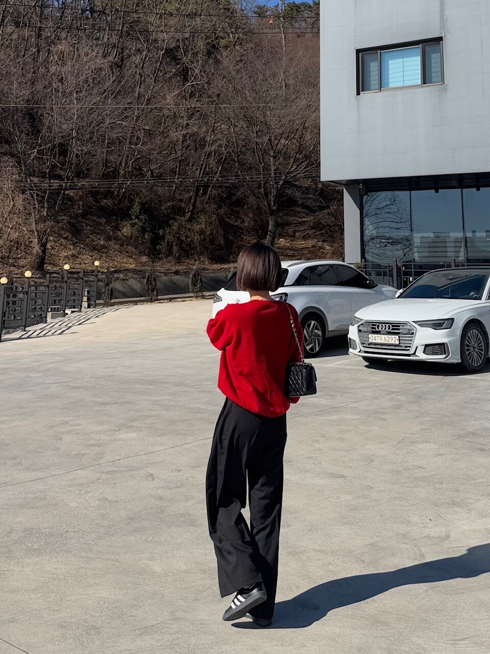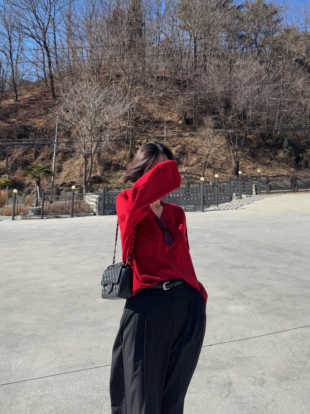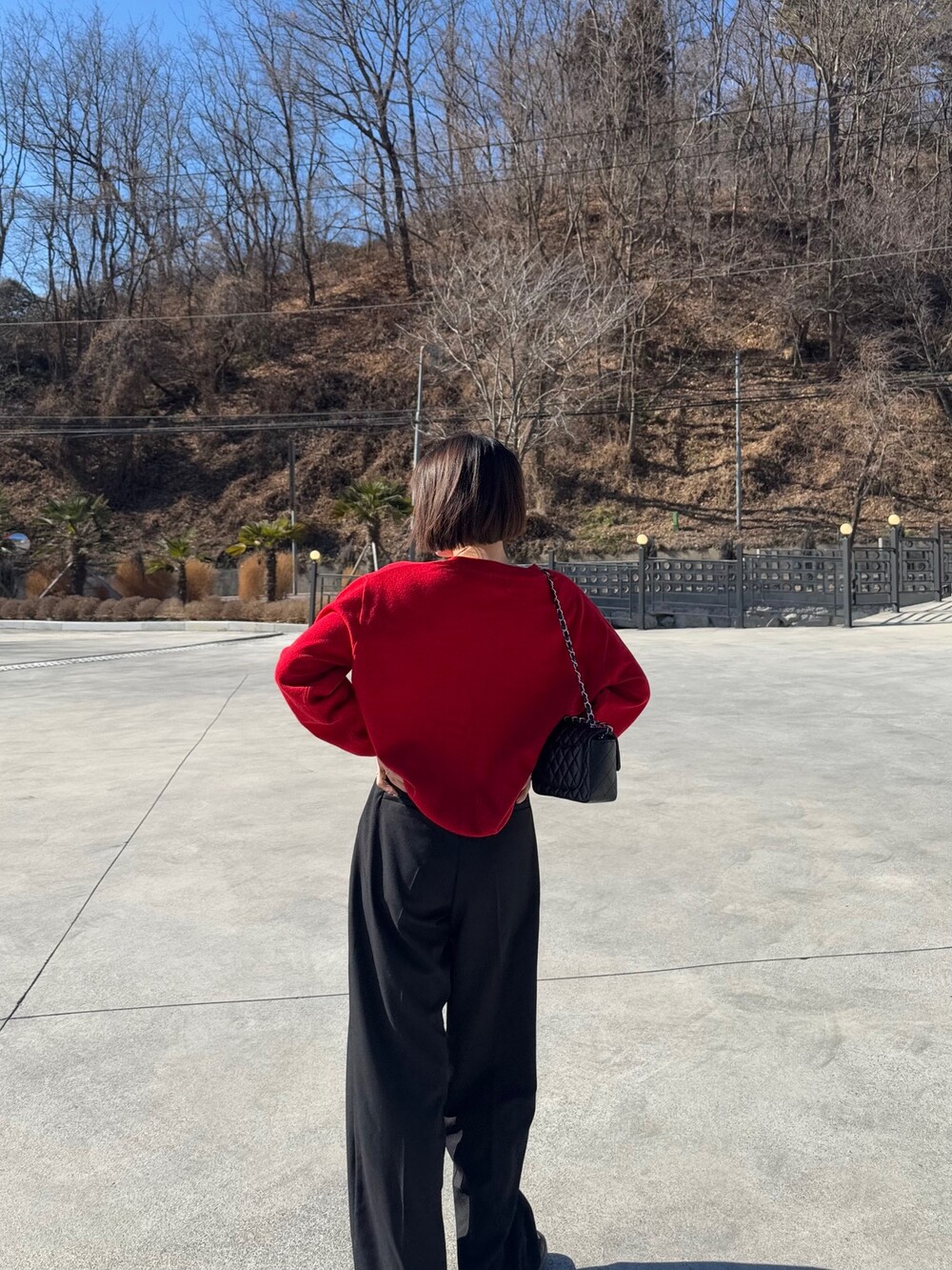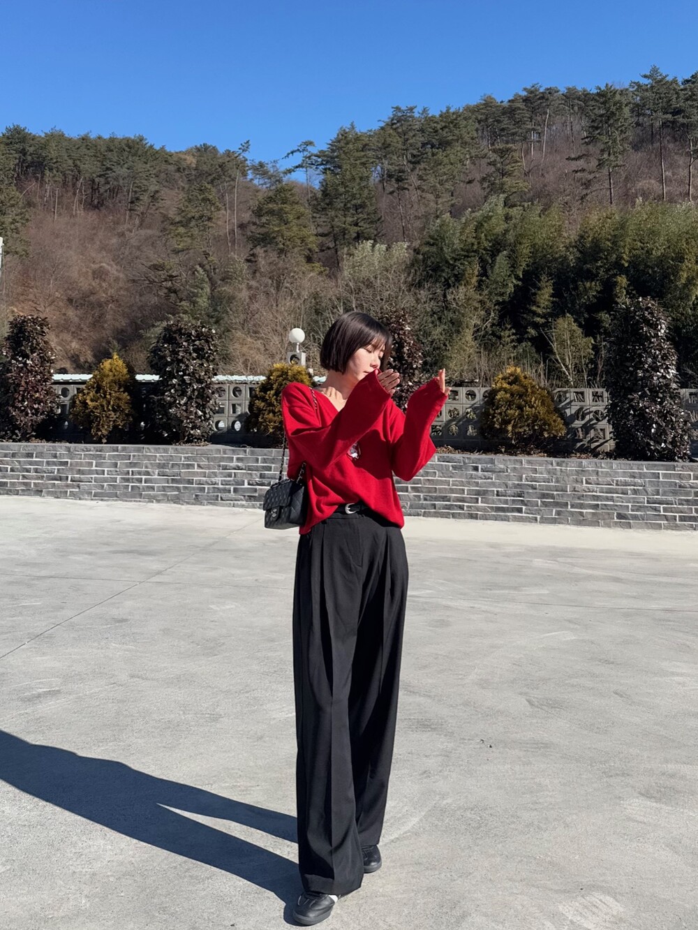 특징: 신축성 O, 비침 X, 안감 X , 두께감 보통, 무게감 보통