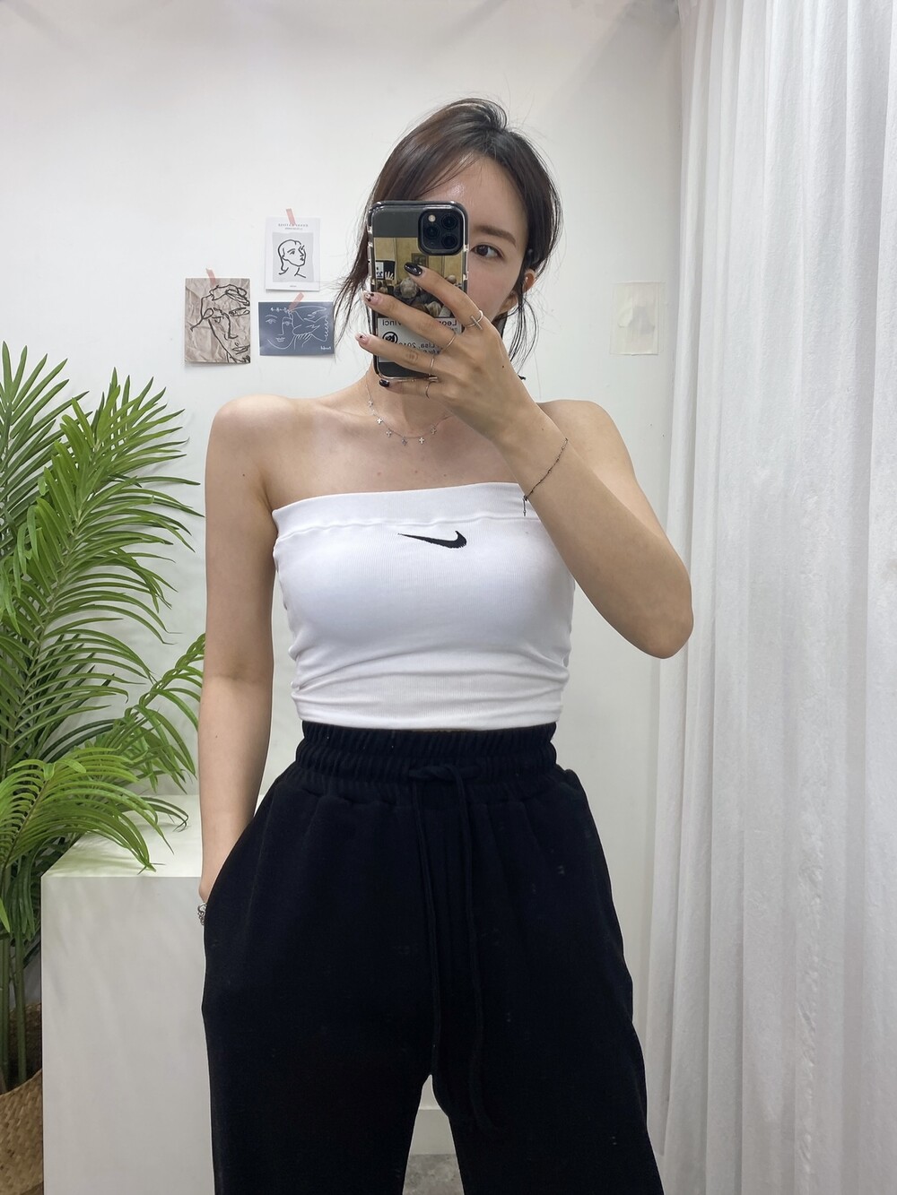 이너로 힙하게 포인트주기 좋은 로고 튜브탑이예요