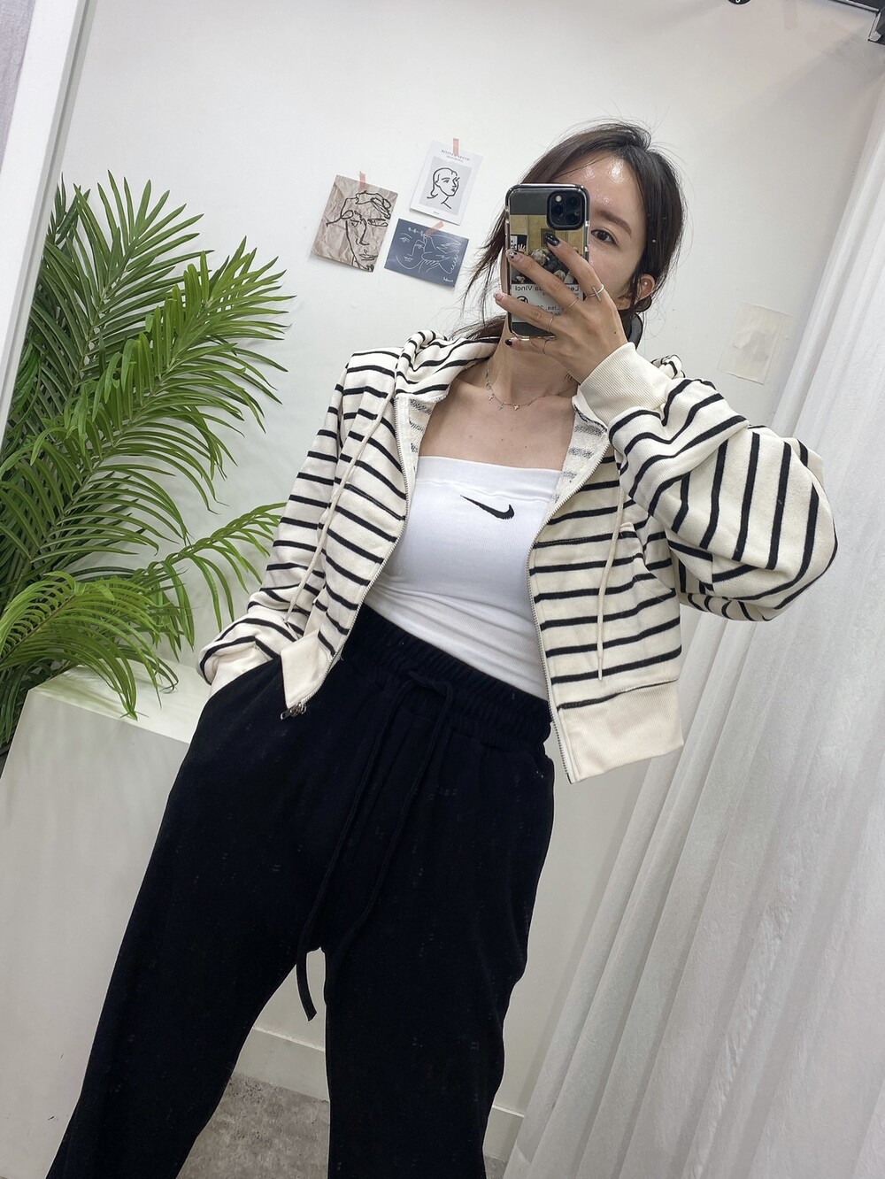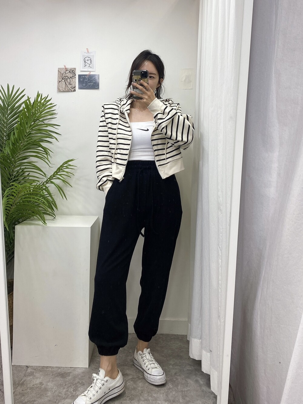 특징: 신축성 O , 비침 X, 안감 X , 두께감 보통, 무게감 가벼움, 패드 O