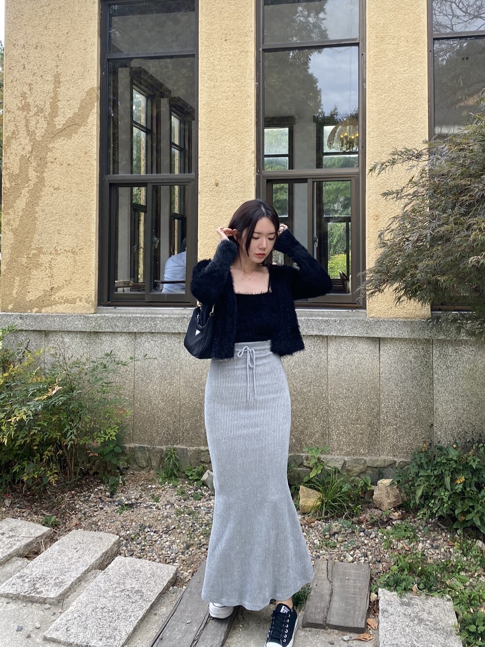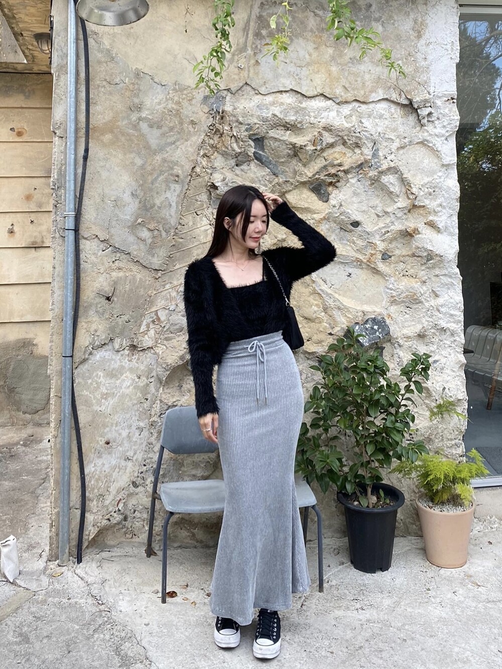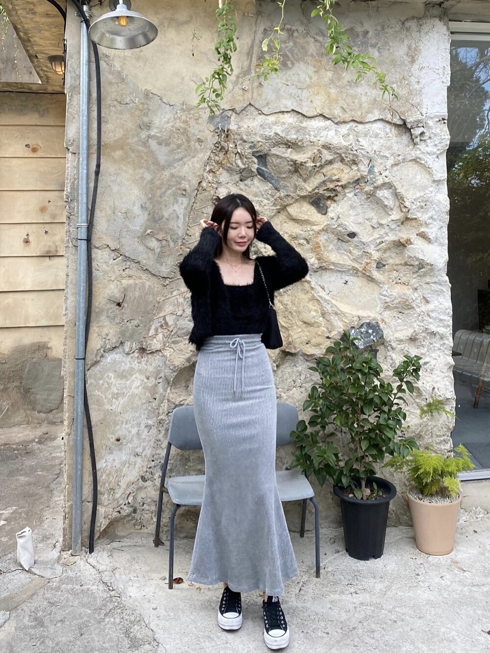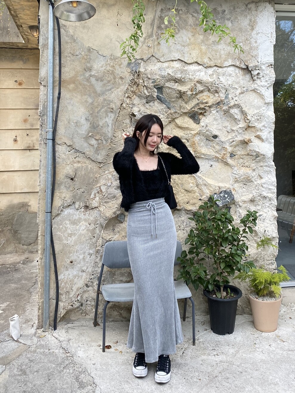 슬림한 라인의 벨로아 머메이드 롱 스커트