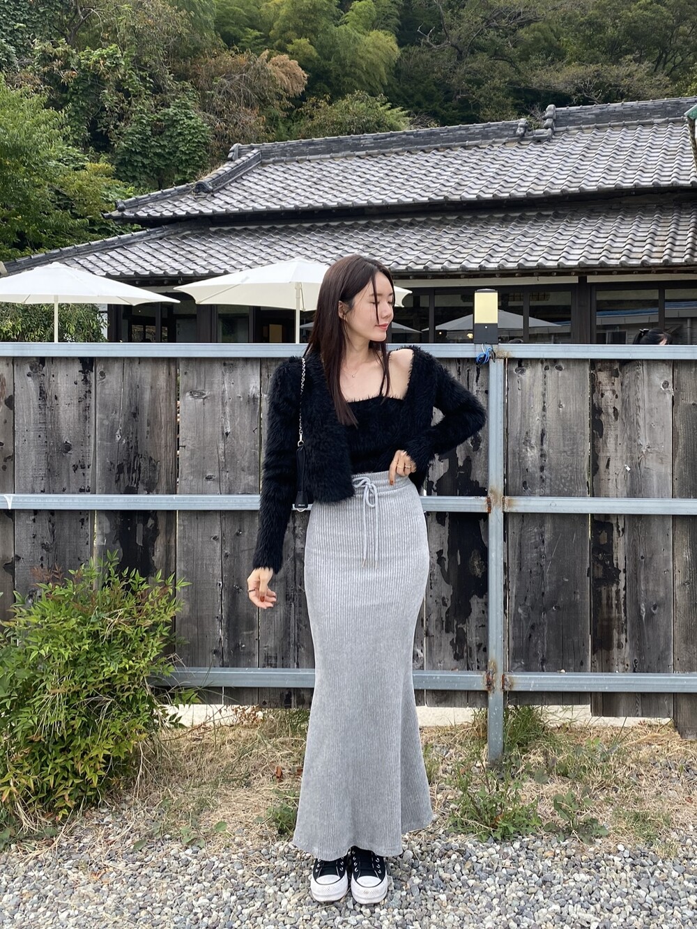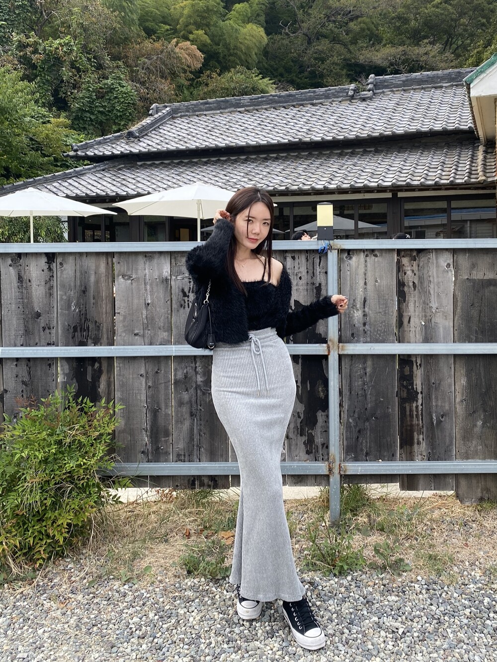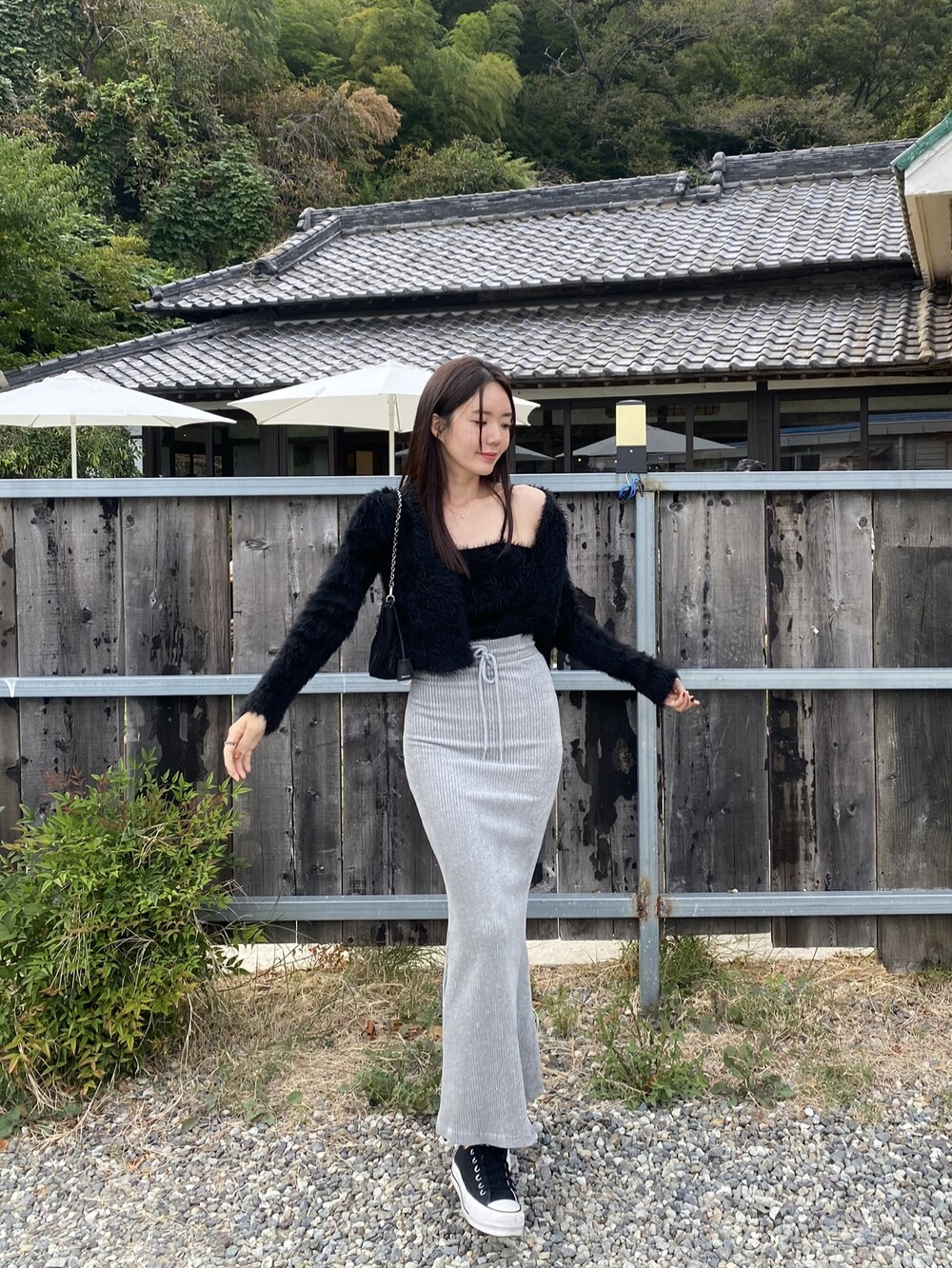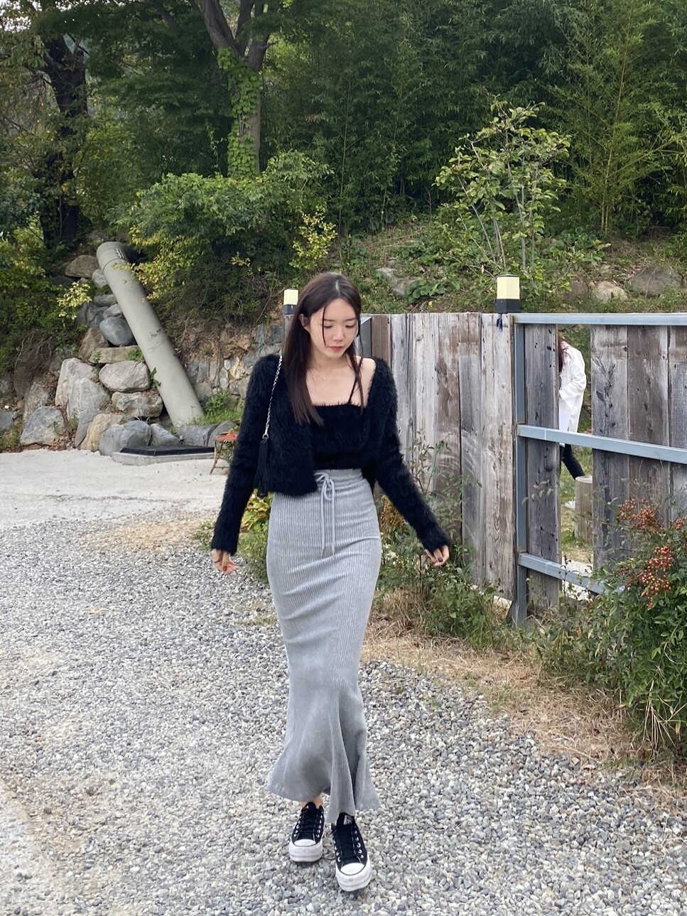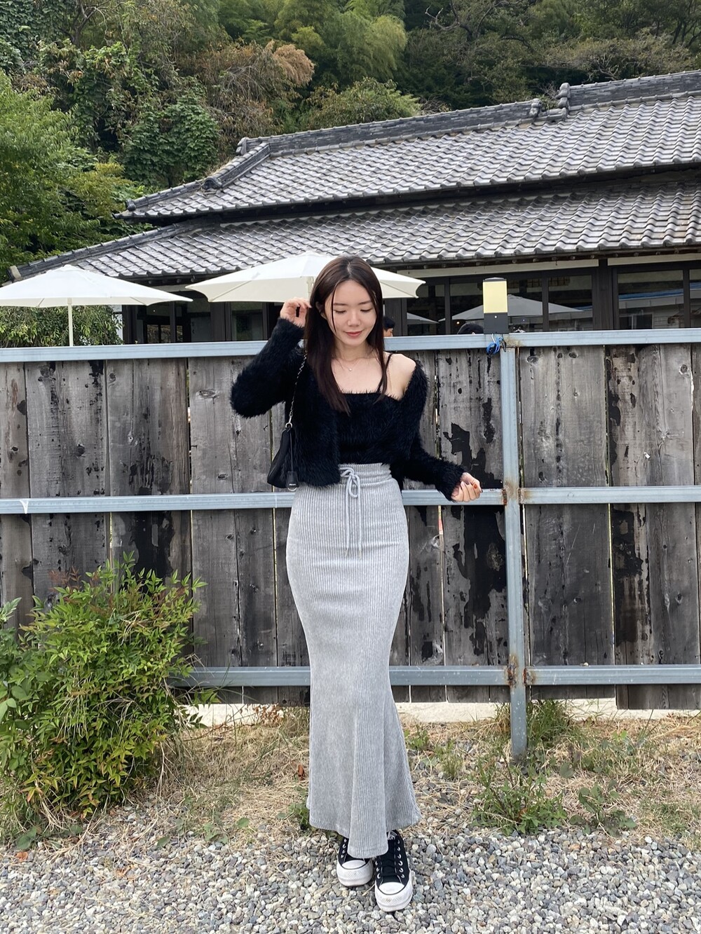 슬림한 라인의 벨로아 머메이드 롱 스커트