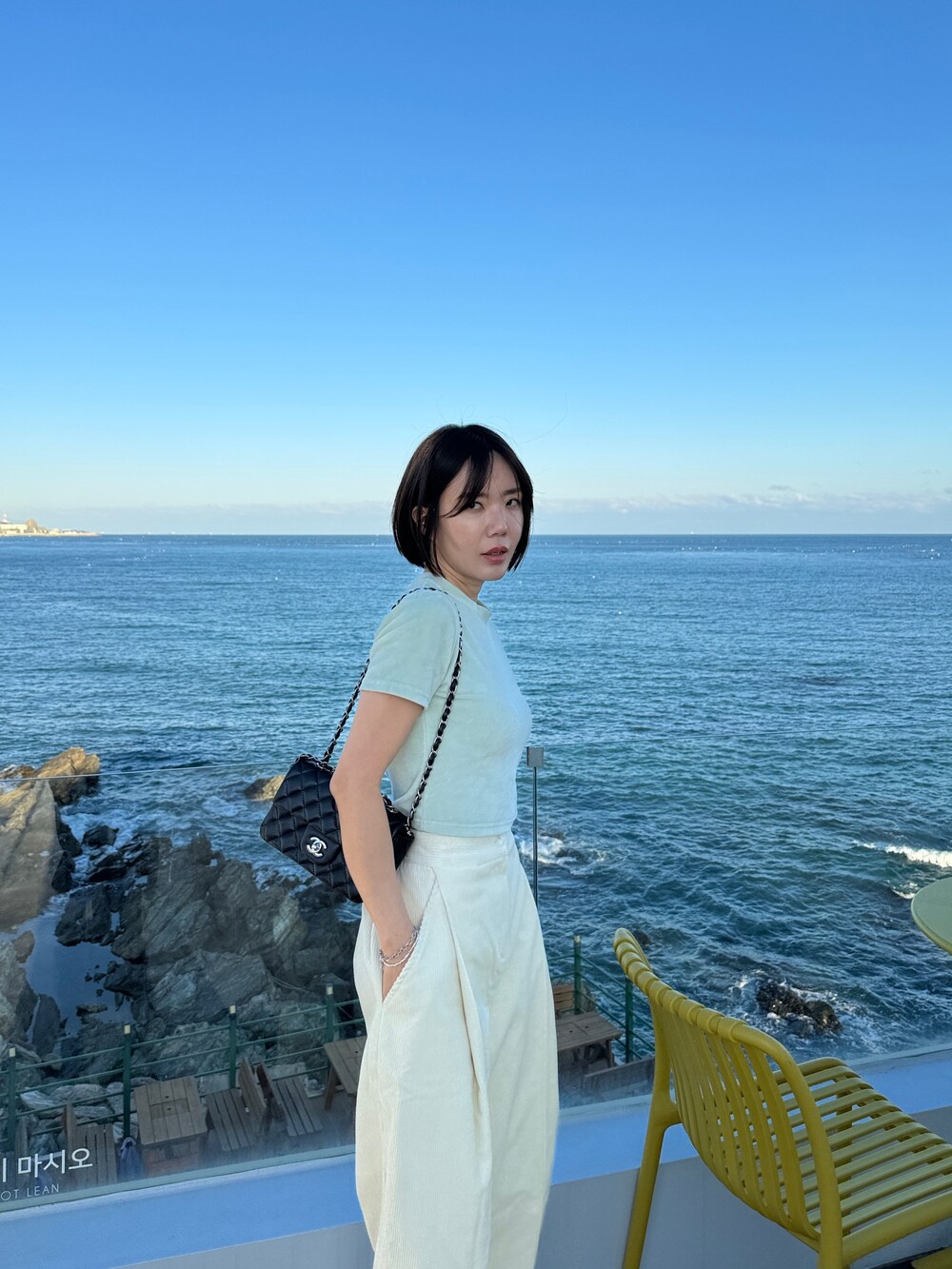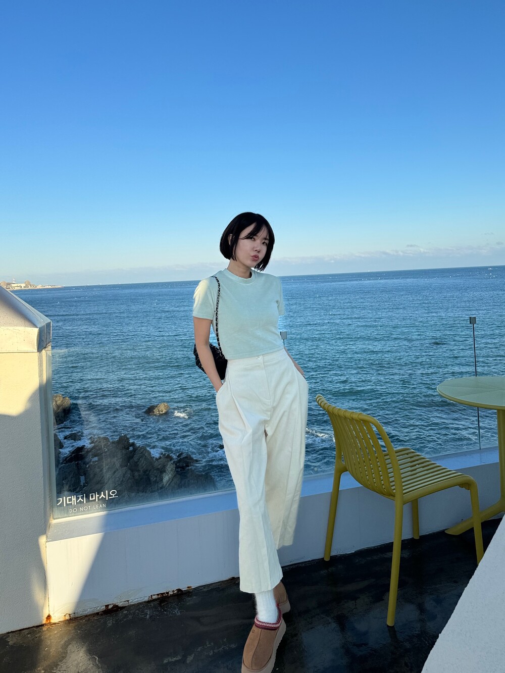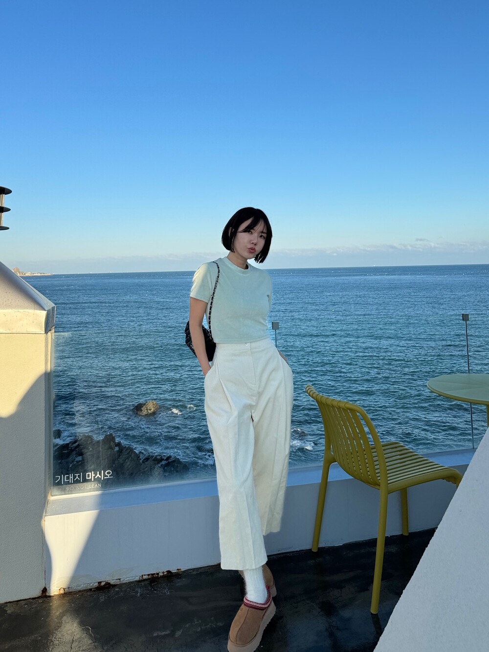 특징: 신축성 O , 비침 X, 안감 X , 두께감 보통, 무게감 보통