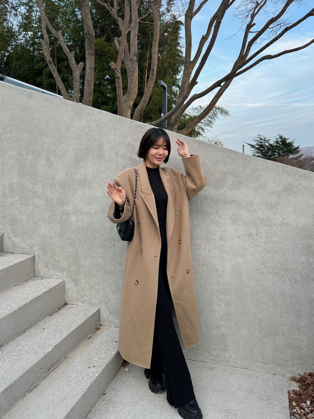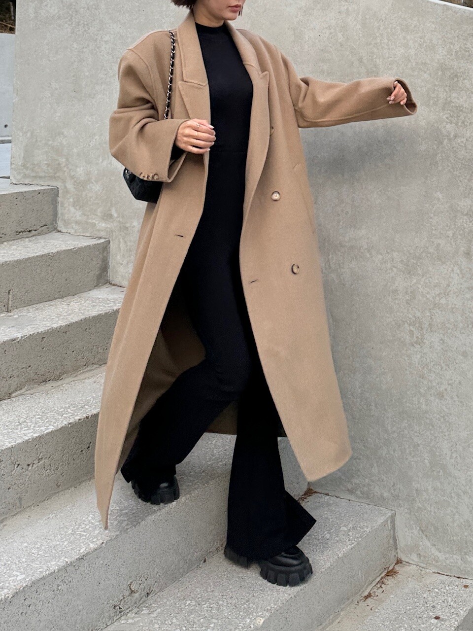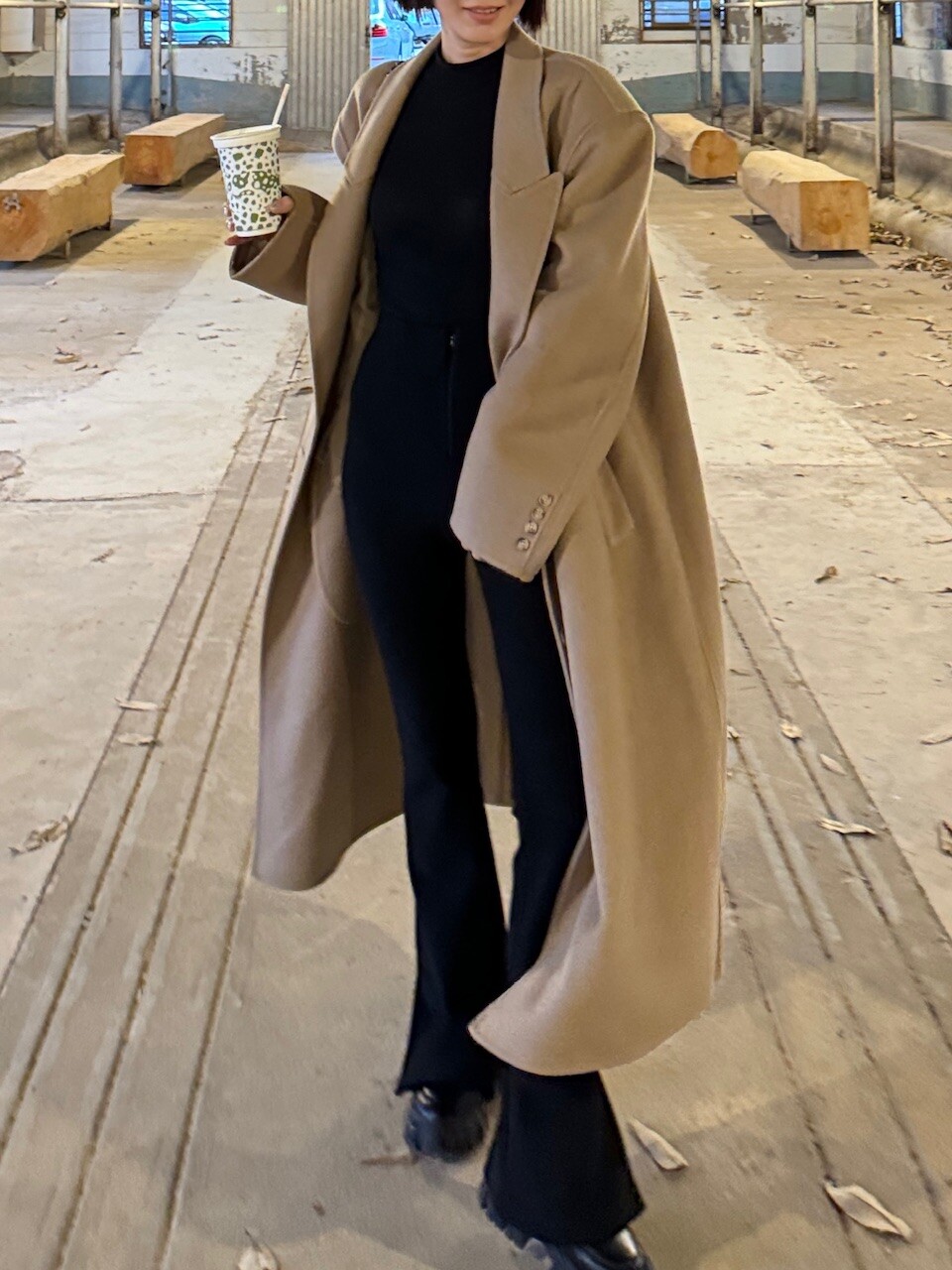 울80%원단의 고급스러운 해드메이드 롱코트예요