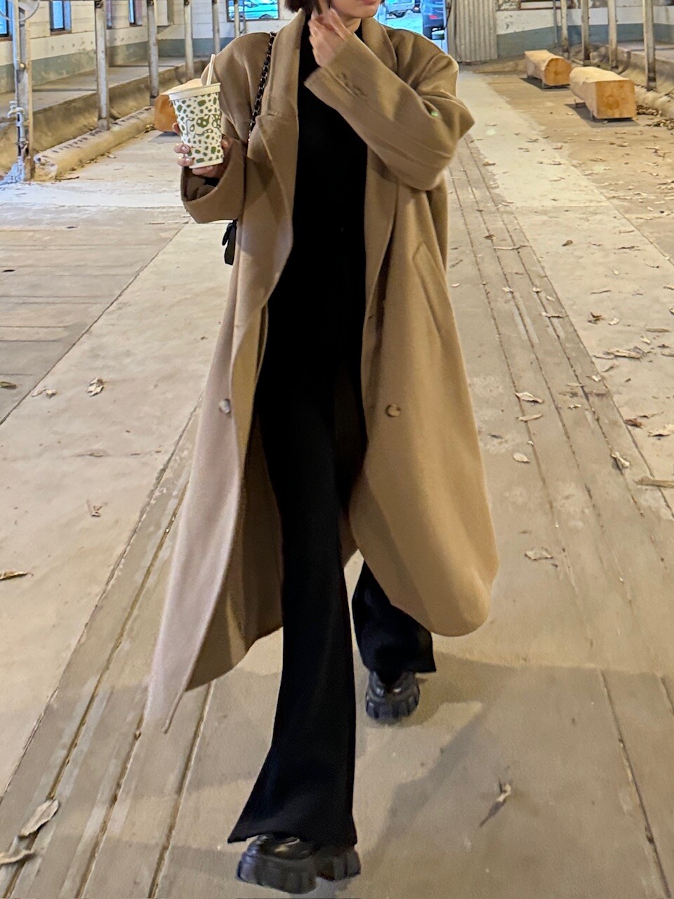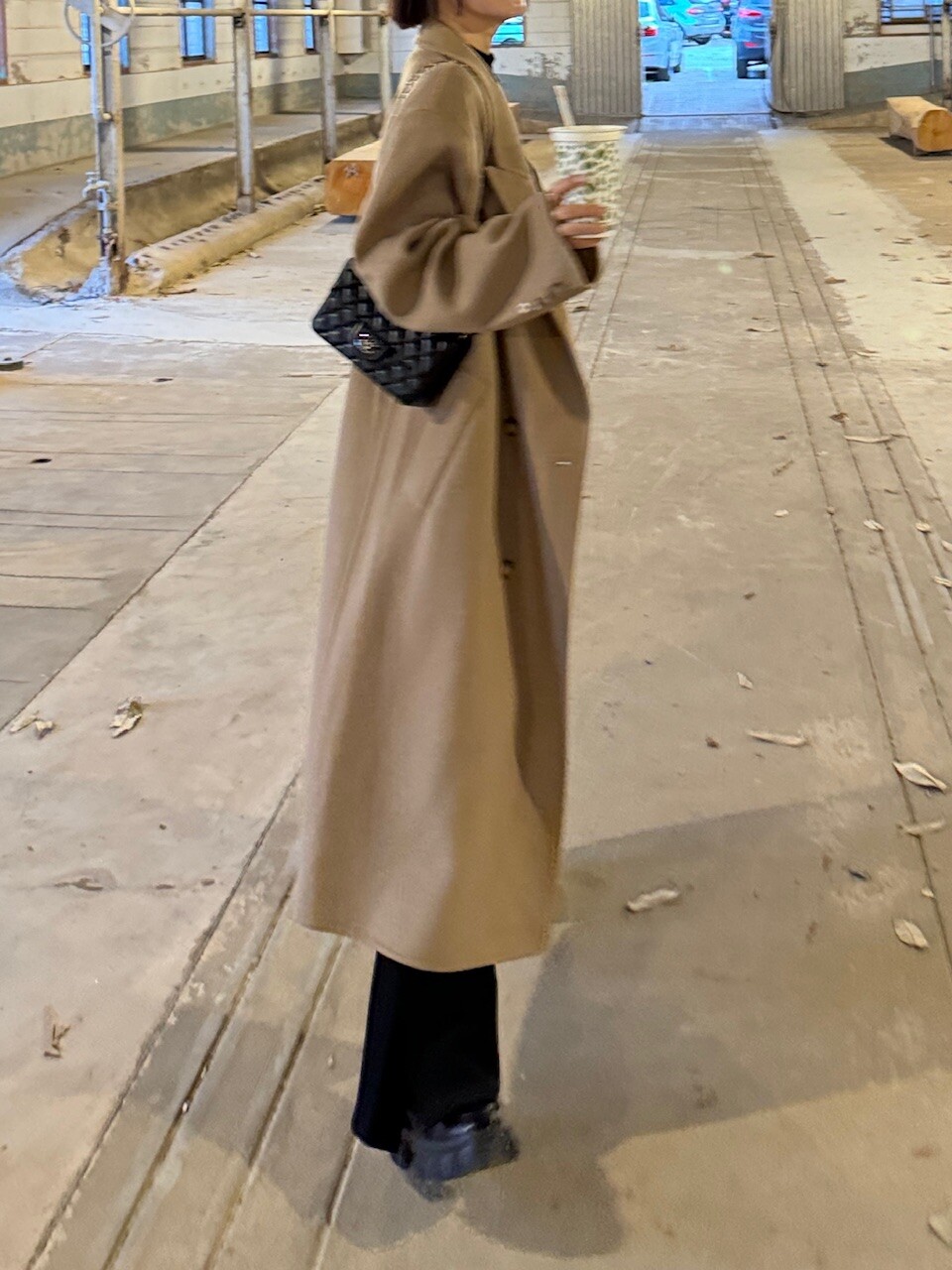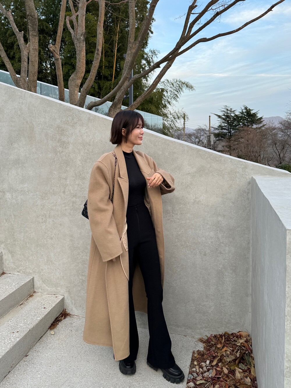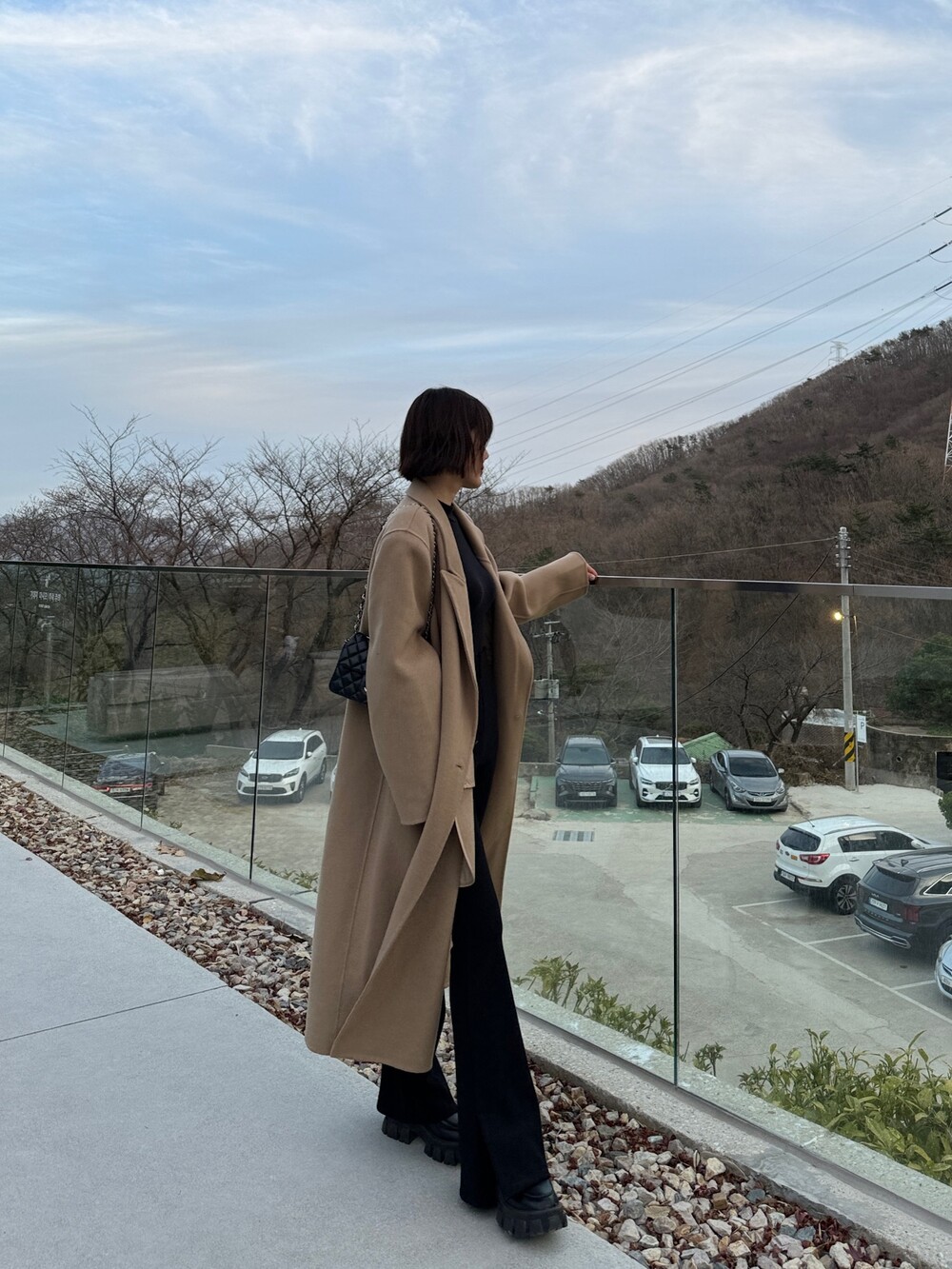 울80%원단의 고급스러운 해드메이드 롱코트예요