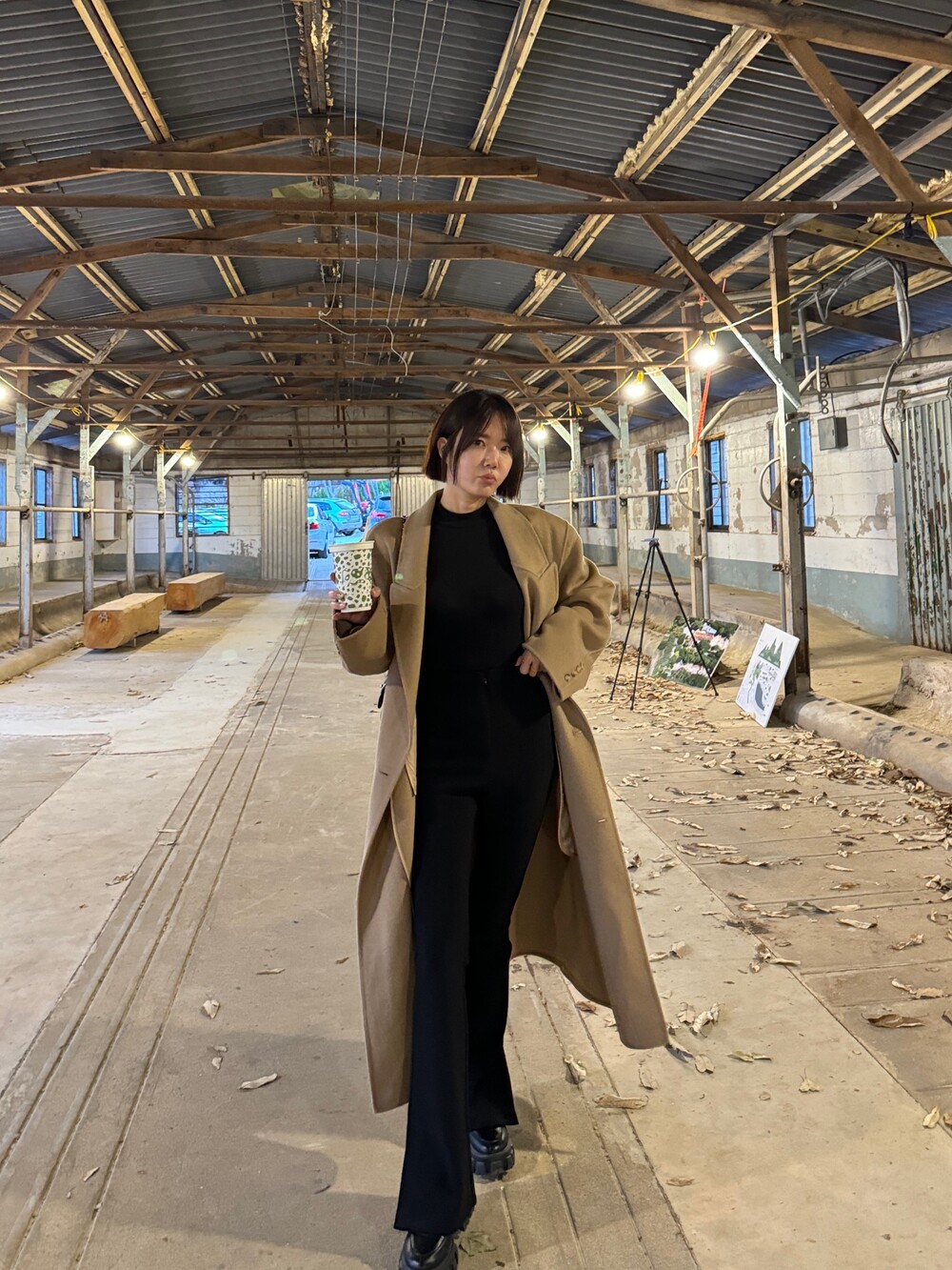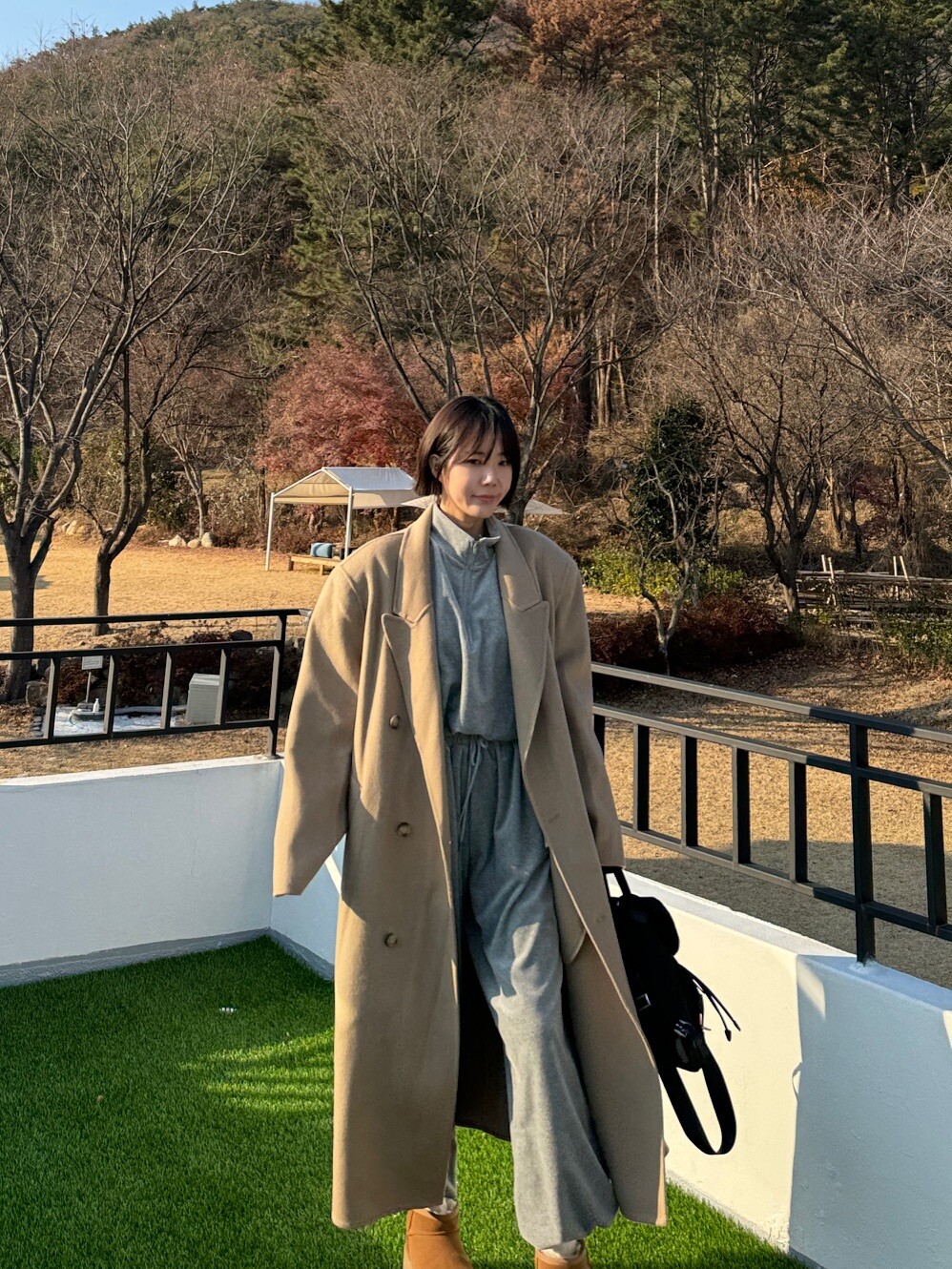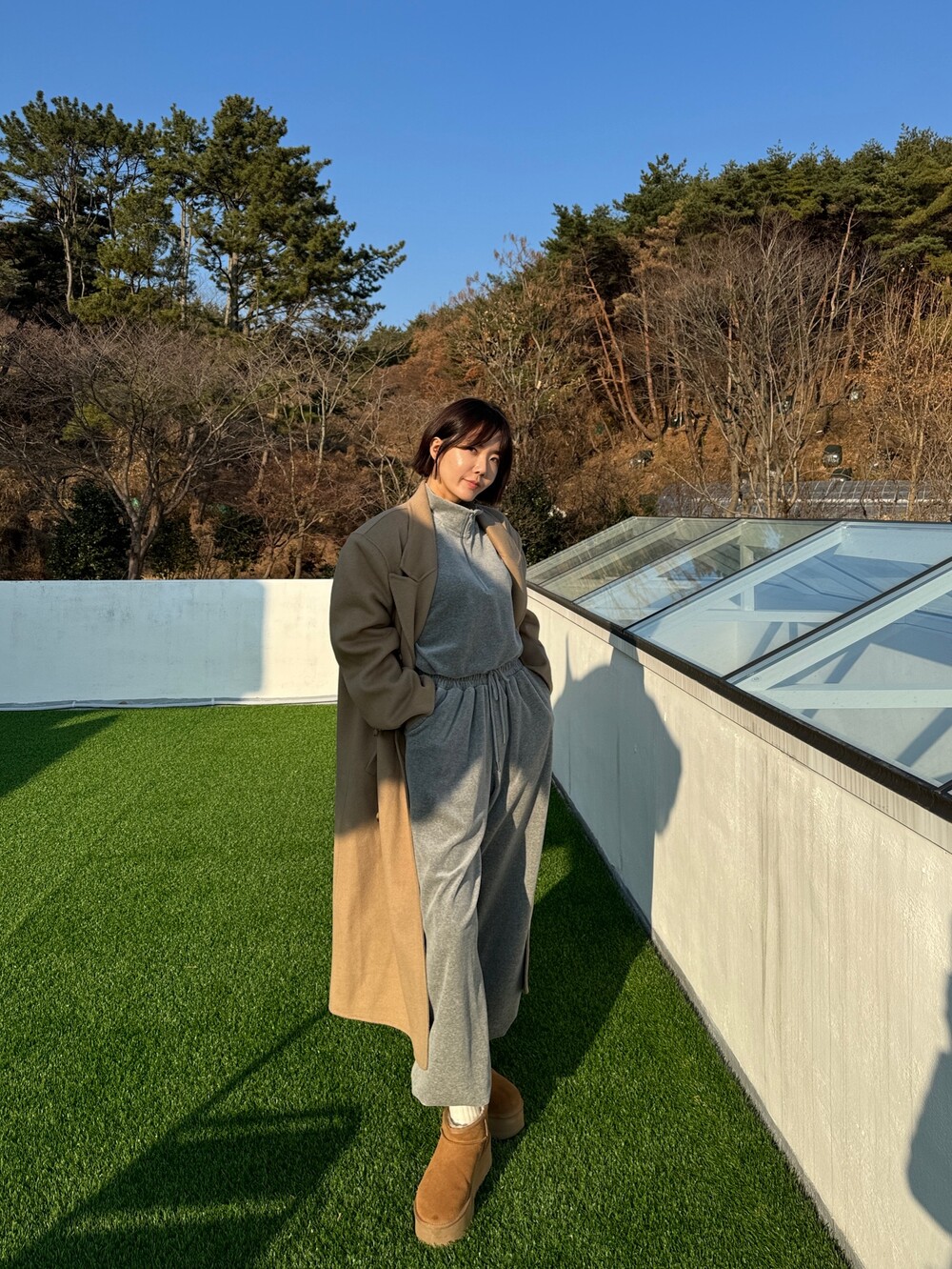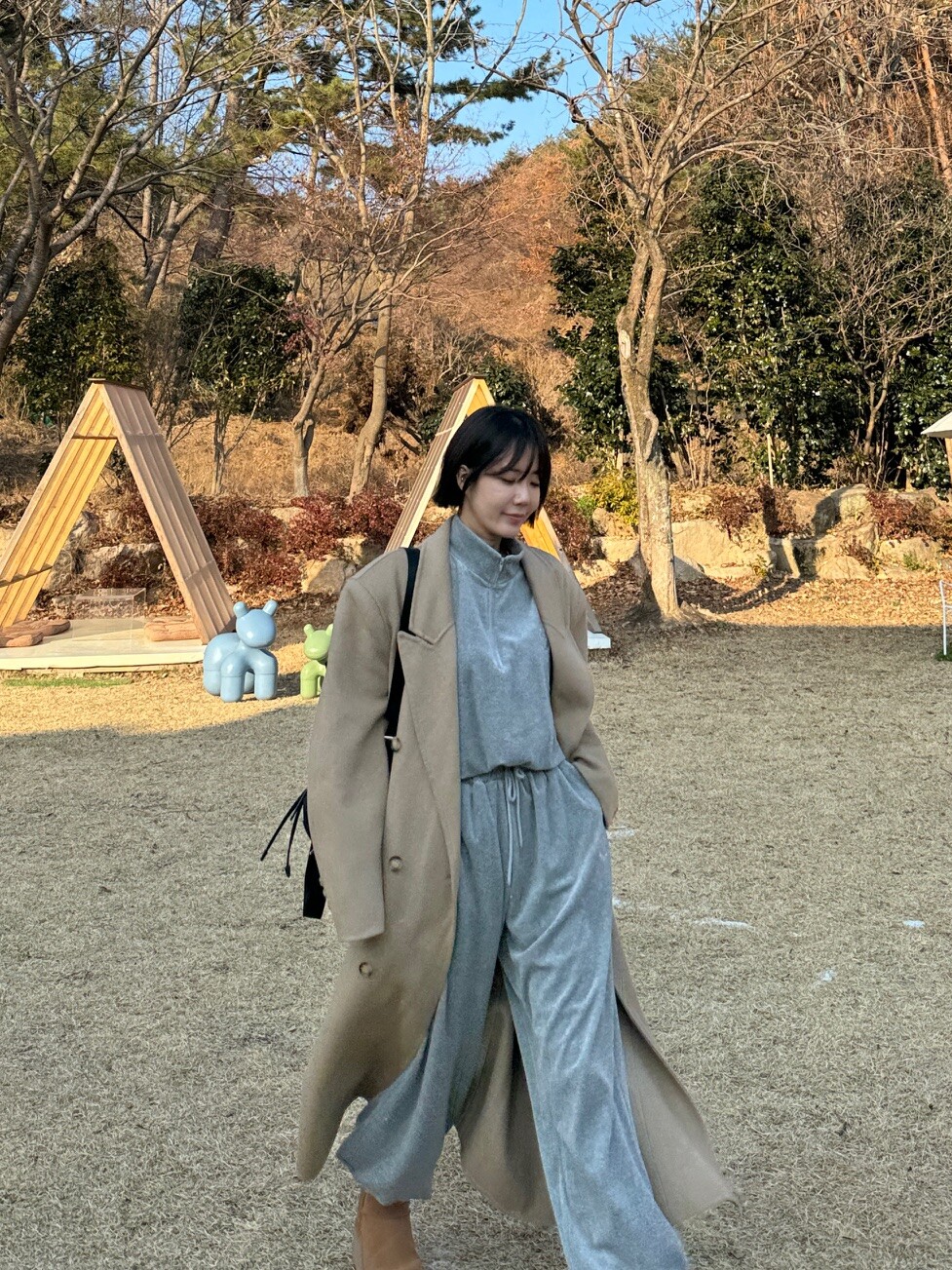 숄더의 패드로 핏을 잡아주고 롱한 기장감으로