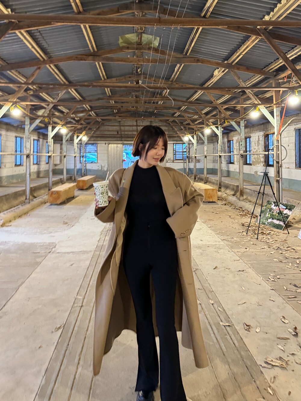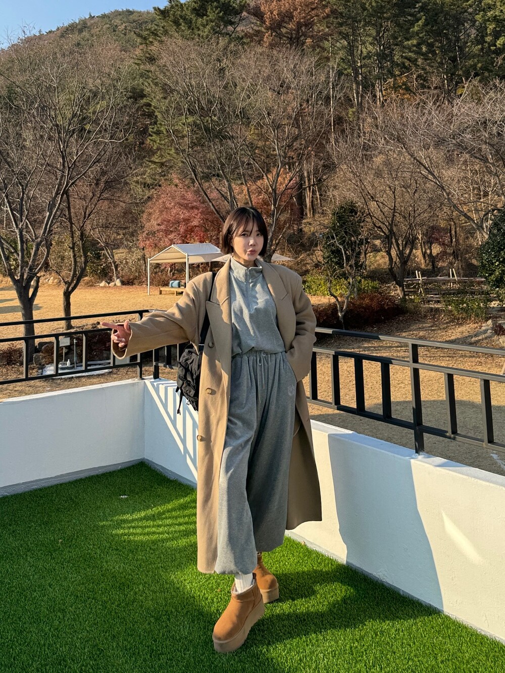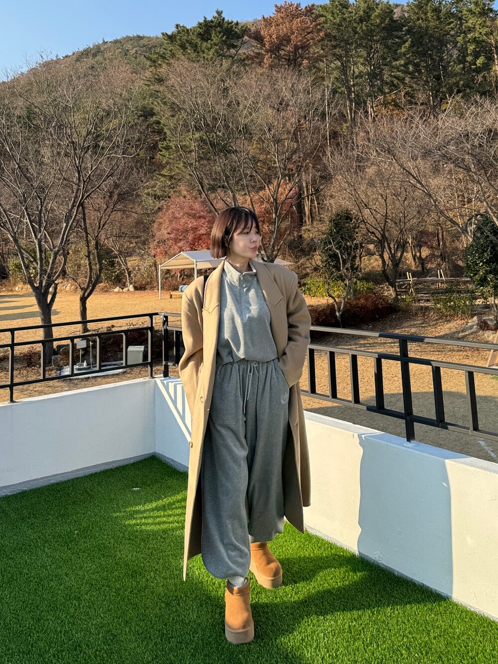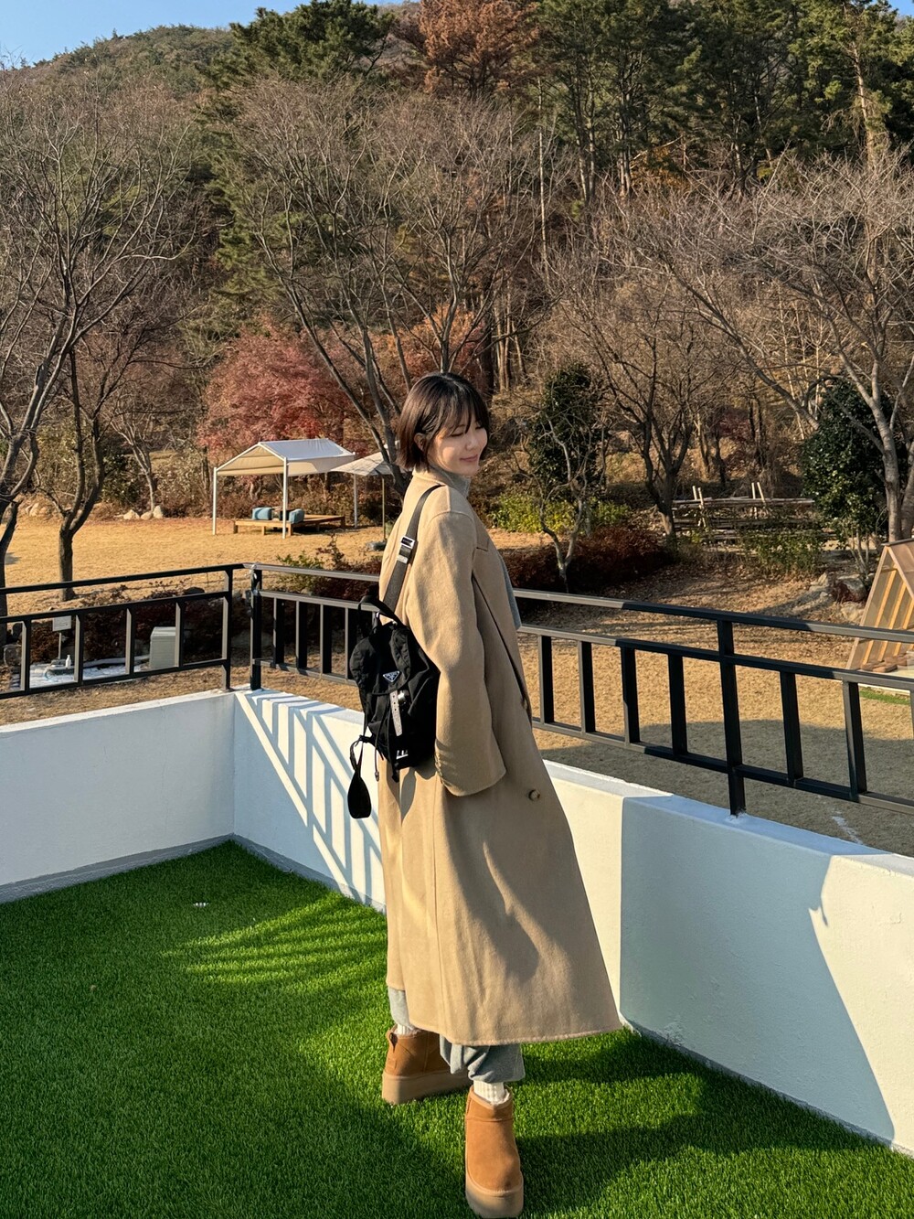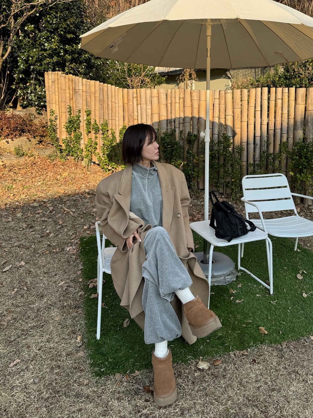숄더의 패드로 핏을 잡아주고 롱한 기장감으로