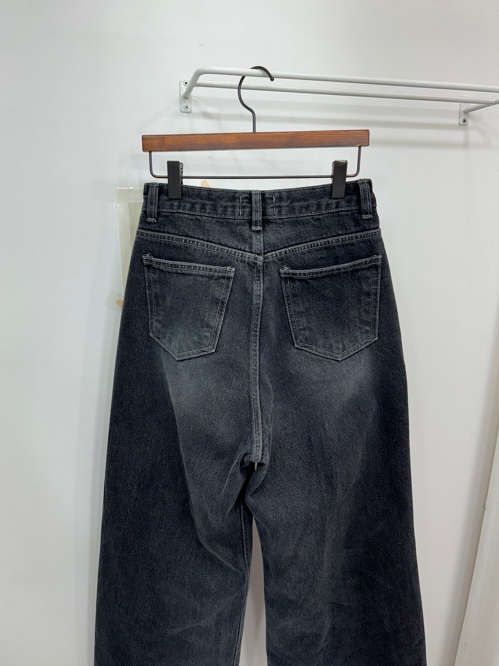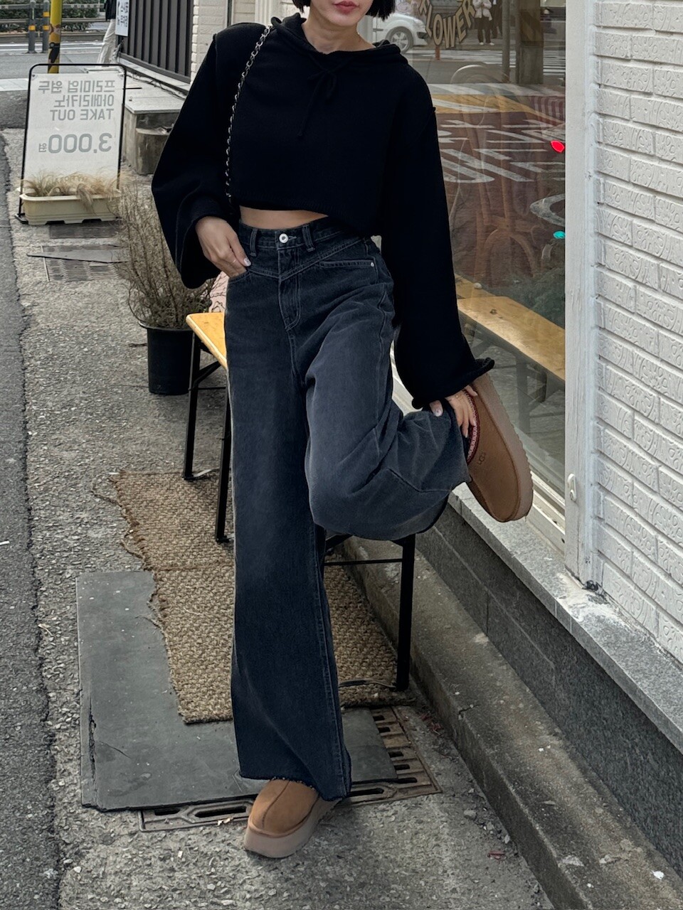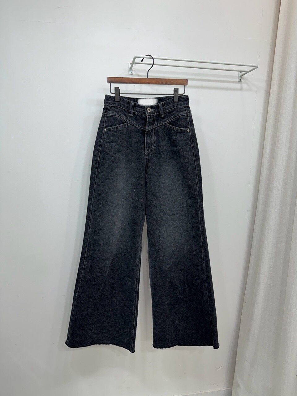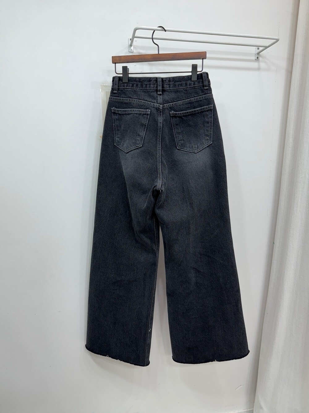 밑단 컷팅으로 핏감 좋은 와이드 데님 팬츠
