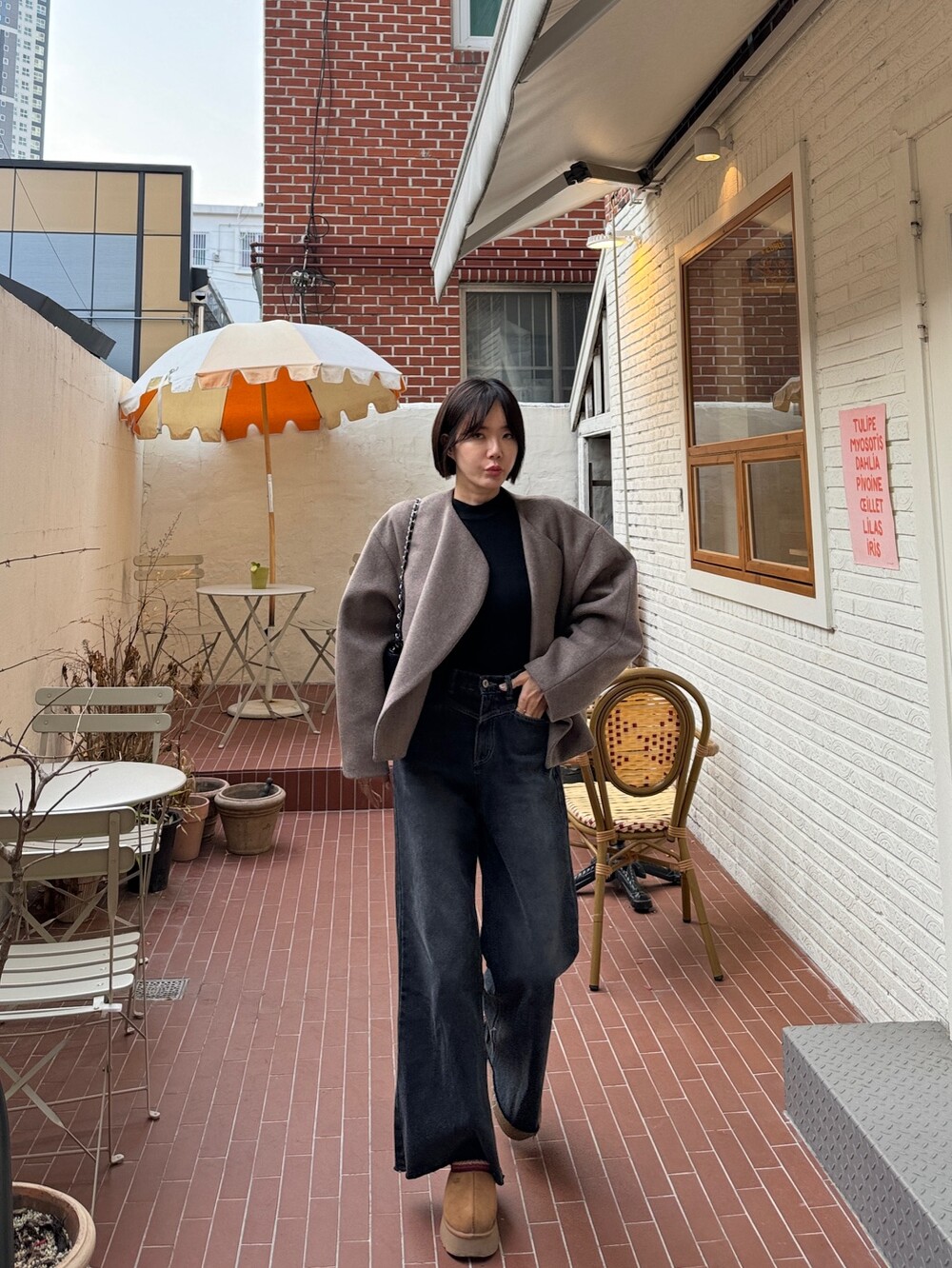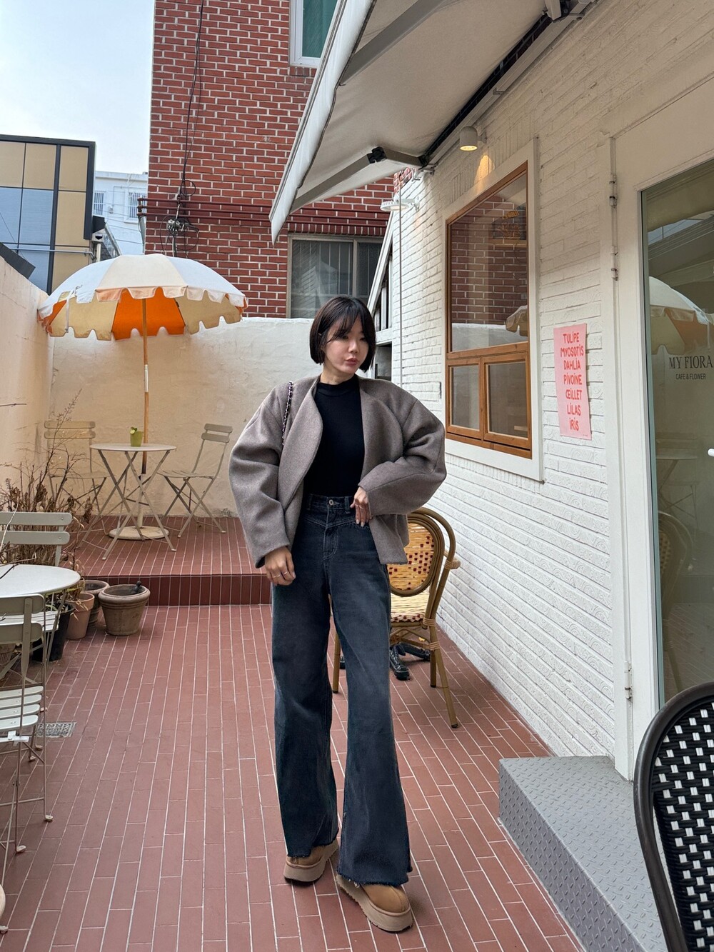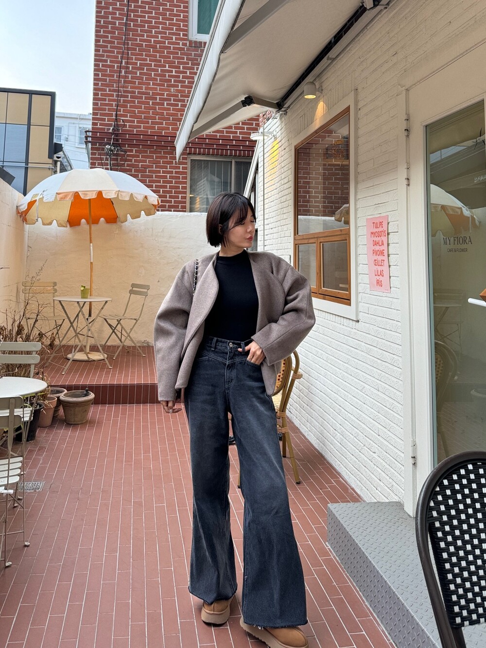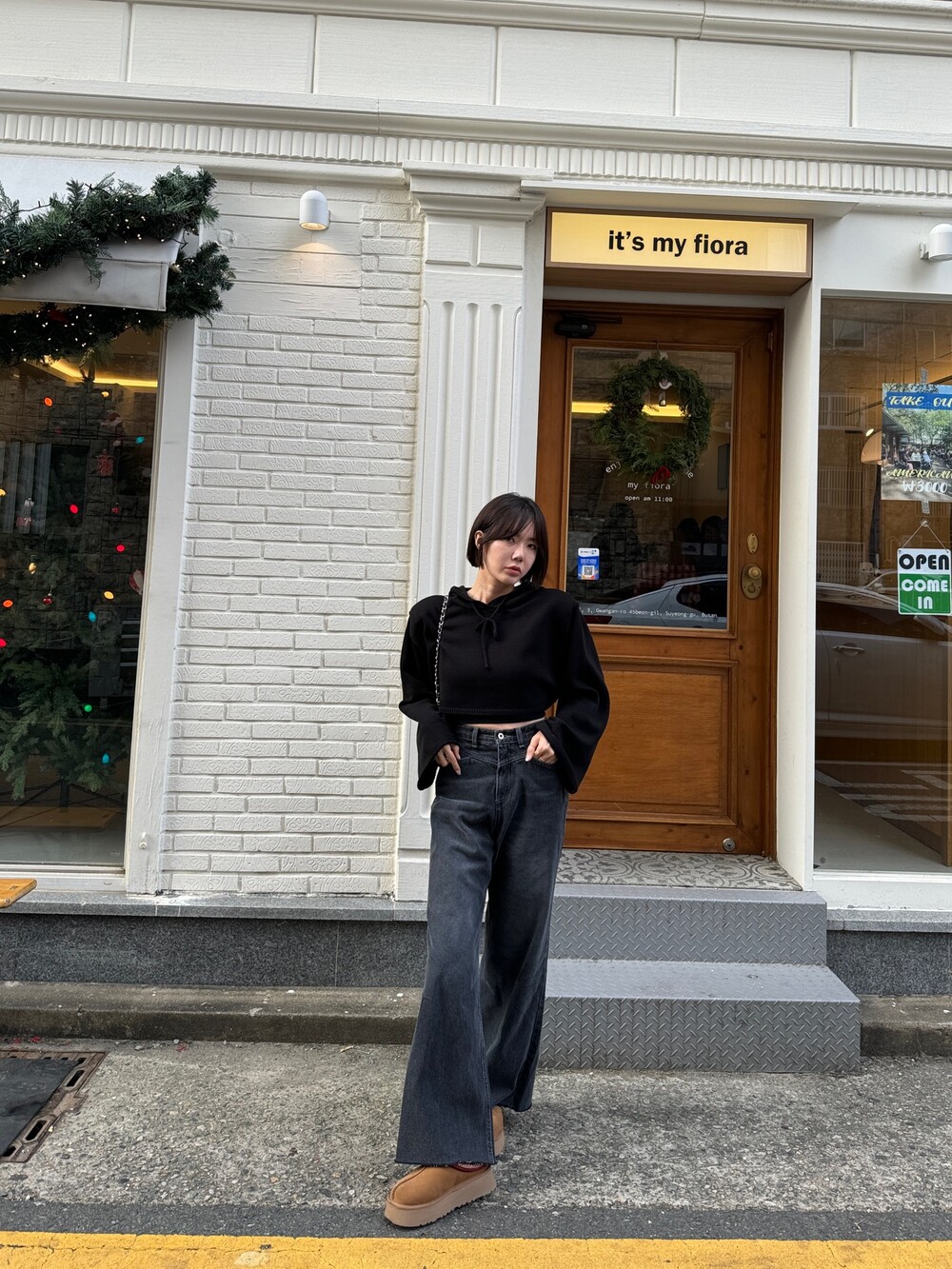 밑단 컷팅으로 핏감 좋은 와이드 데님 팬츠