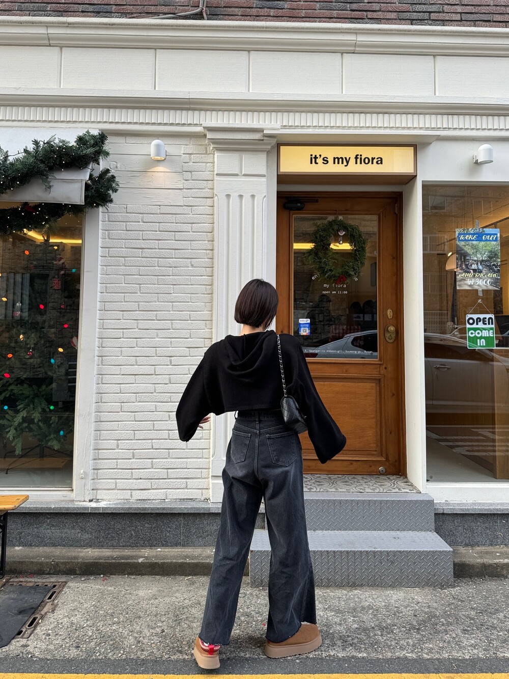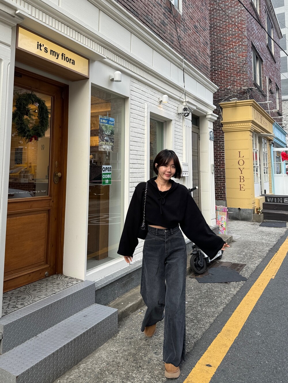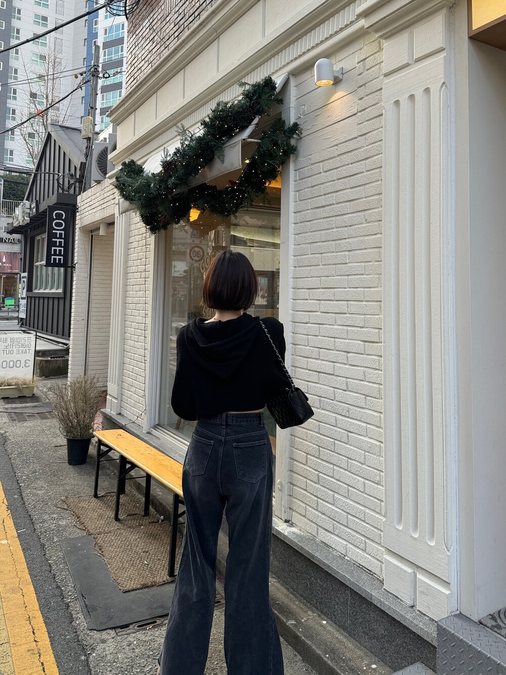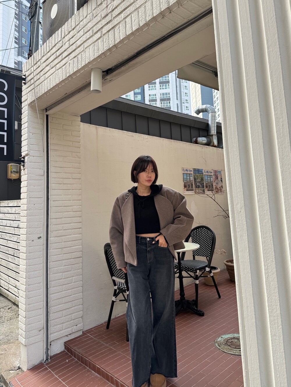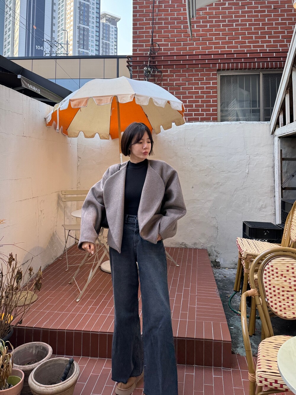 밑단 컷팅으로 핏감 좋은 와이드 데님 팬츠