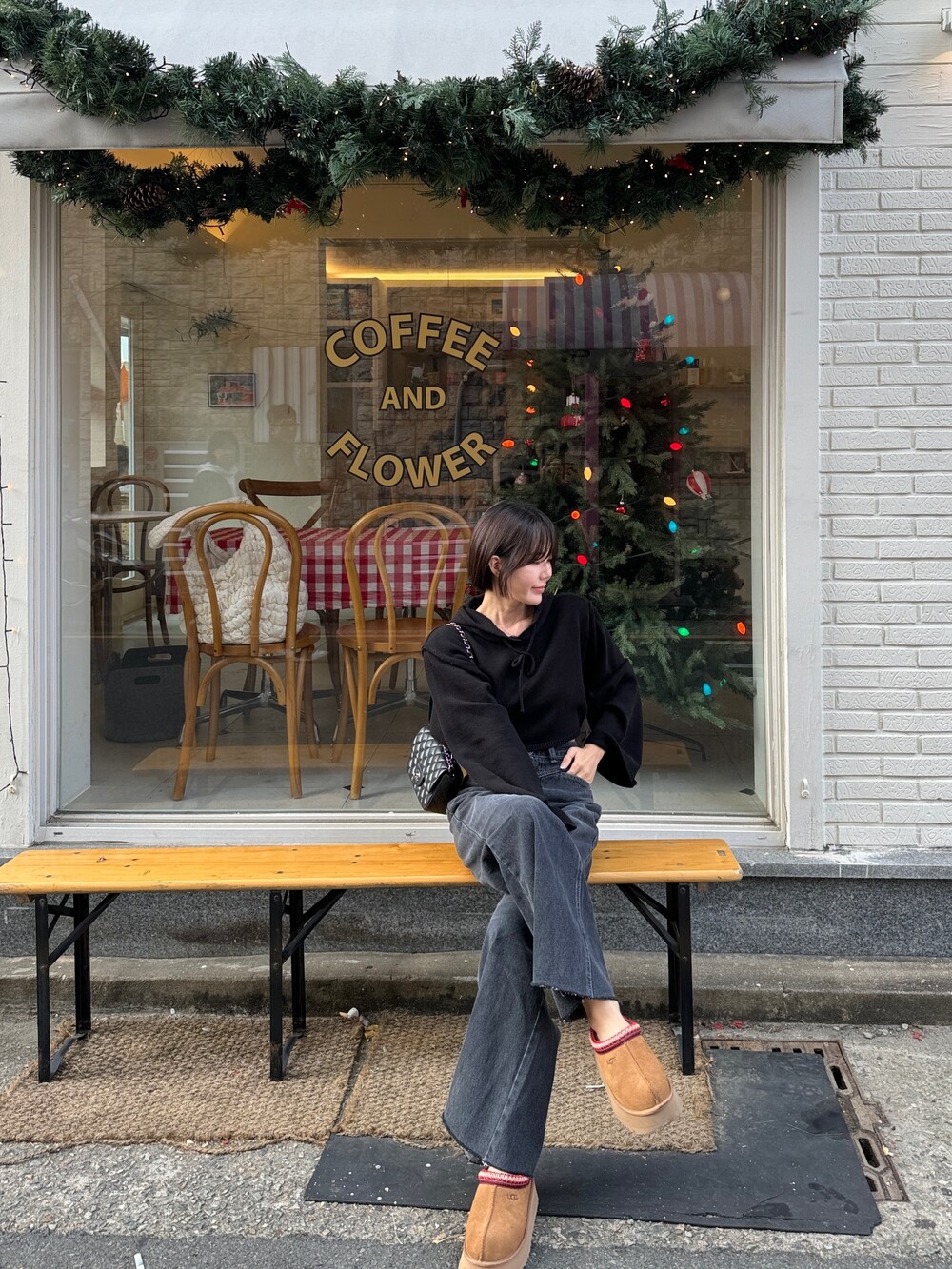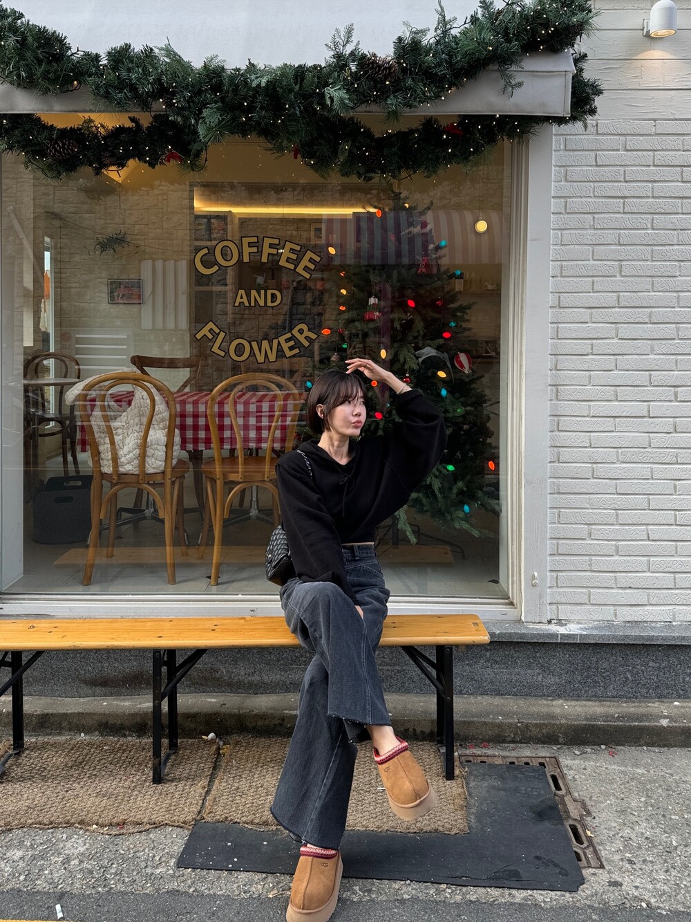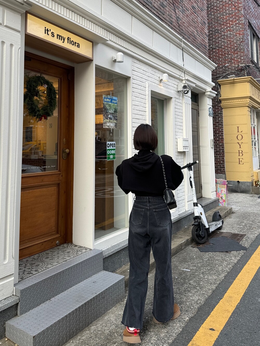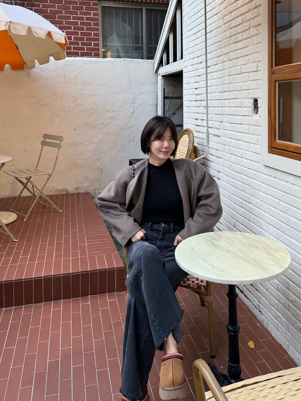 밑단 컷팅으로 핏감 좋은 와이드 데님 팬츠