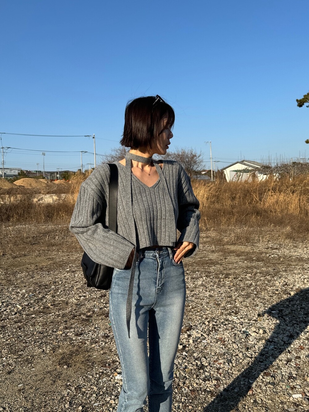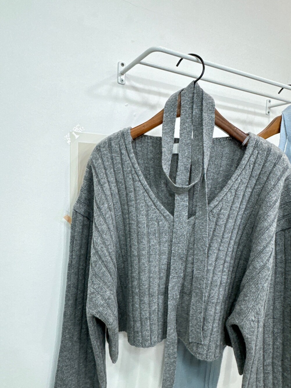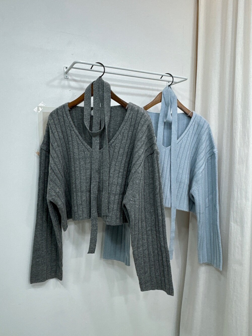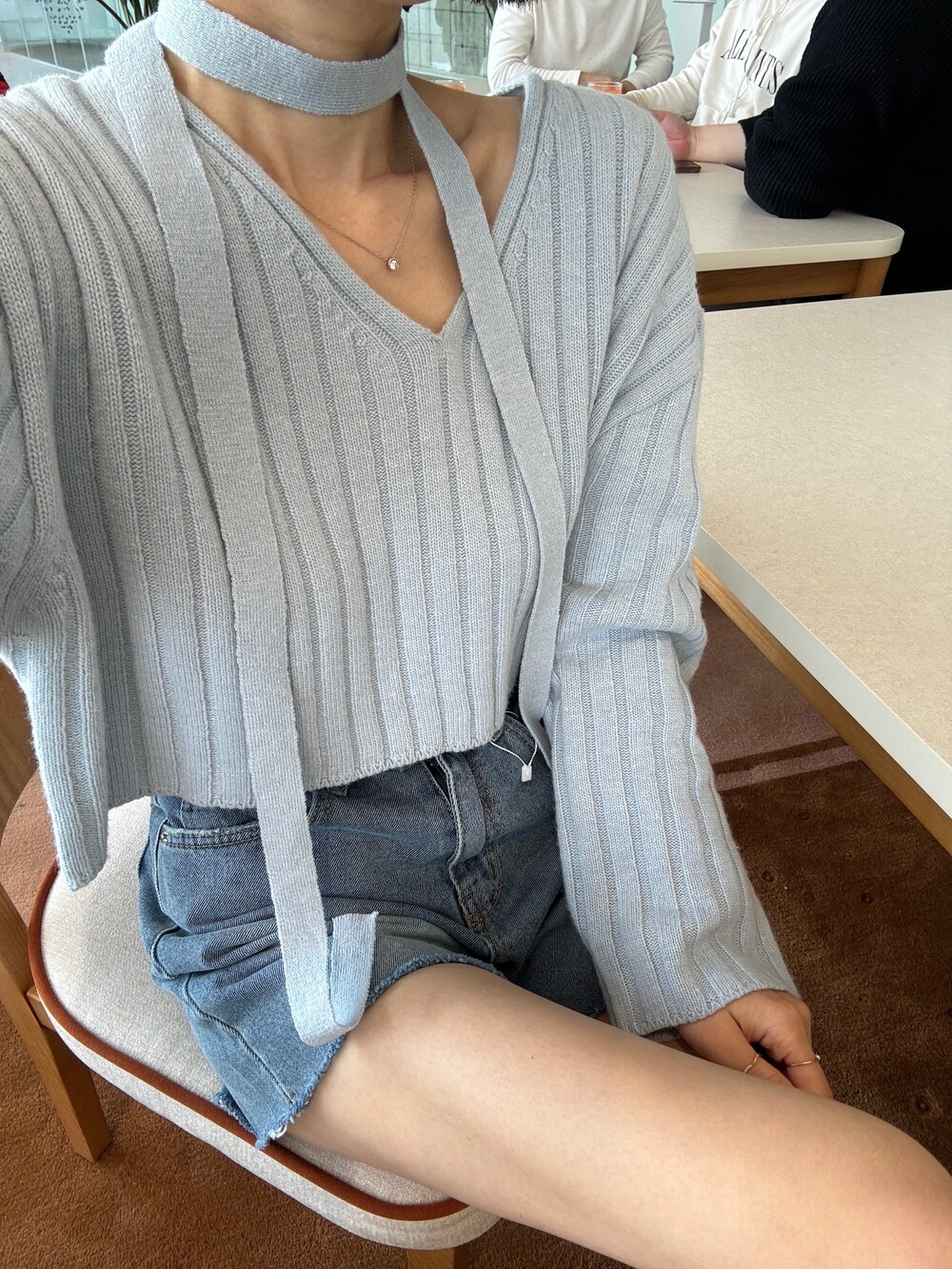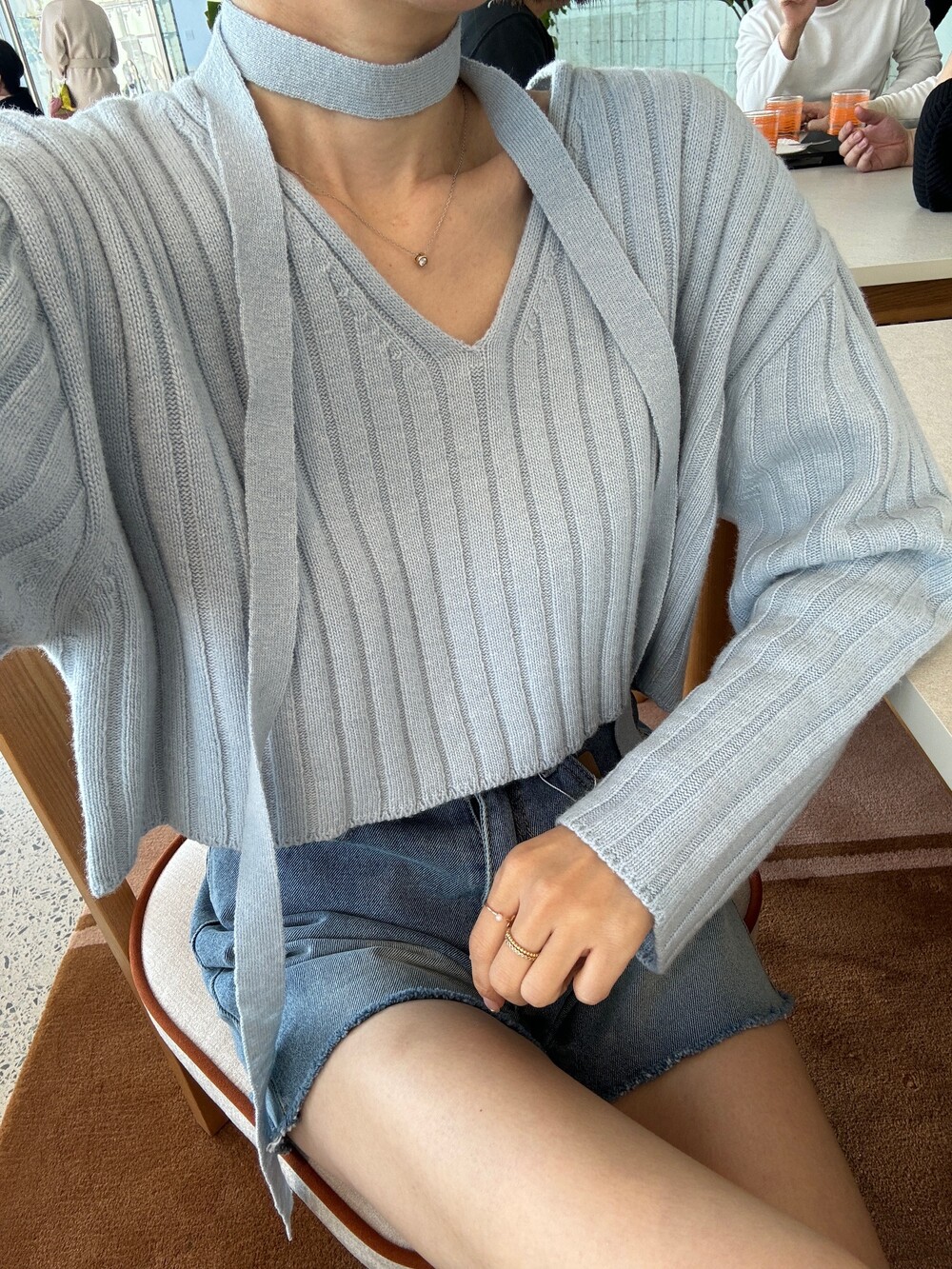 3컬러 나오는 브이넥 크롭 머플러 니트