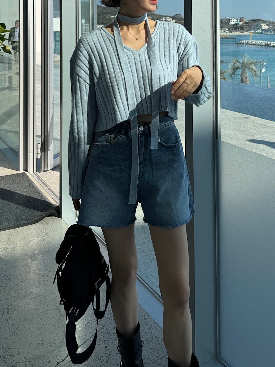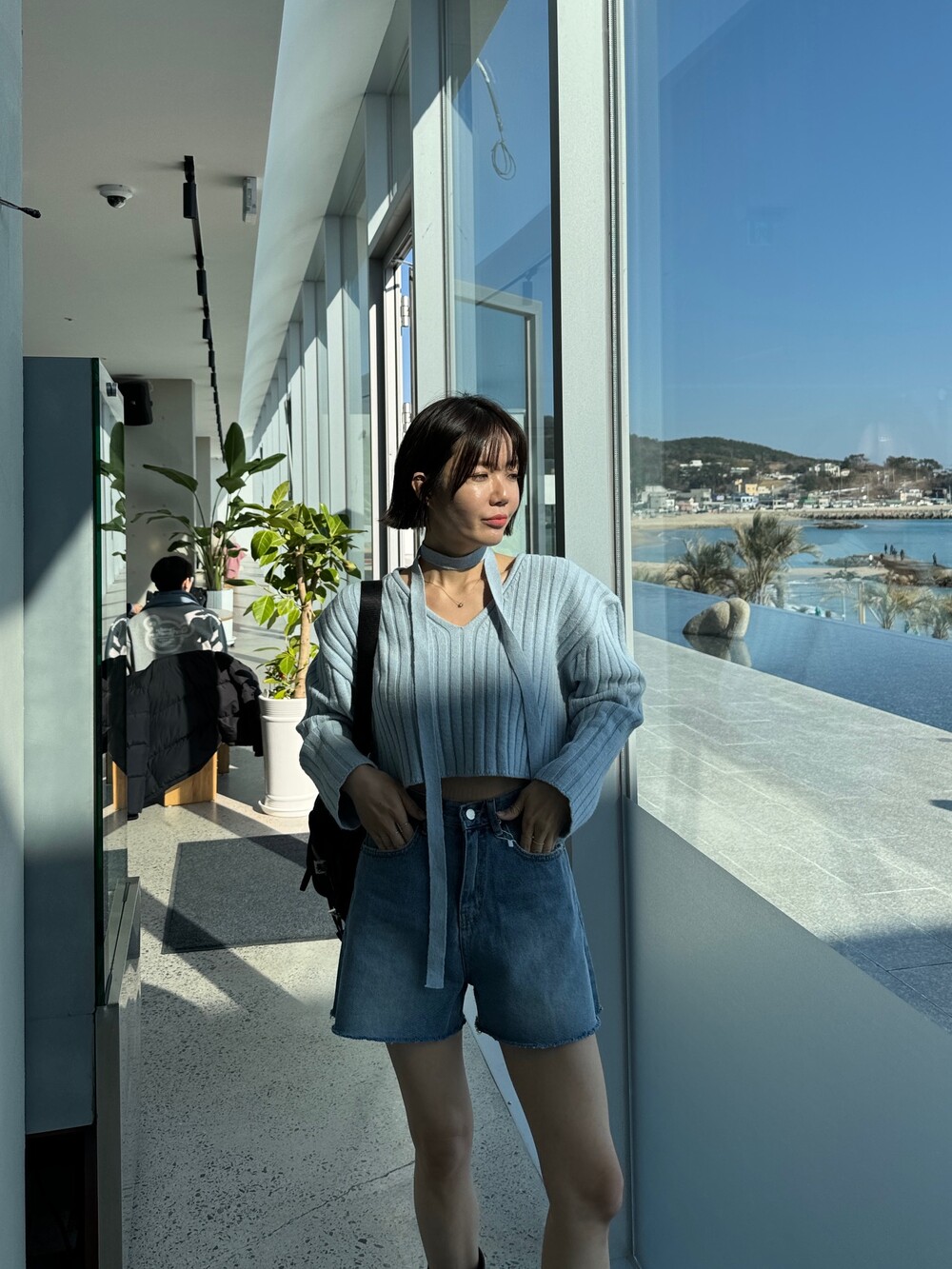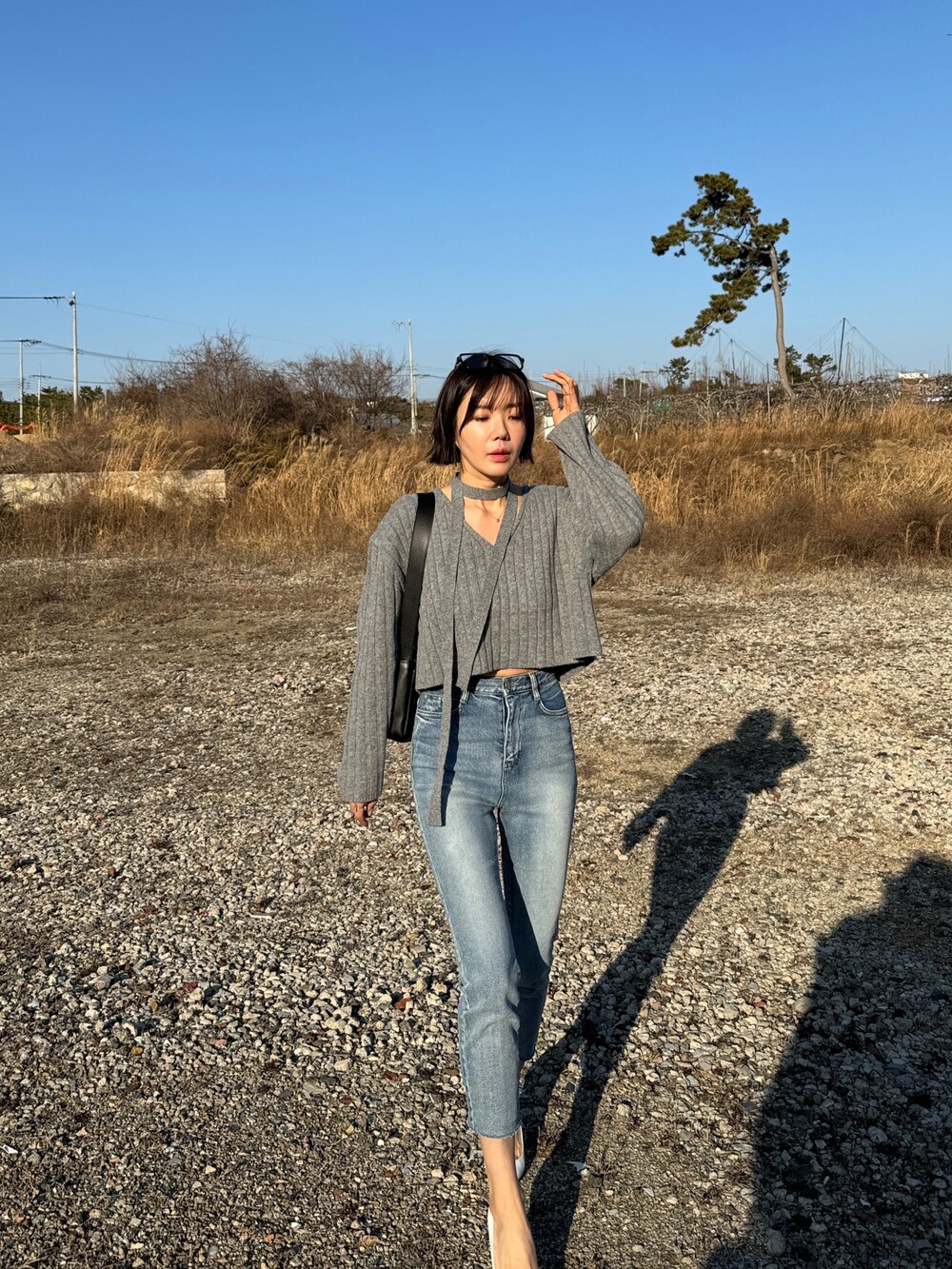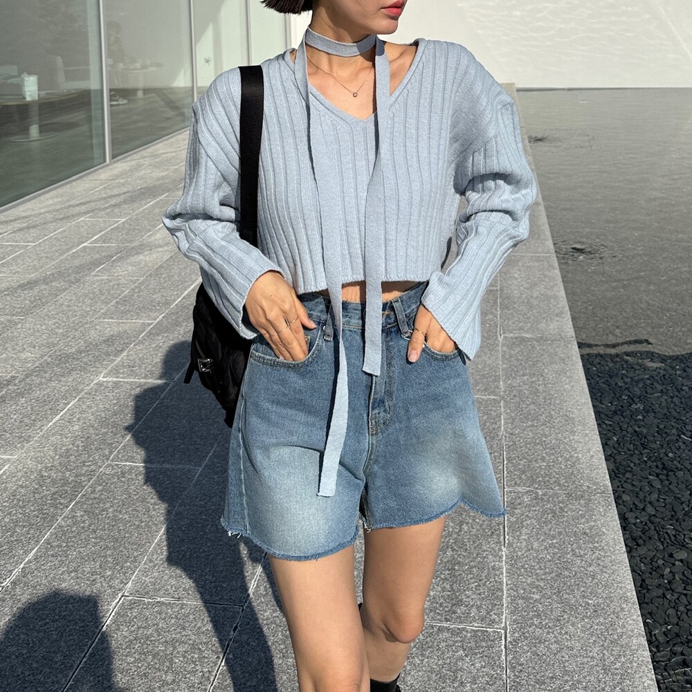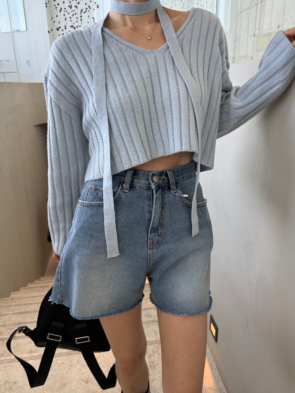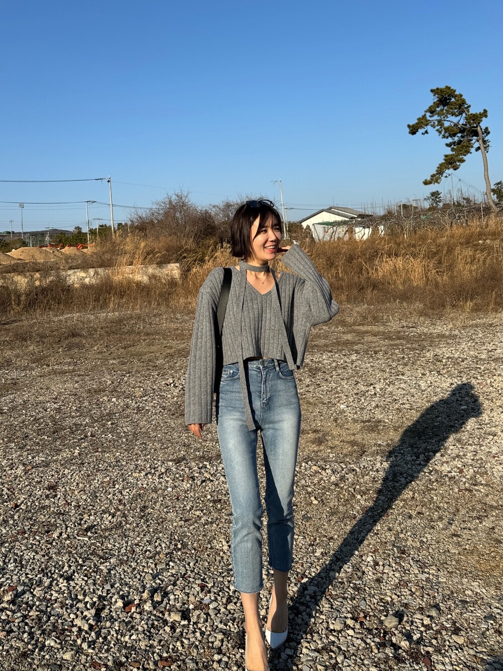 3컬러 나오는 브이넥 크롭 머플러 니트