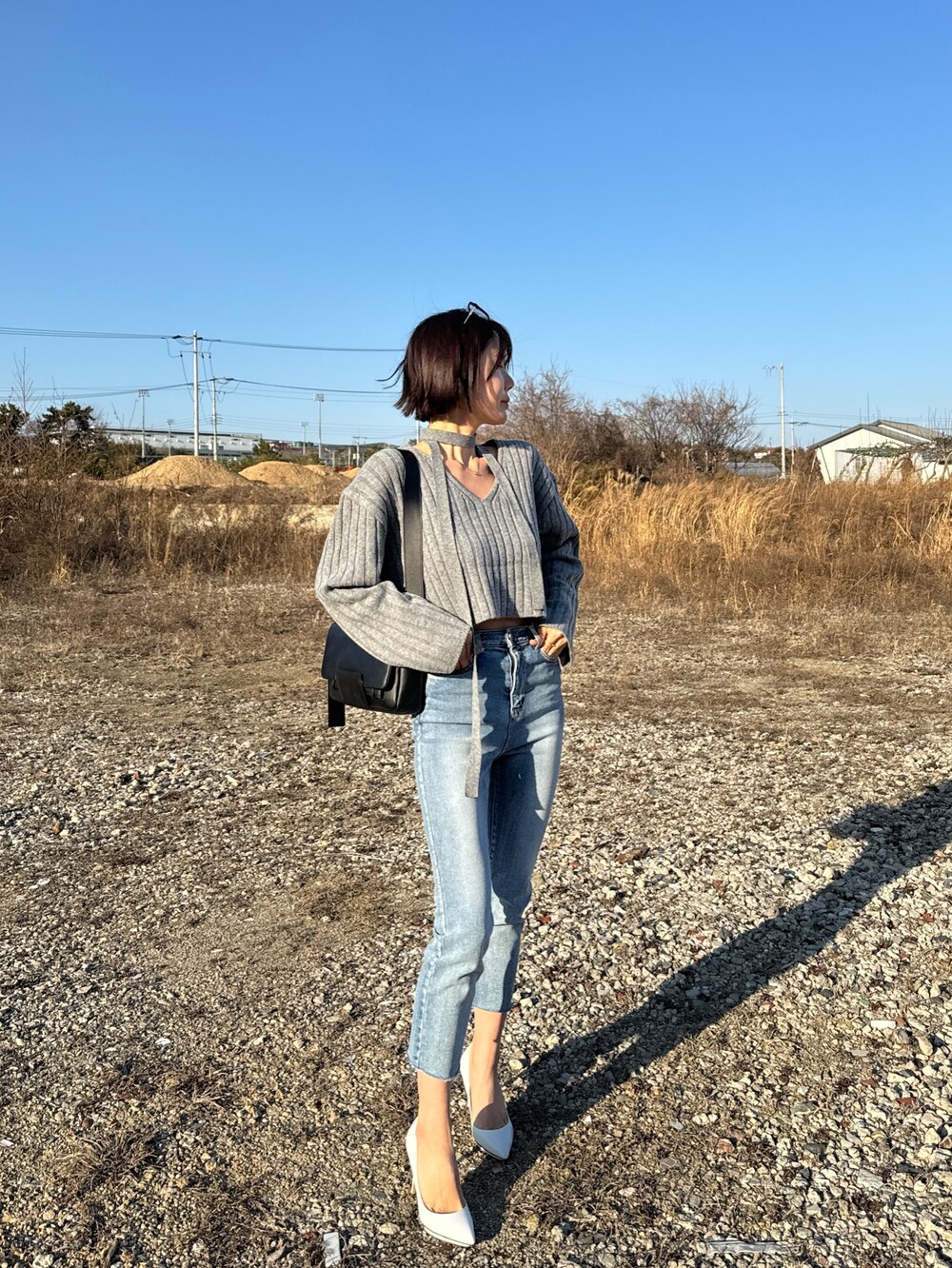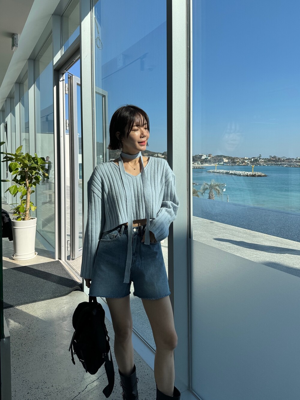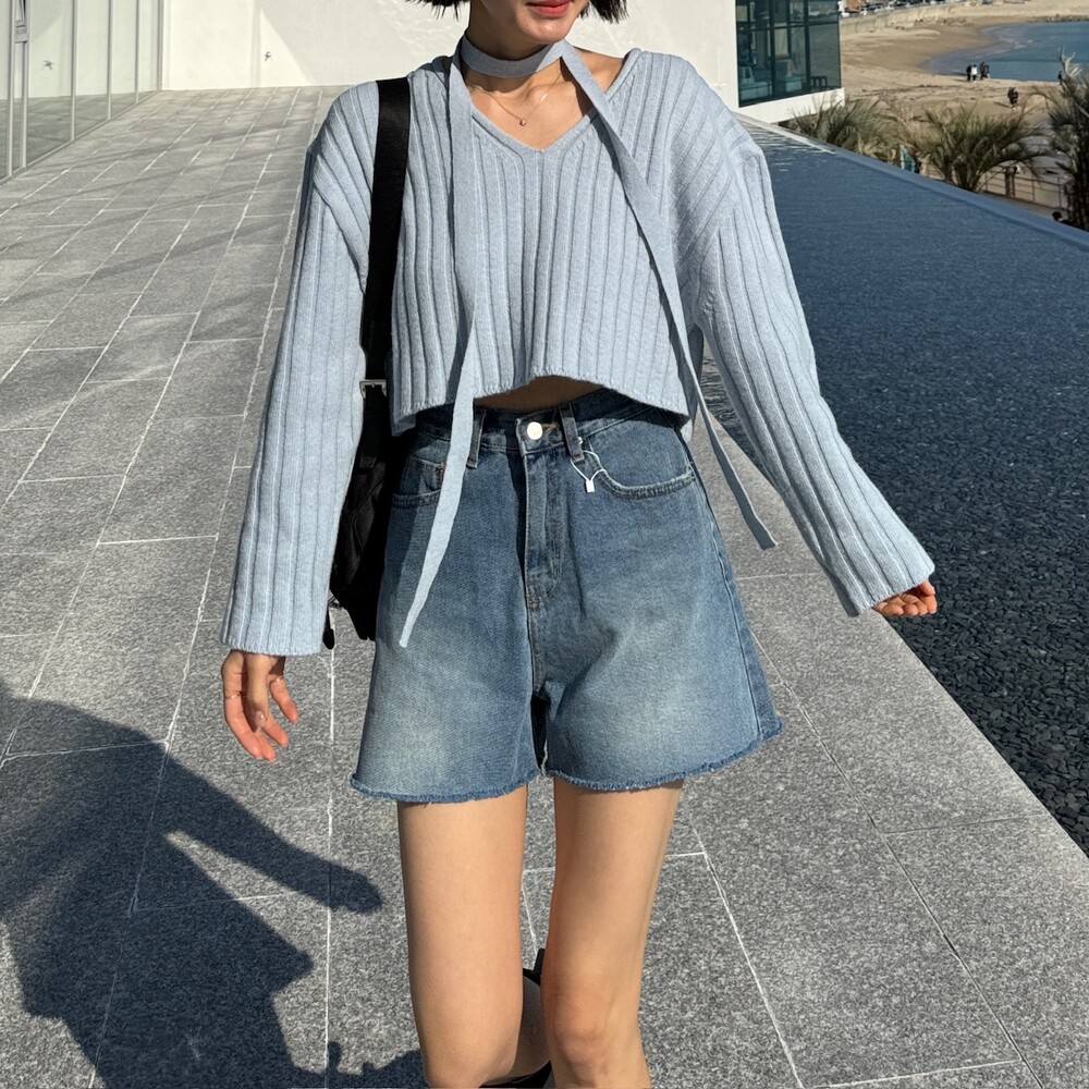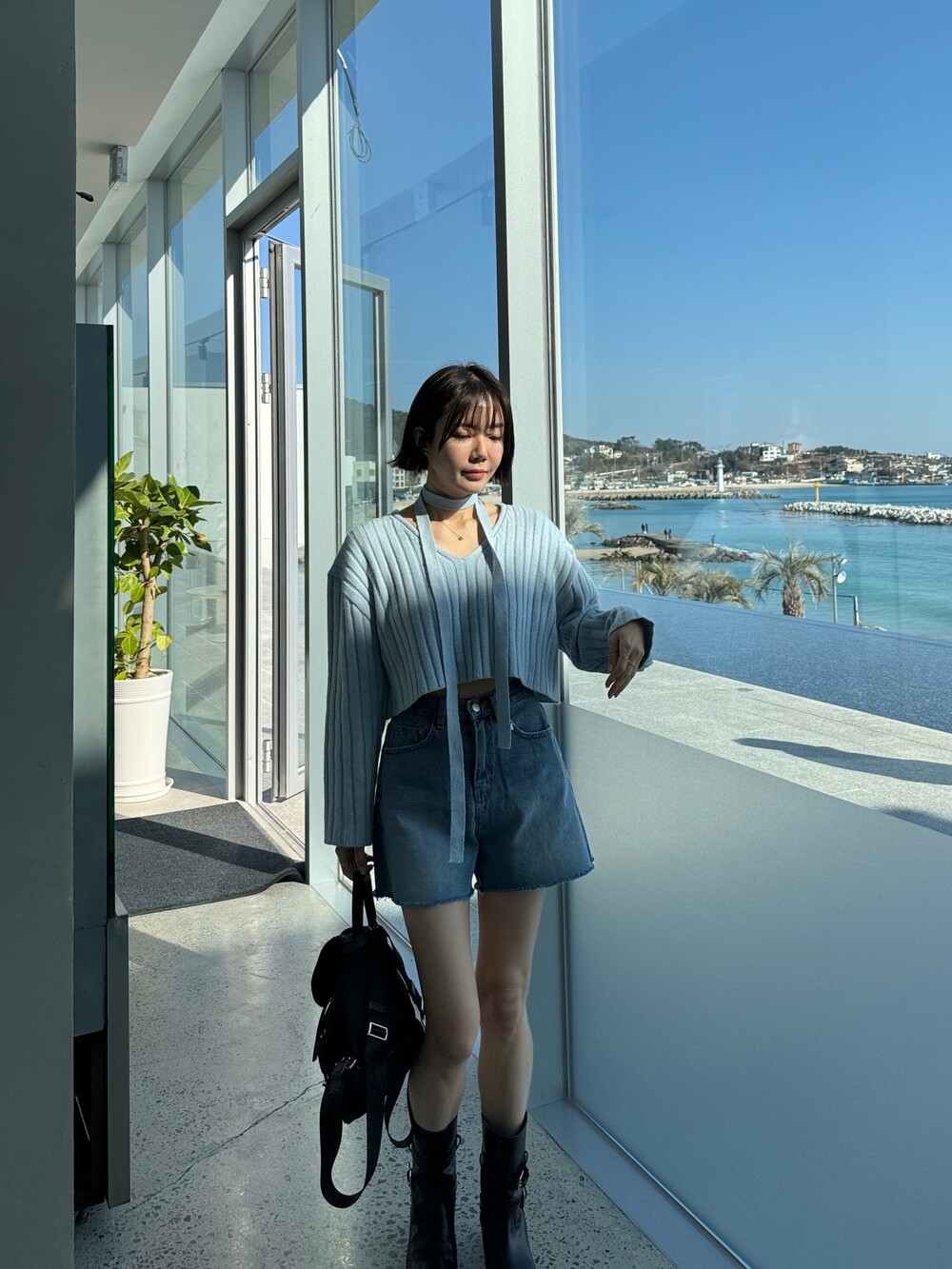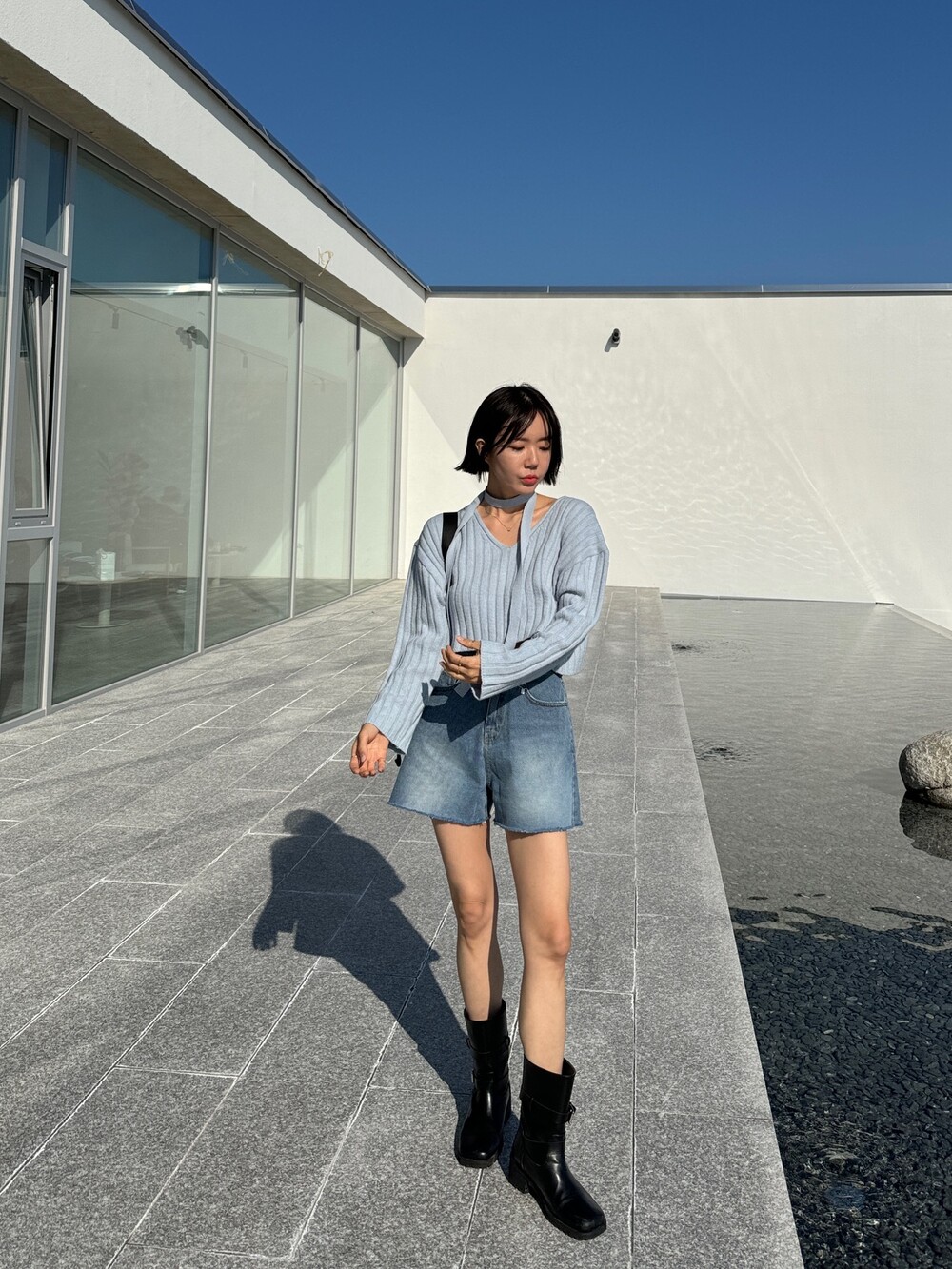 3컬러 나오는 브이넥 크롭 머플러 니트