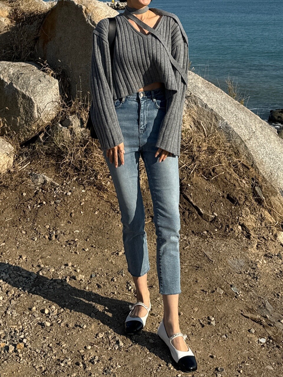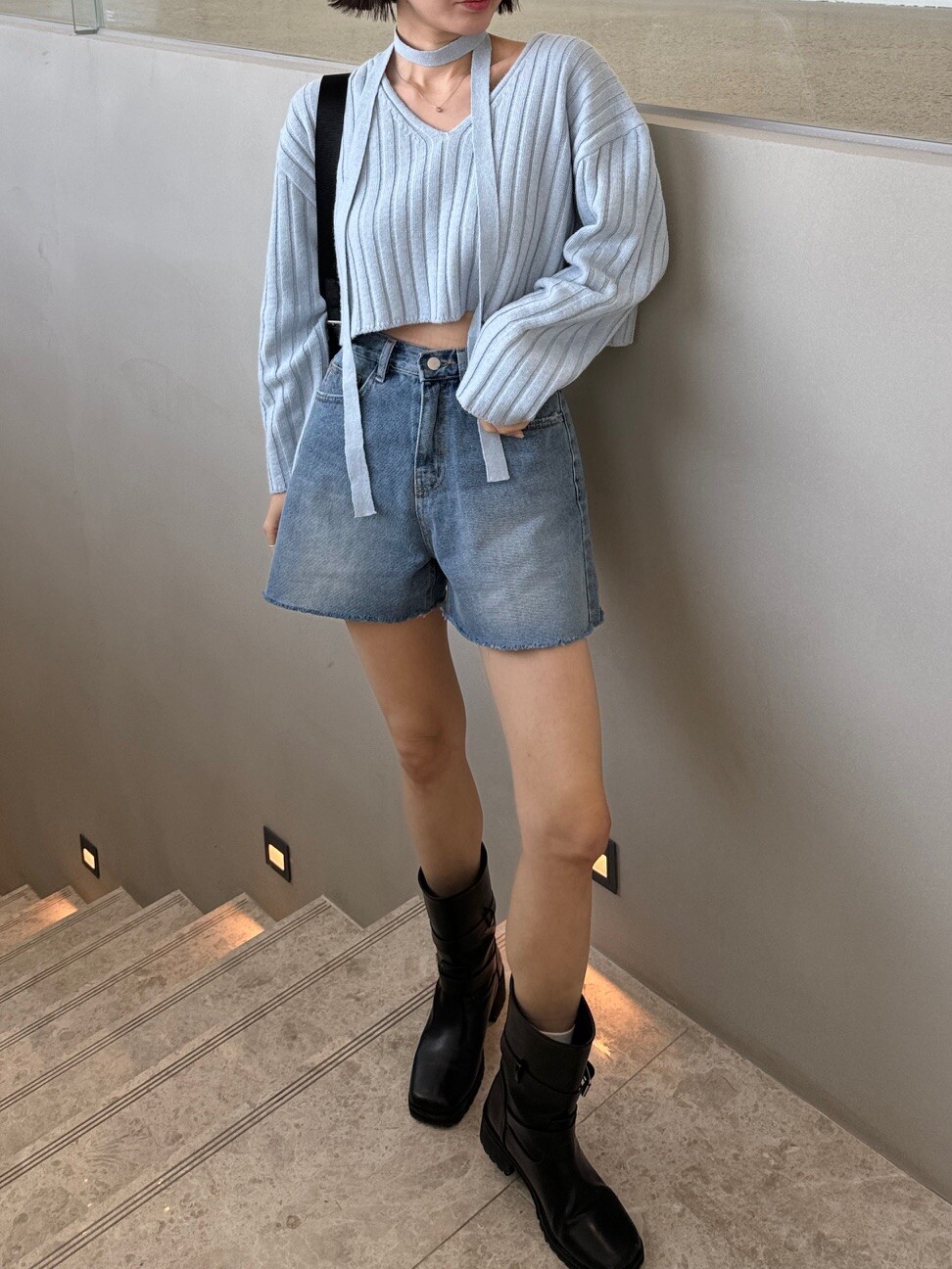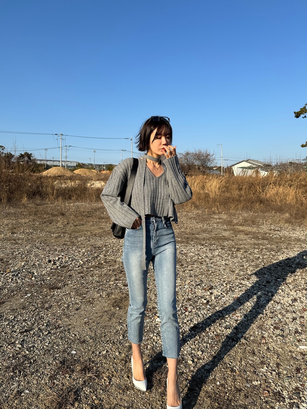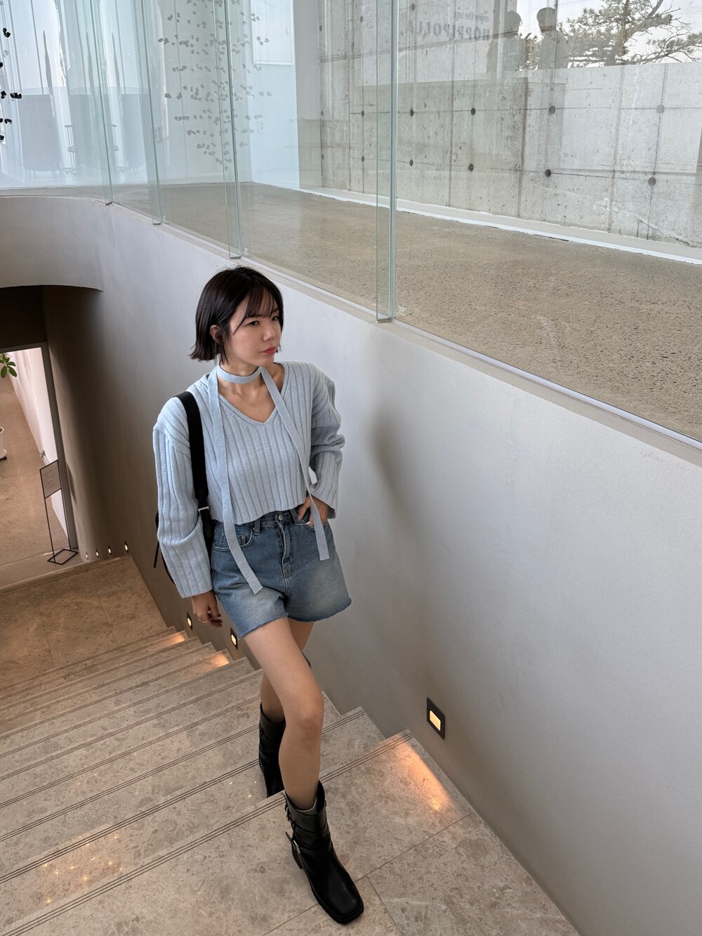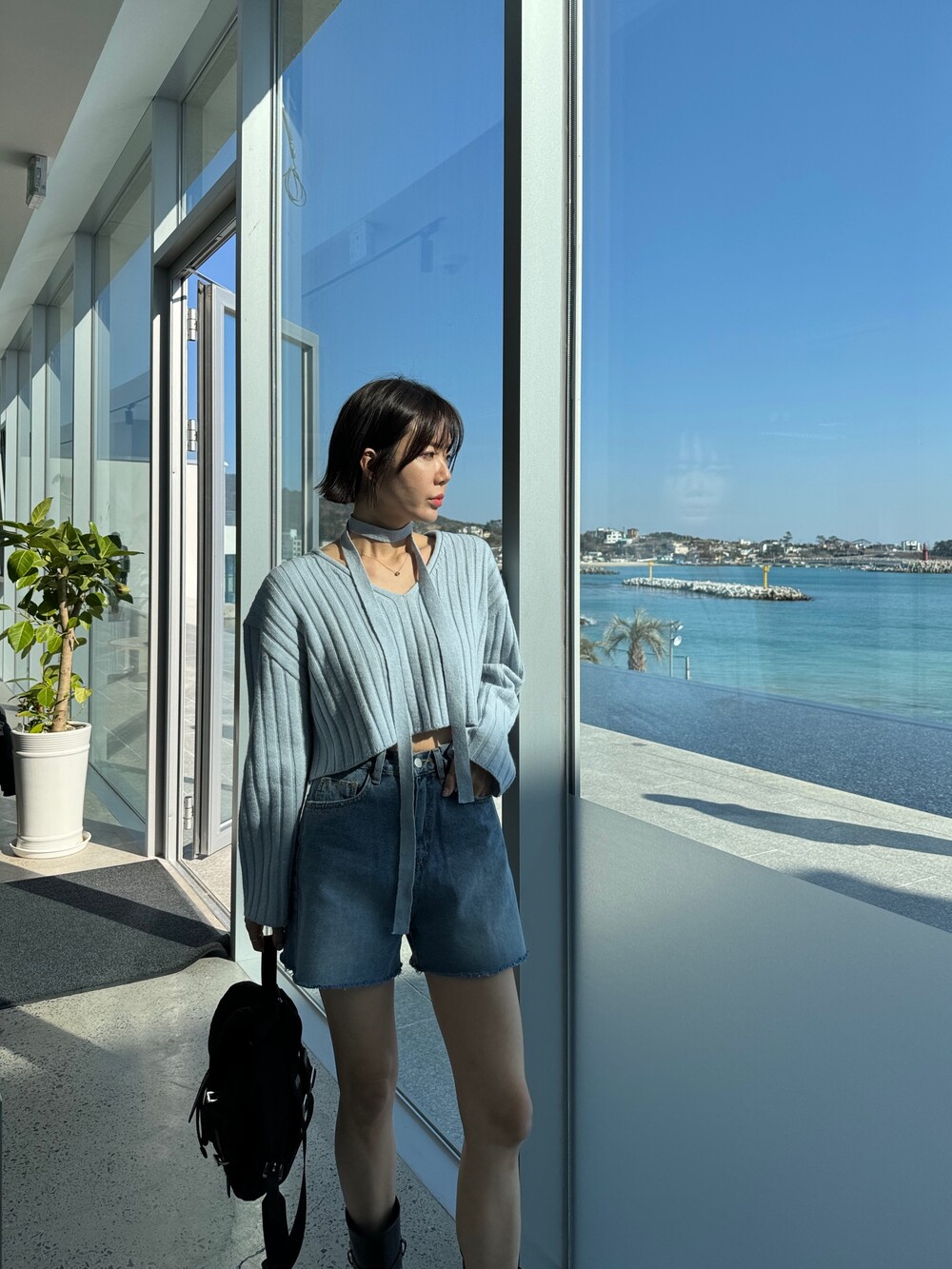 3컬러 나오는 브이넥 크롭 머플러 니트
