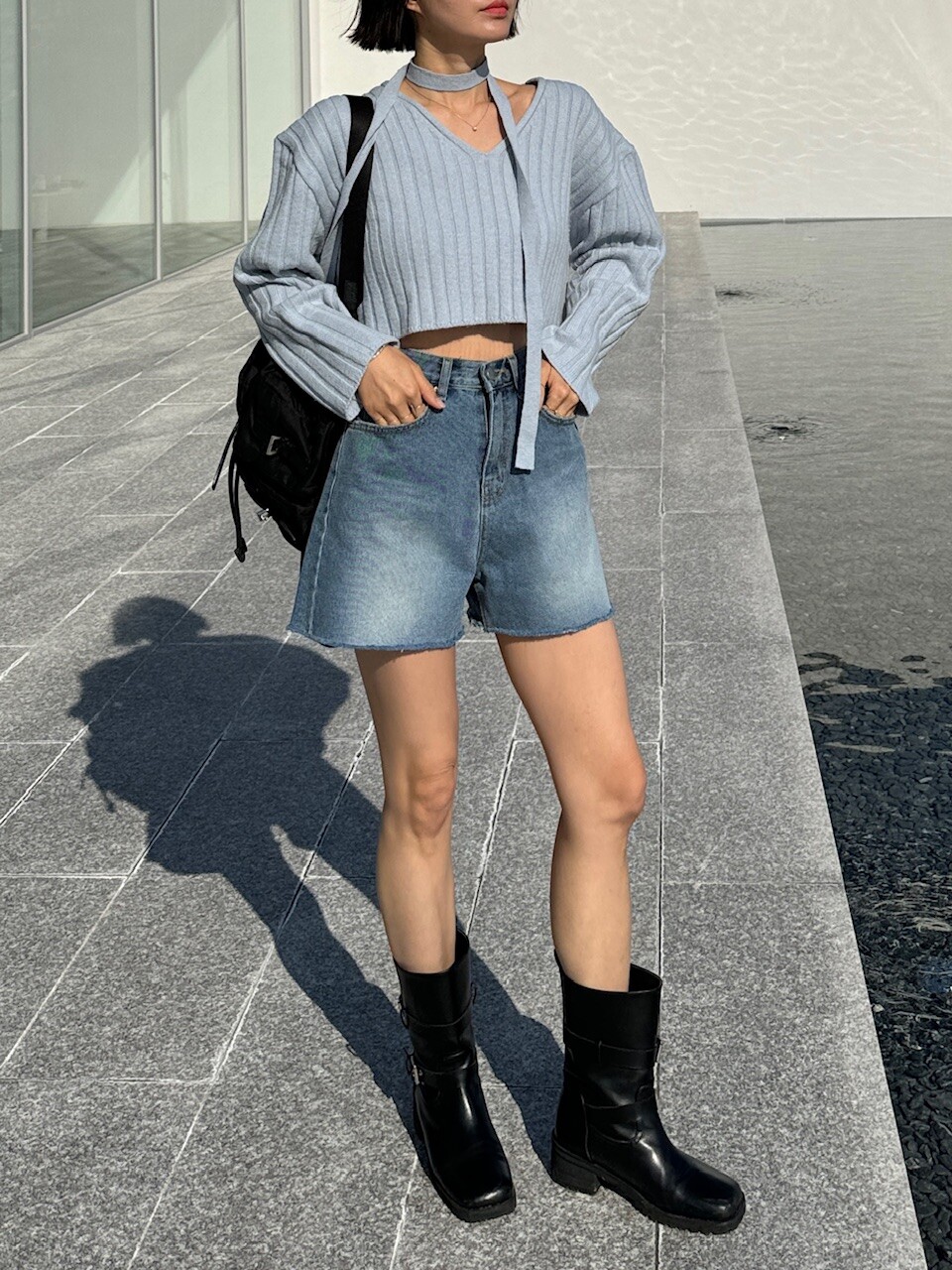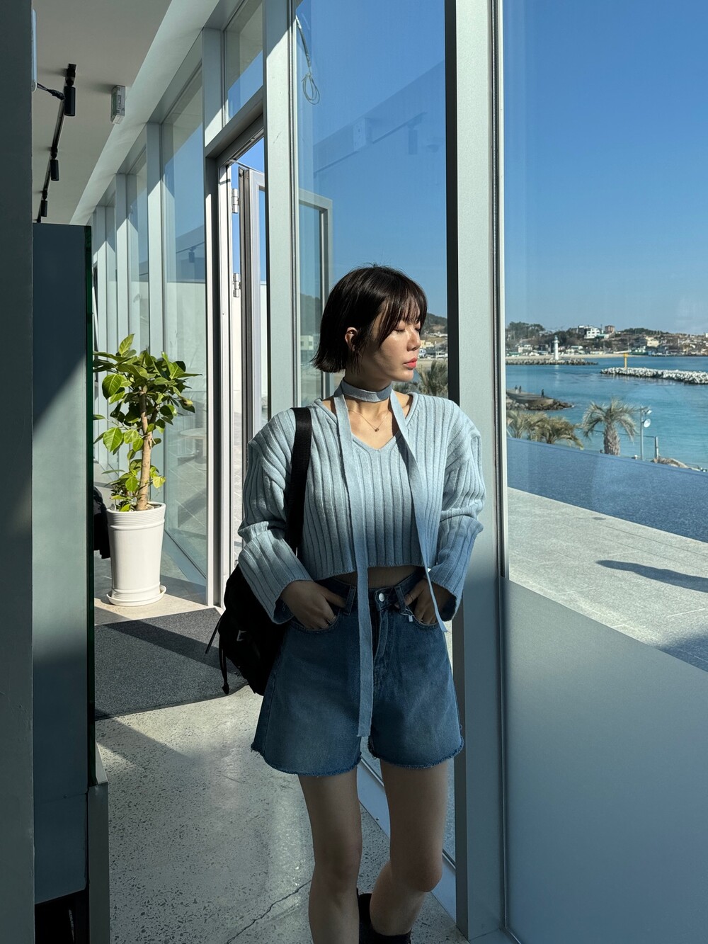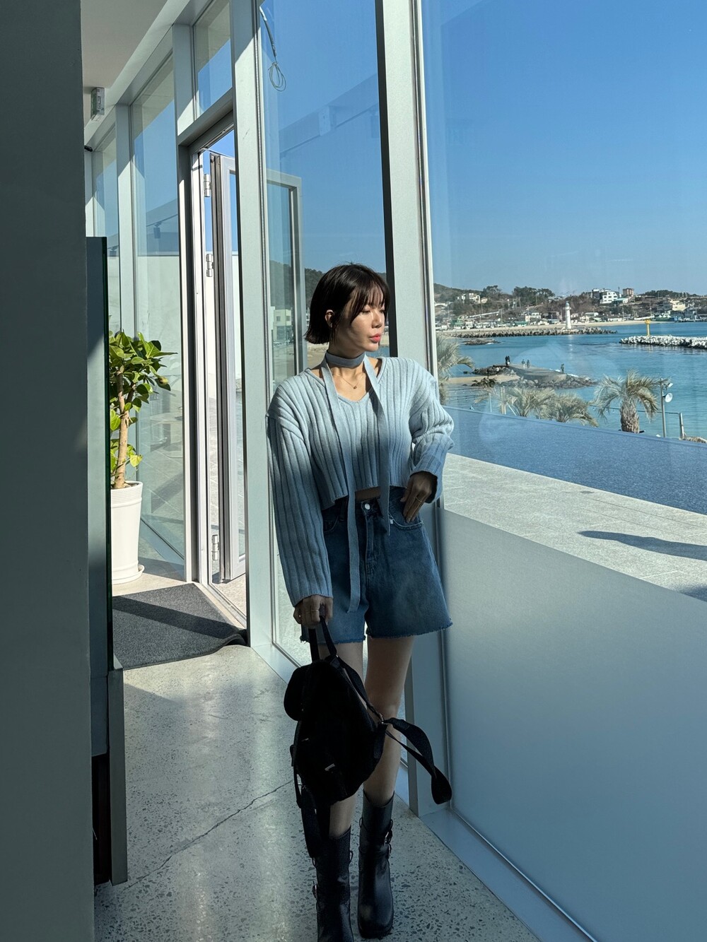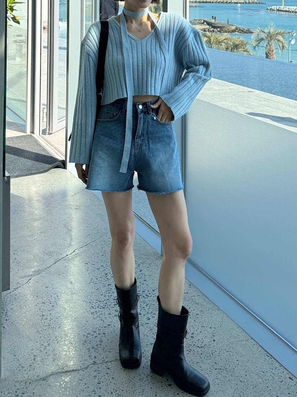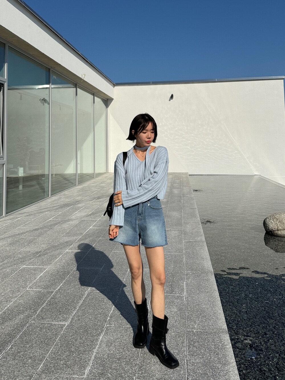 3컬러 나오는 브이넥 크롭 머플러 니트