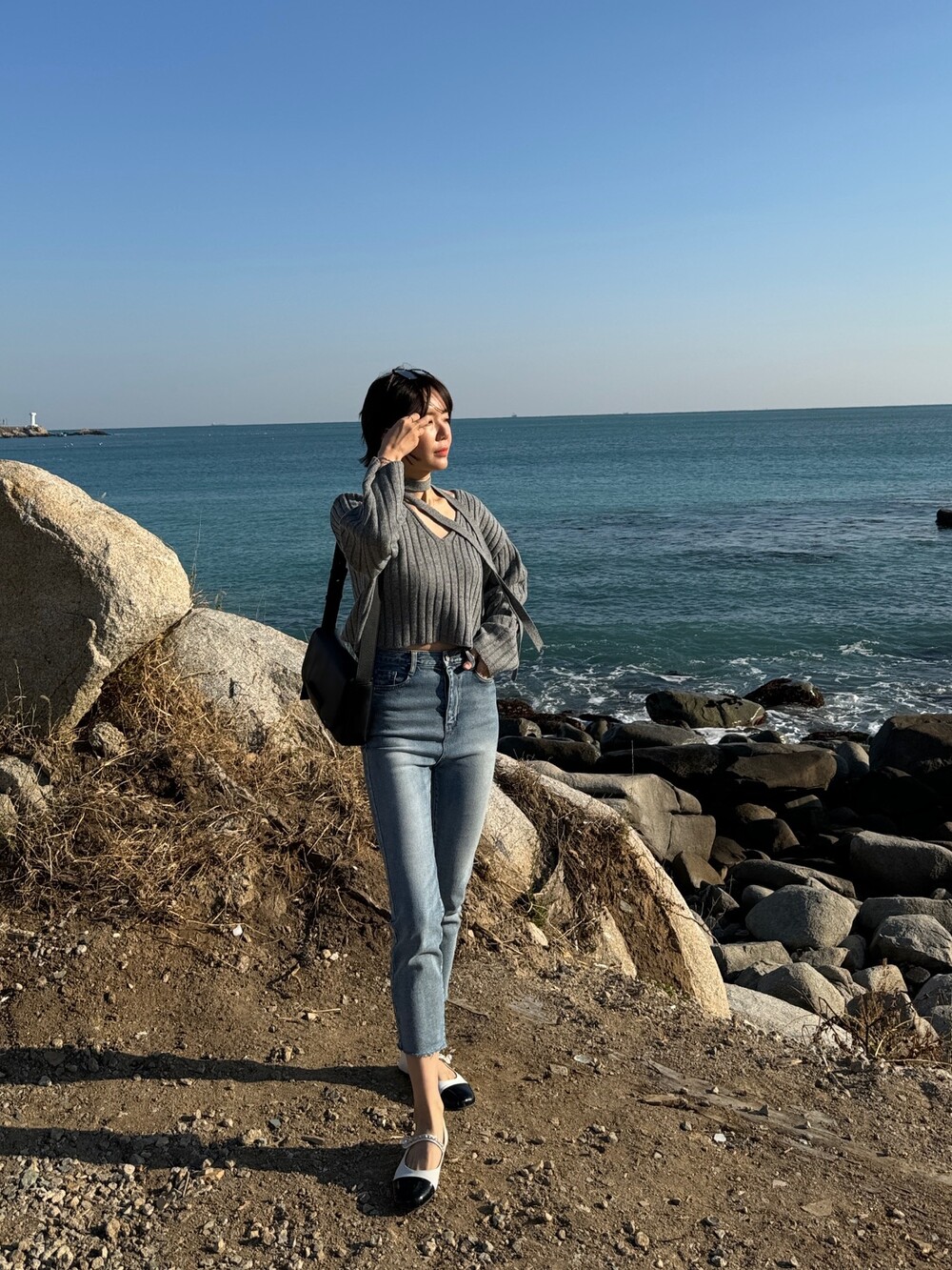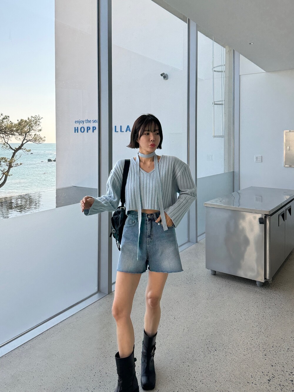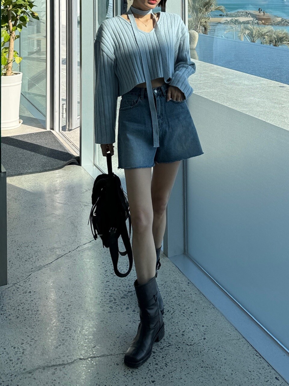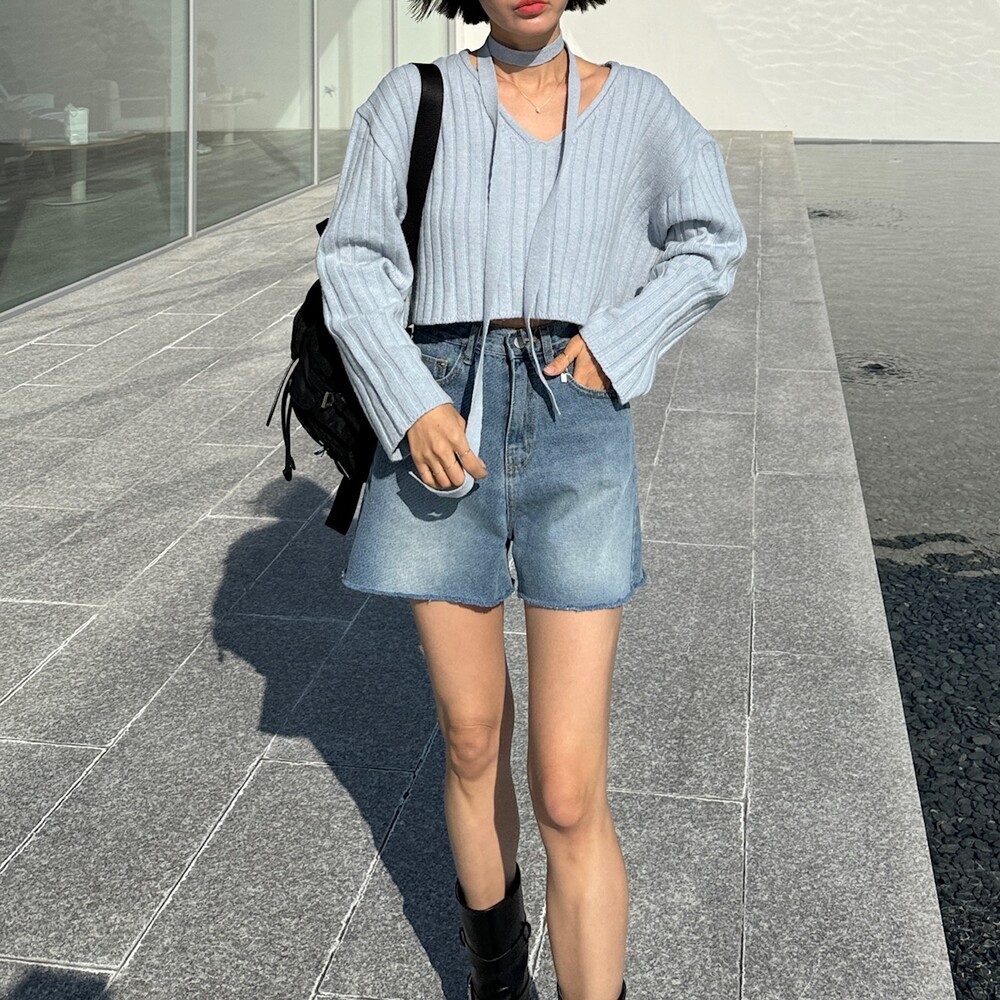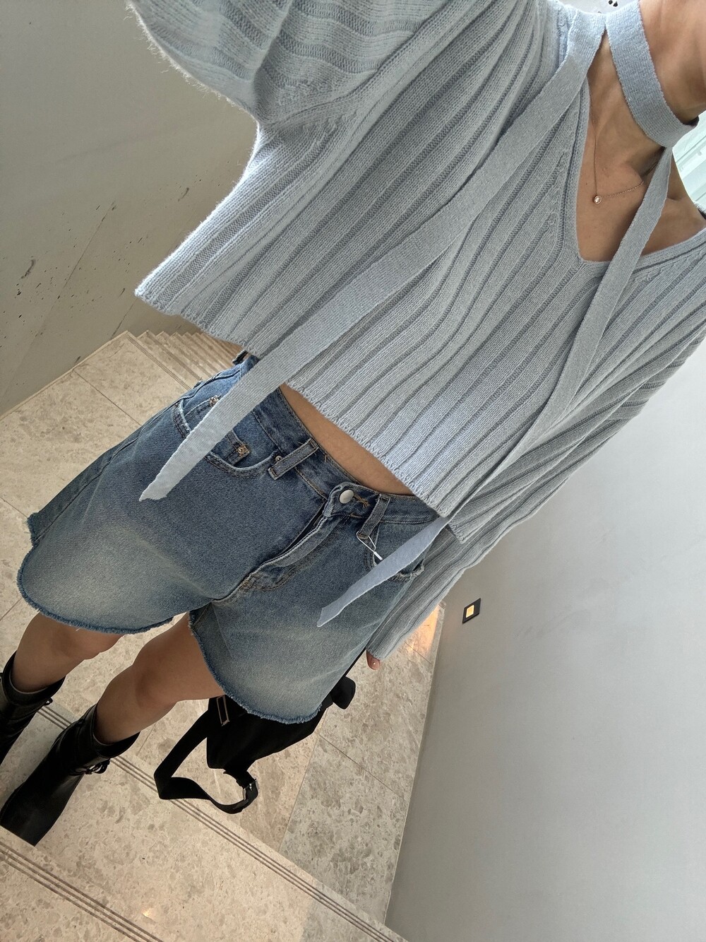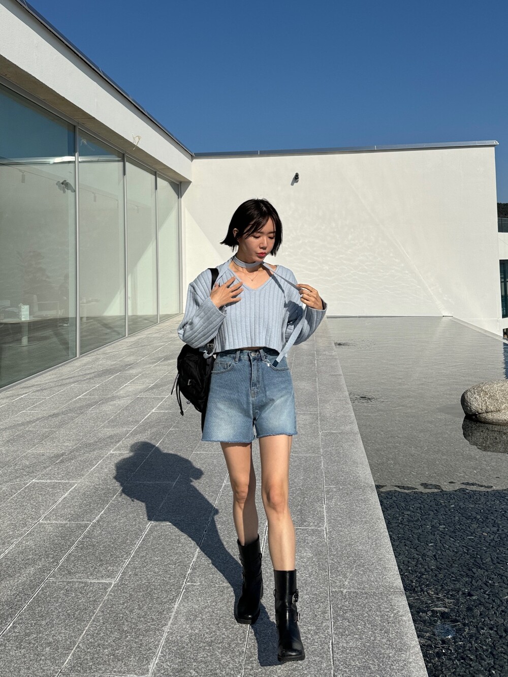 3컬러 나오는 브이넥 크롭 머플러 니트