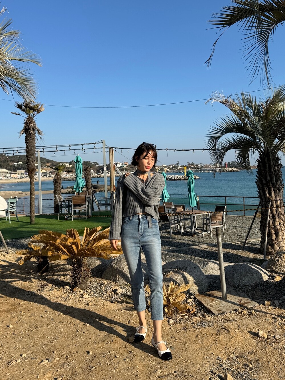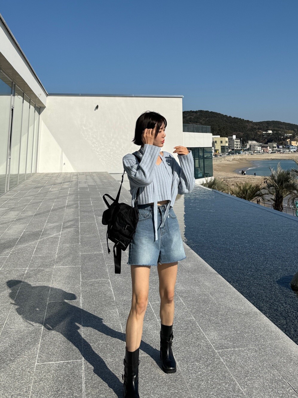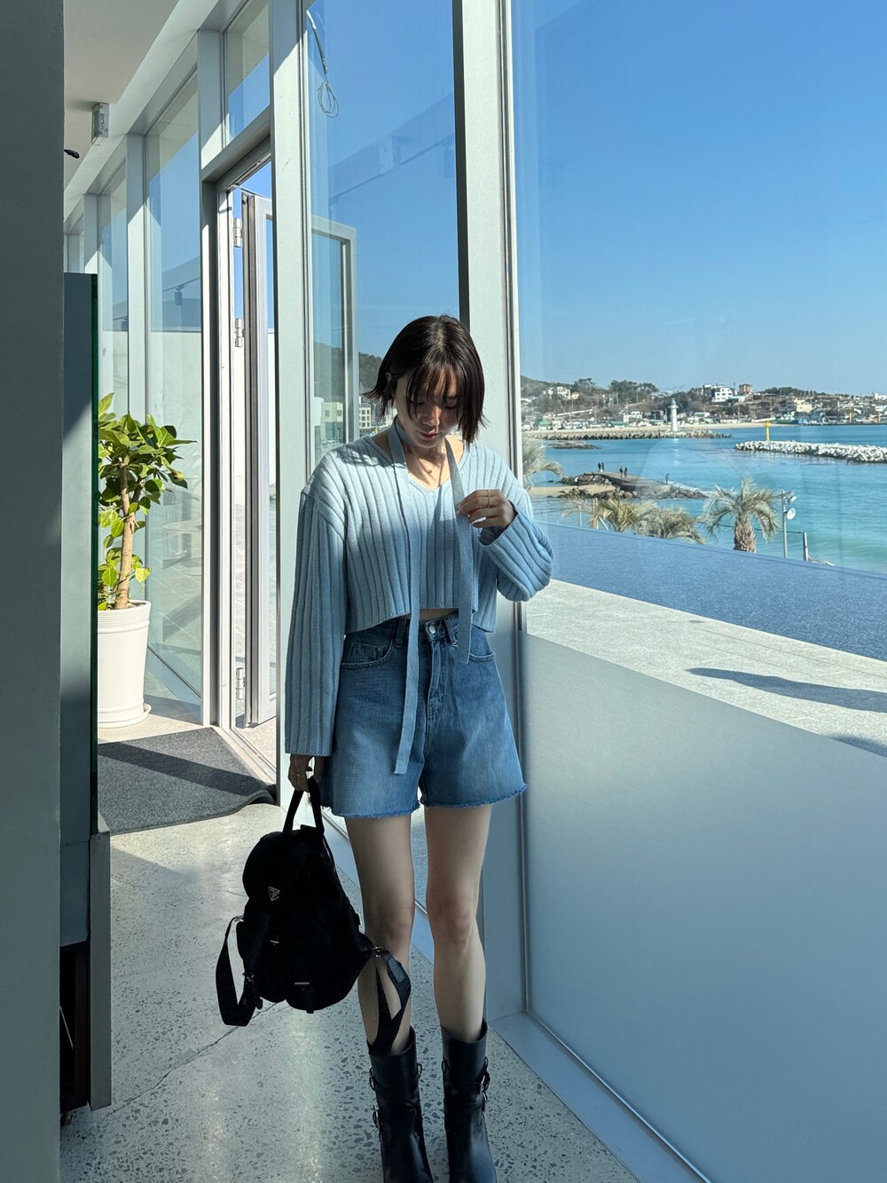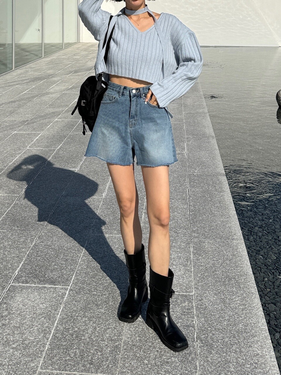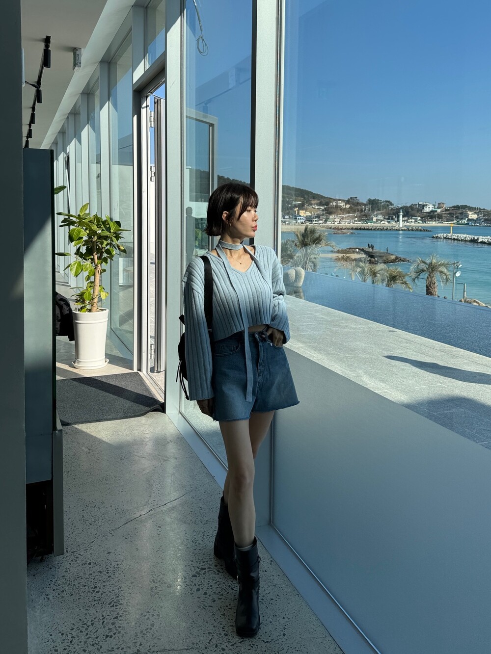 3컬러 나오는 브이넥 크롭 머플러 니트