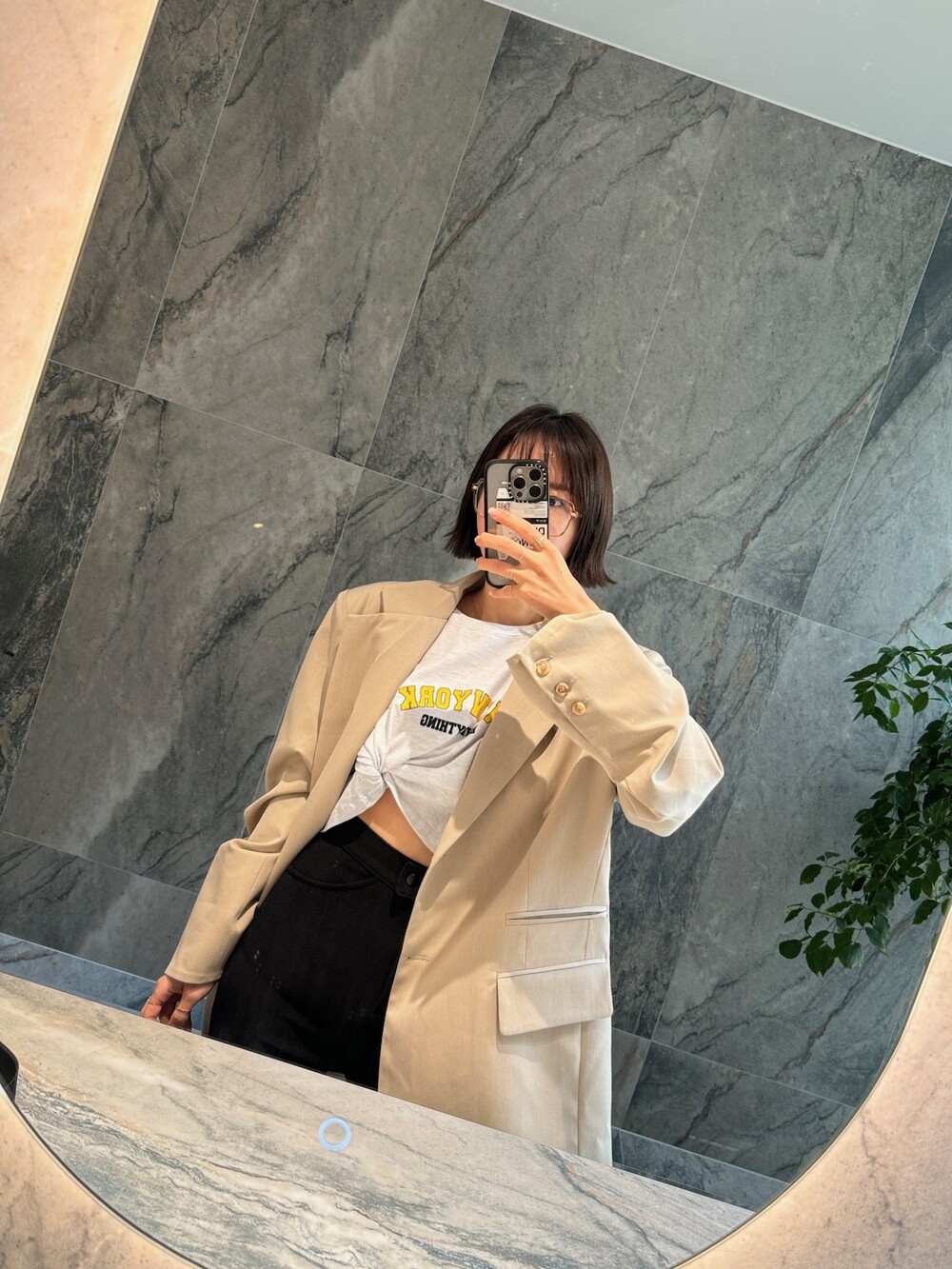 특징: 신축성 X, 비침 X, 안감 O , 두께감 보통, 무게감 보통