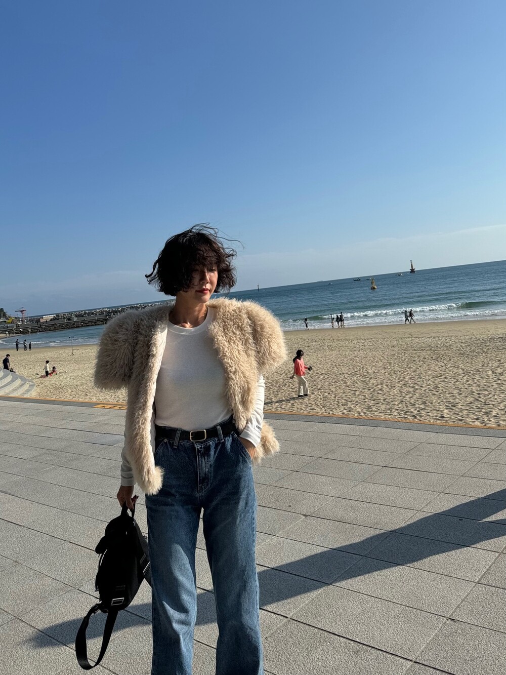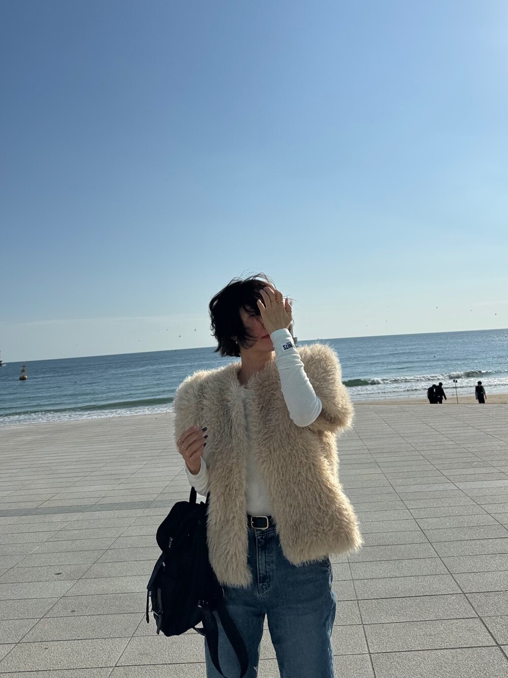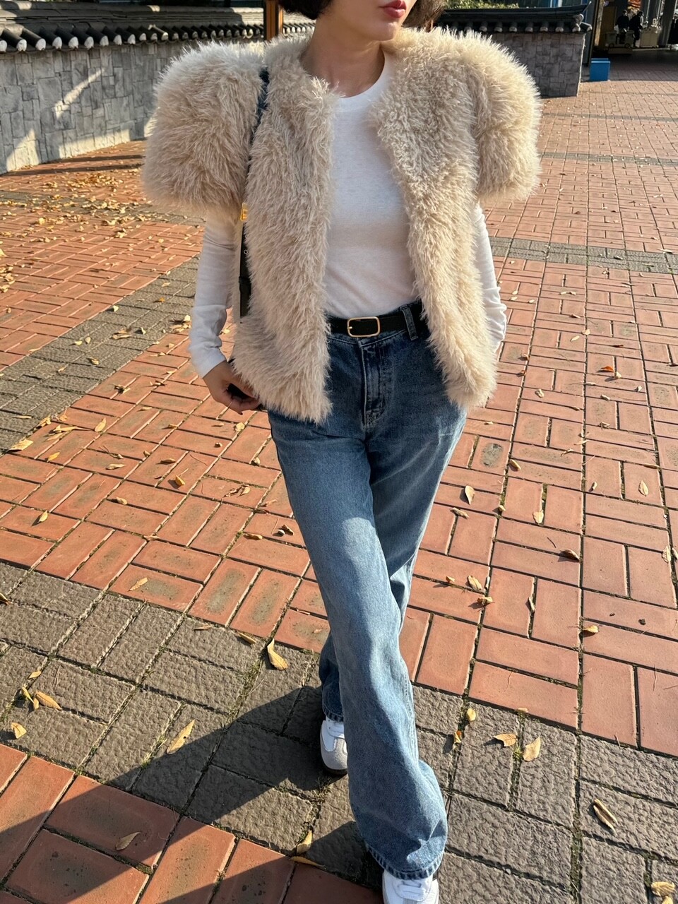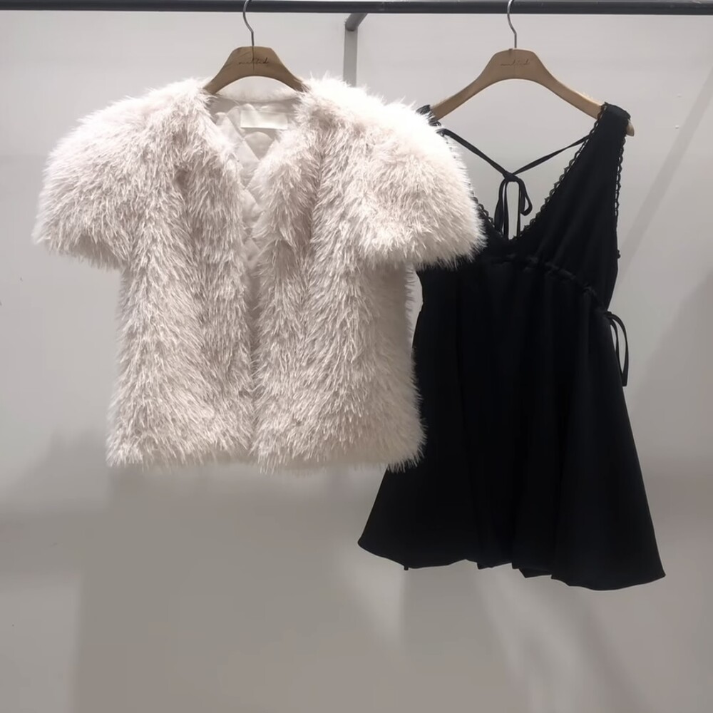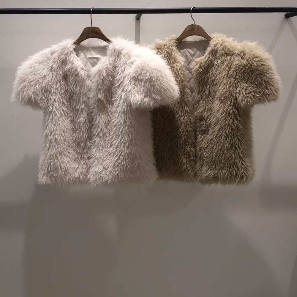 누빔 뽀글이 페이크 퍼 반팔 자켓 2col