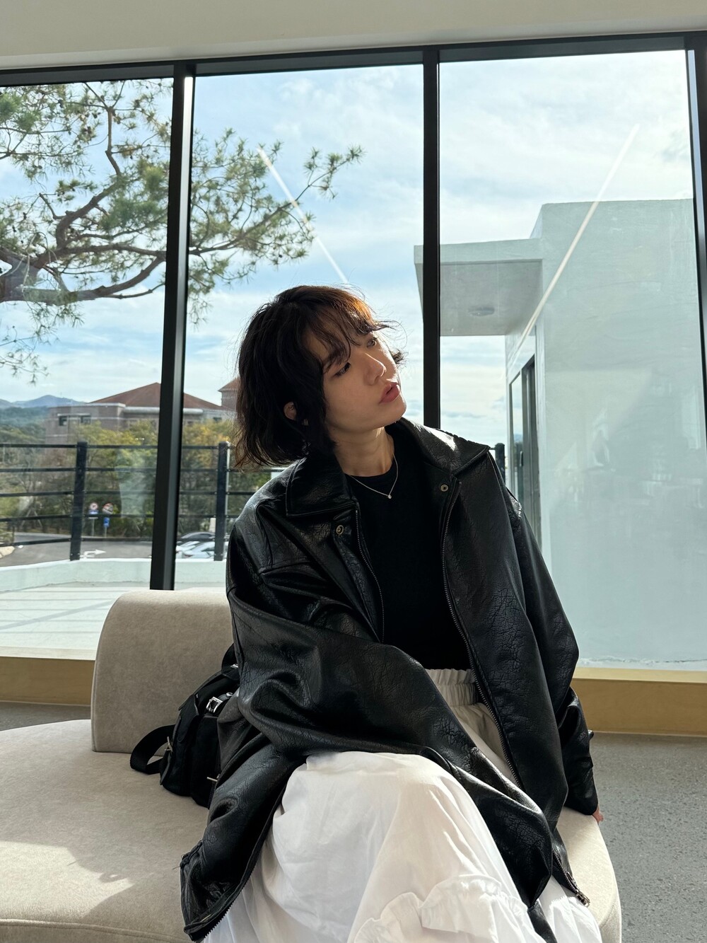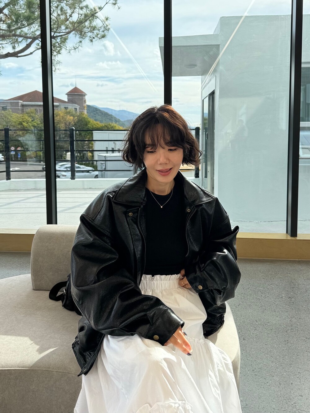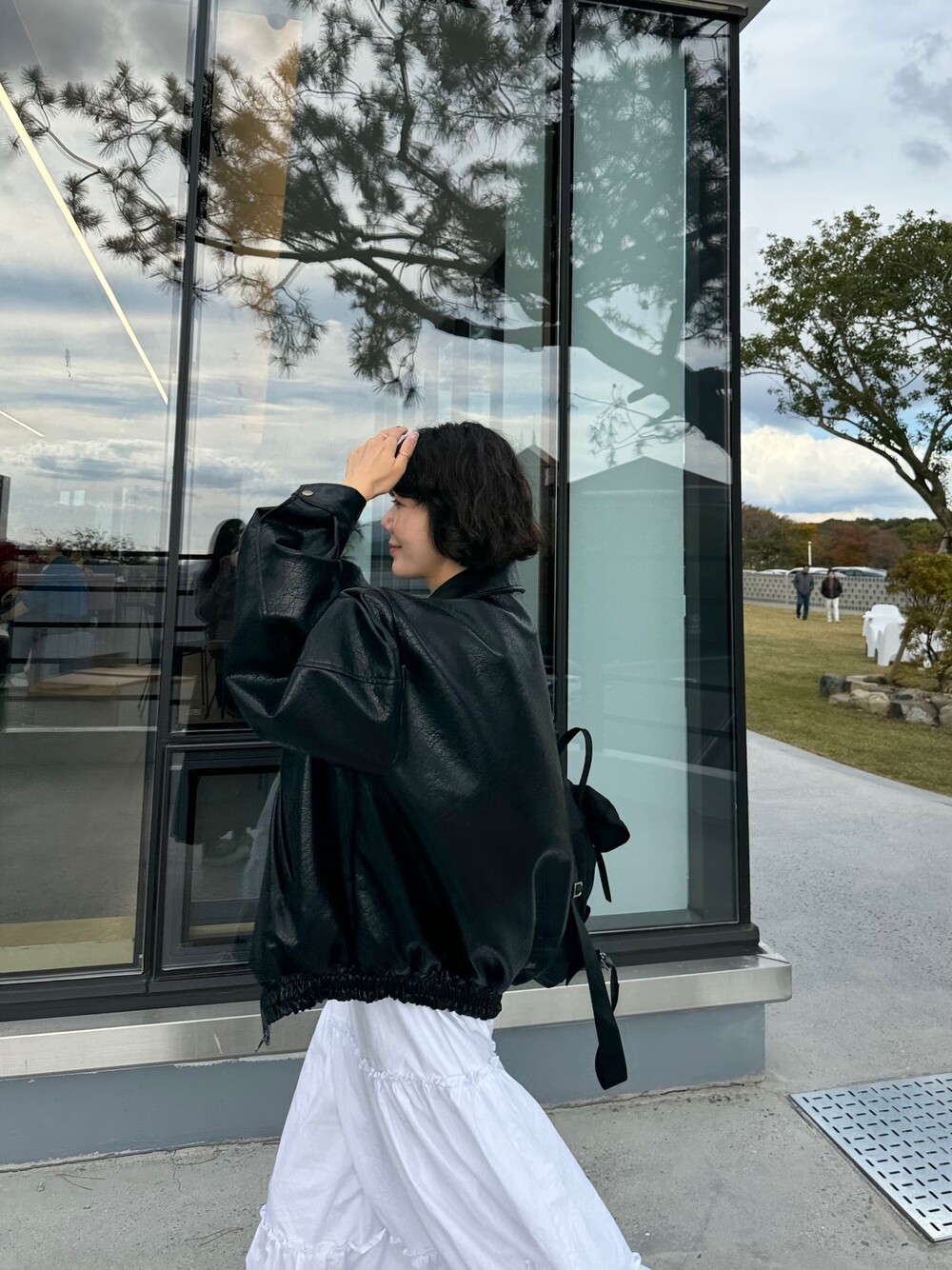남녀 공용 입으실 수 있는 카우 블루종 레더 점퍼
